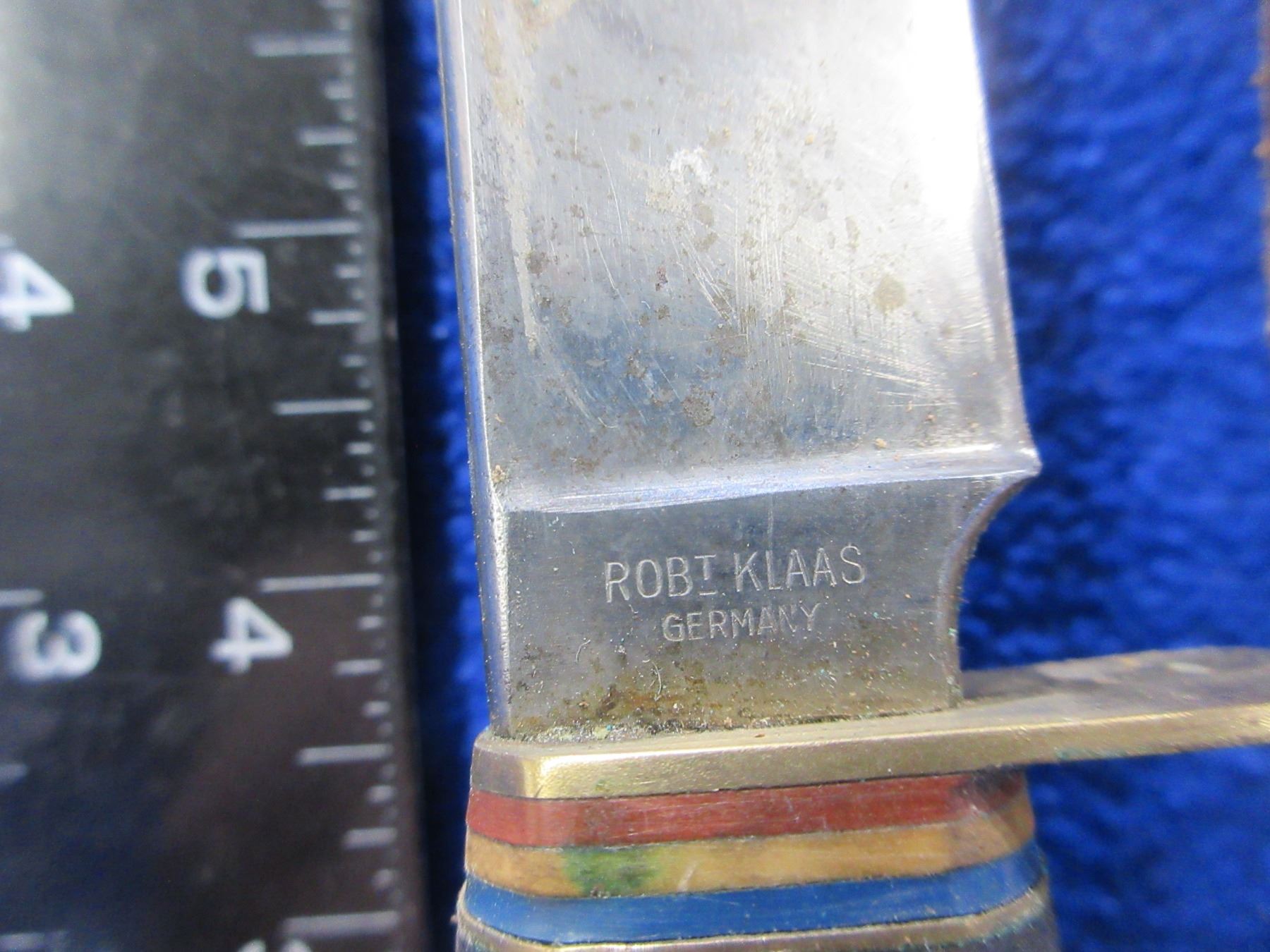 Fixed Blade Knife with Leather Sheath - 5" Blade, 9" Total Length - Robi Klaas, Solingen Germany