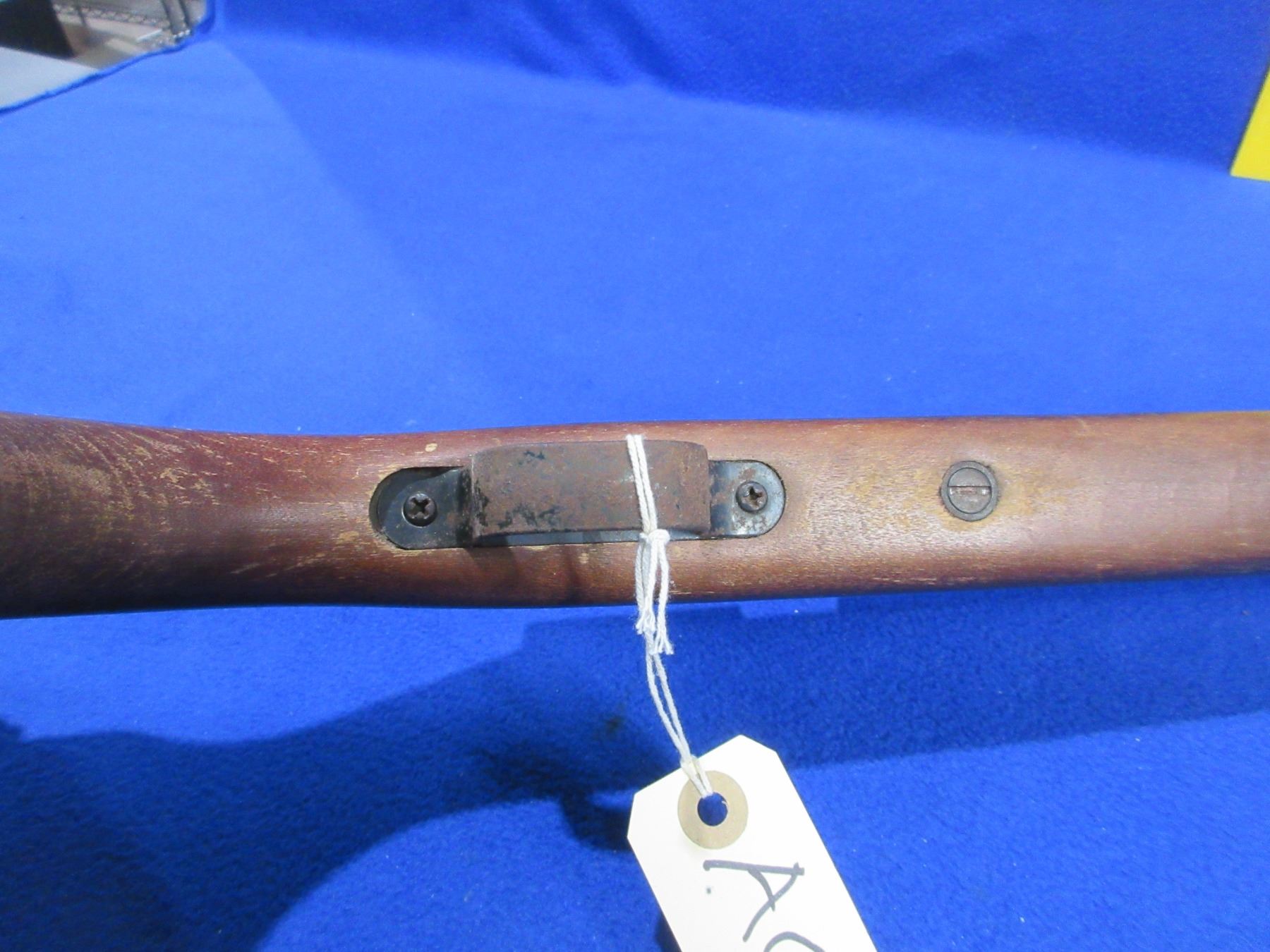 Non-Restricted - Cooey Model 39 in 22 LR - This is a single shot bolt action rifle, action appears to be in working order but bolt is missing. Barrel is 22", rifling is fair as barrel is ringed, bluing is gone, has both sights, stock is good to very good with finish flaking, length of pull is 12 1/2", butt plate good. Ser # None
