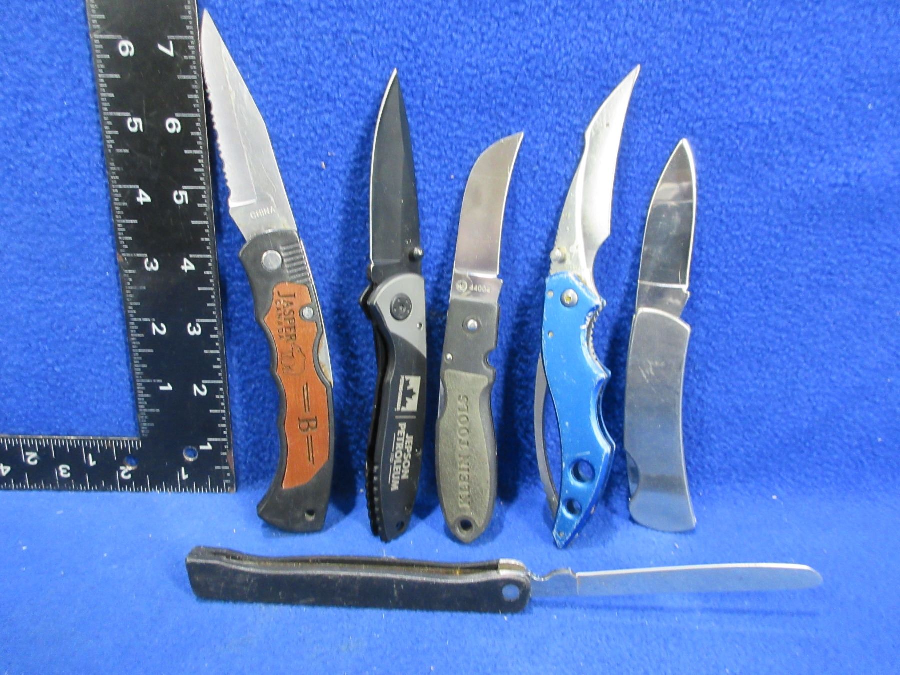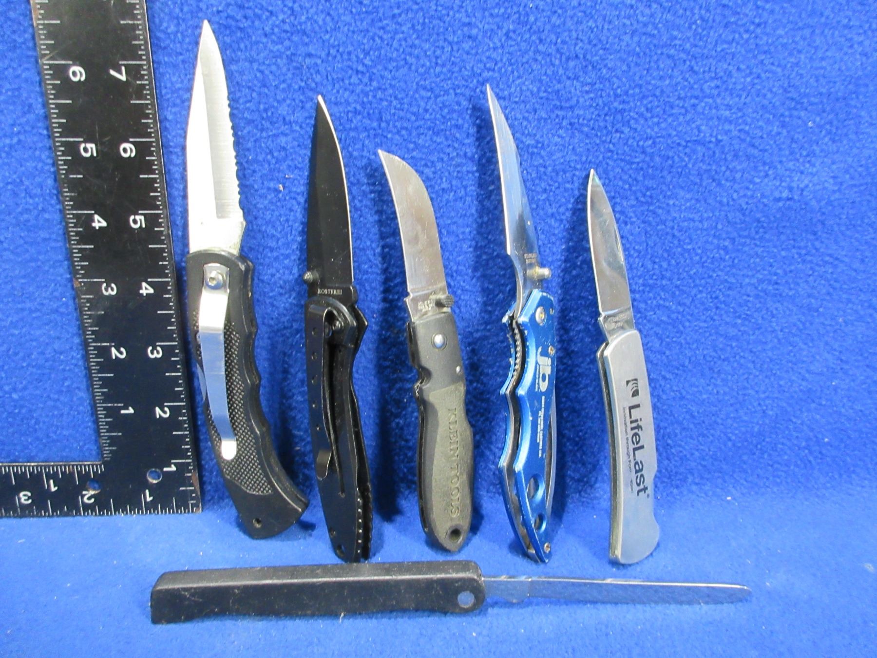 5 Assorted Folding Lock Blade Knives and 1 Folding Knife