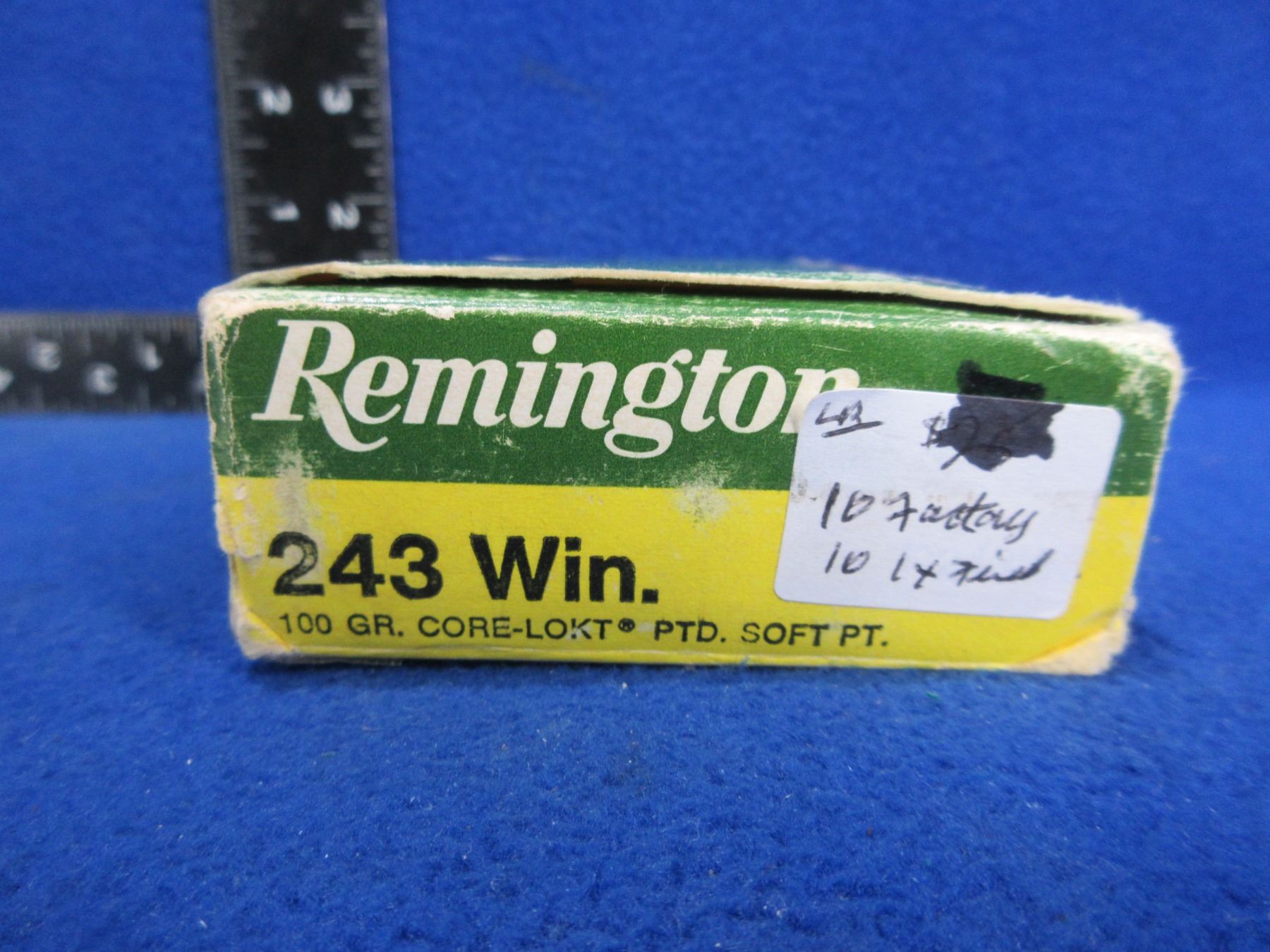 243 Win. 100gr Core-Lokt PSP Remington (Pick Up or Ship by UPS Only) Cartridges - Box of 10 + 10 Brass