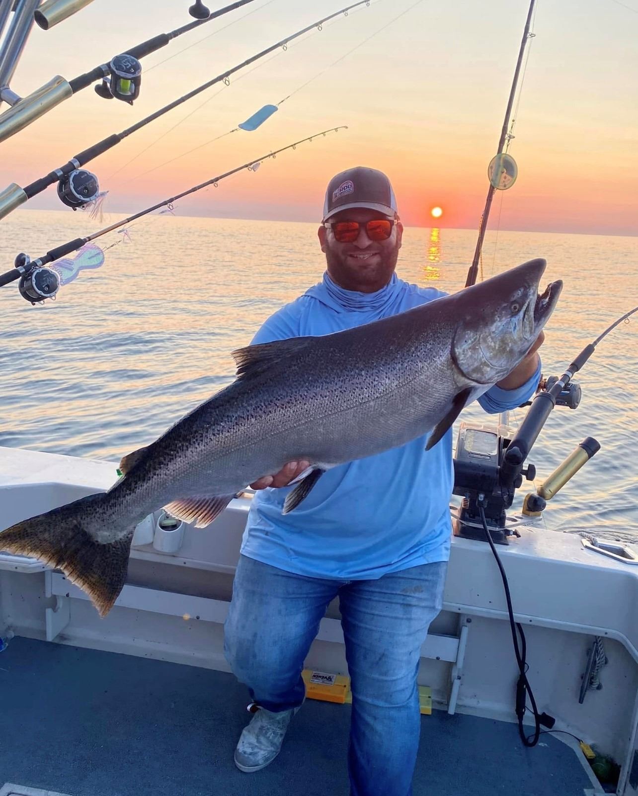 Enjoy a 5-hour Lake Michigan charter fishing trip for 4 people, fishing for Salmon, Steelhead, and Lake Trout! You will be fishing on board The Reel Ginger. This 30-foot power boat is equipped with the most up-to-date electronics and fishing equipment. Your day starts at dawn, and you will fish until early afternoon. All rods, reels, and tackle are provided. A Michigan fishing license which can be purchased online or at a local fishing and sporting goods store is required before you take the charter. Make sure to bring a cooler with your favorite drinks and shacks to keep you nourished while you reel in your fish! You can then use the cooler to bring home your catch too. The fish will be cleaned for you at the dock. Your trip is to be scheduled on open dates April through August of 2026 on a date which you can coordinate with Powderhorn Sportfishing. Captain Tim Becker has over 25 years of fishing experience on Lake Michigan, and he works hard for your fishing success. This is a great day of fishing. Just ask one of the dozens of our Chapter members who have fished with Captain Tim! For more information about this charter please contact Tim at 616-836-4316 or visit his website.