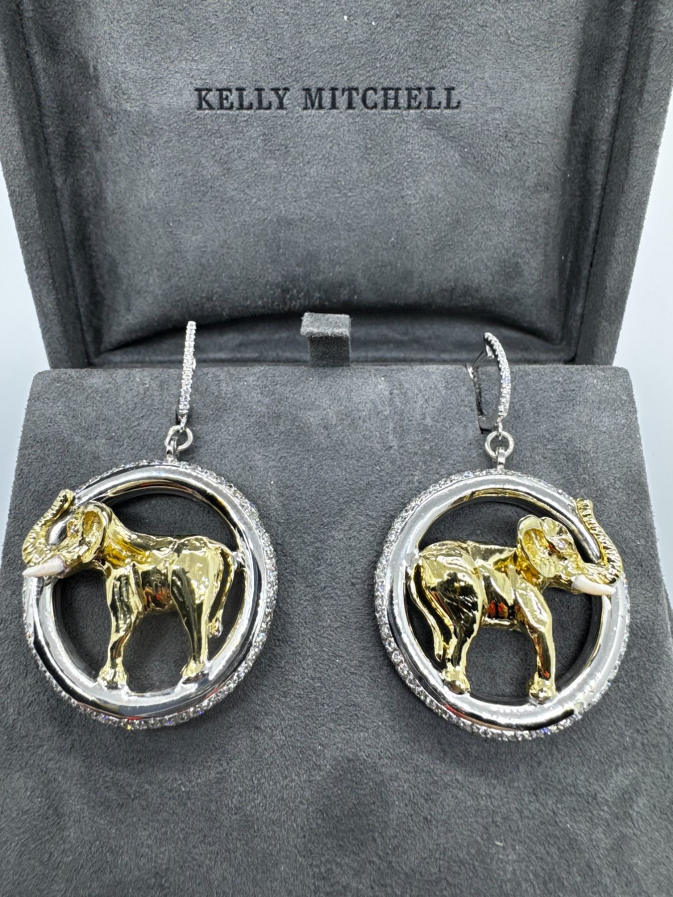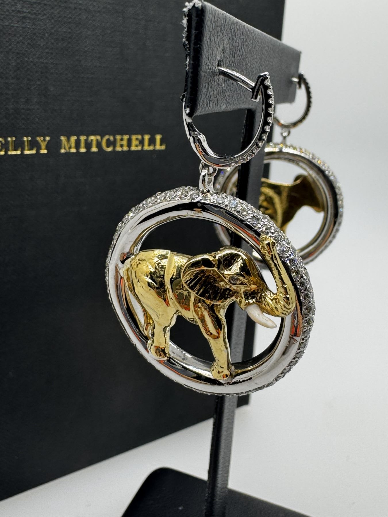 Kelly Mitchell’s jewelry donations have been an auction highlight for several years. A quick look around the room, and you will see many of our West Texas women wearing Kelly Mitchell pieces tonight. This year’s donation is a custom piece that appeals to the Safari hunter in all of us. These gold earrings feature two hand-carved Bull Elephants cast in 18K yellow gold with ivory tusks. The elephants are surrounded by 9.00 carats of pave diamonds set in 18K white gold. Kelly and her team have once again outdone themselves, and the West Texas chapter of SCI thanks Kelly Mitchell Fine Jewelry for this 100% donation.