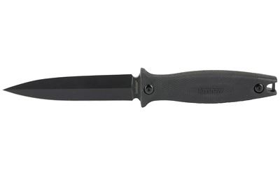 Kershaw, Secret Agent, 4.4" Fixed Blade Knife, Spear Point, Plain Edge, Black-Oxide Finish, Rubberized Co-Molded Handle, Includes Molded Dual-Carry Sheath with Clip
