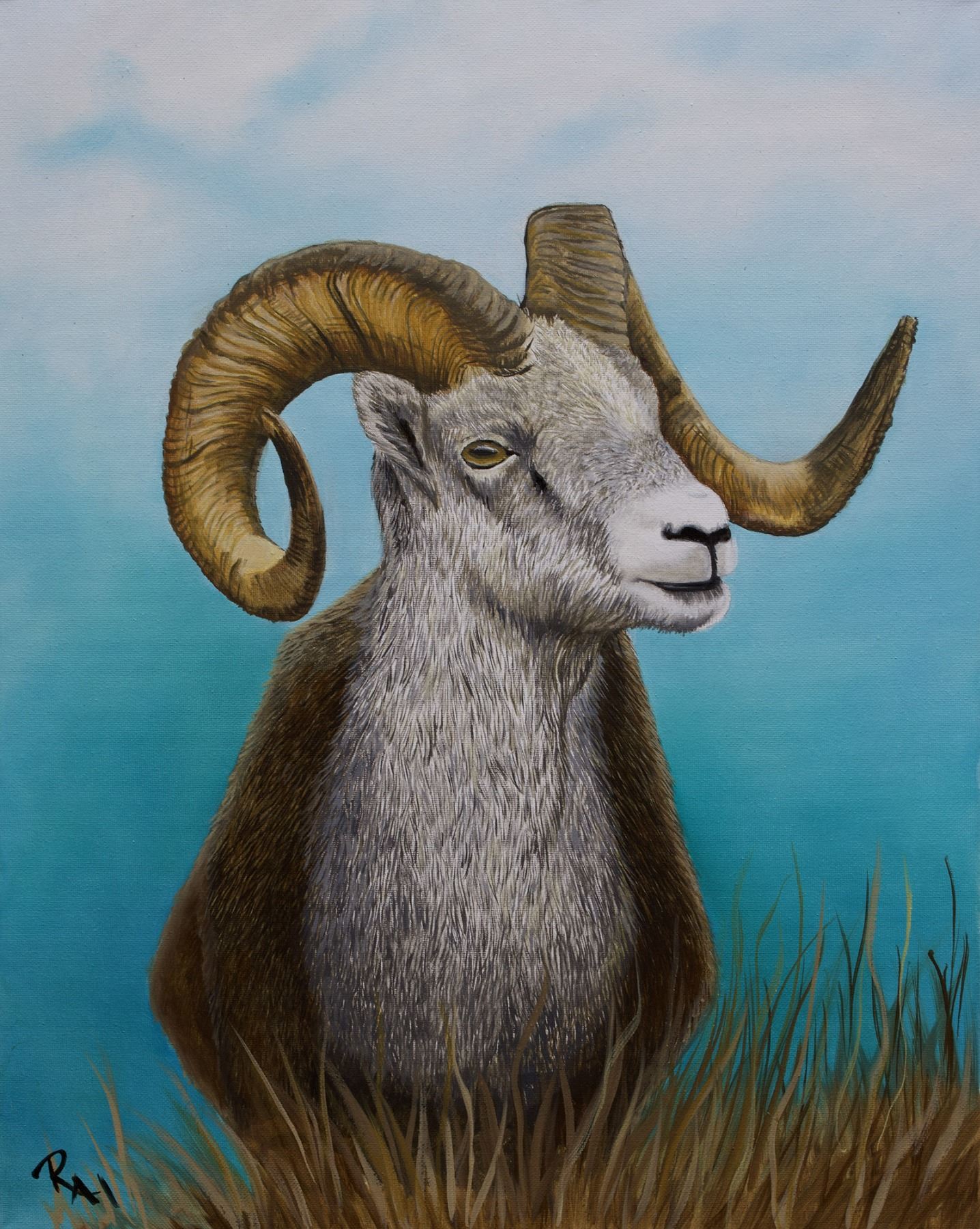 •This auction item is an original oil painting on stretched cotton canvas of a Stone sheep, inspired by an original photo taken by Mitch McPherson.