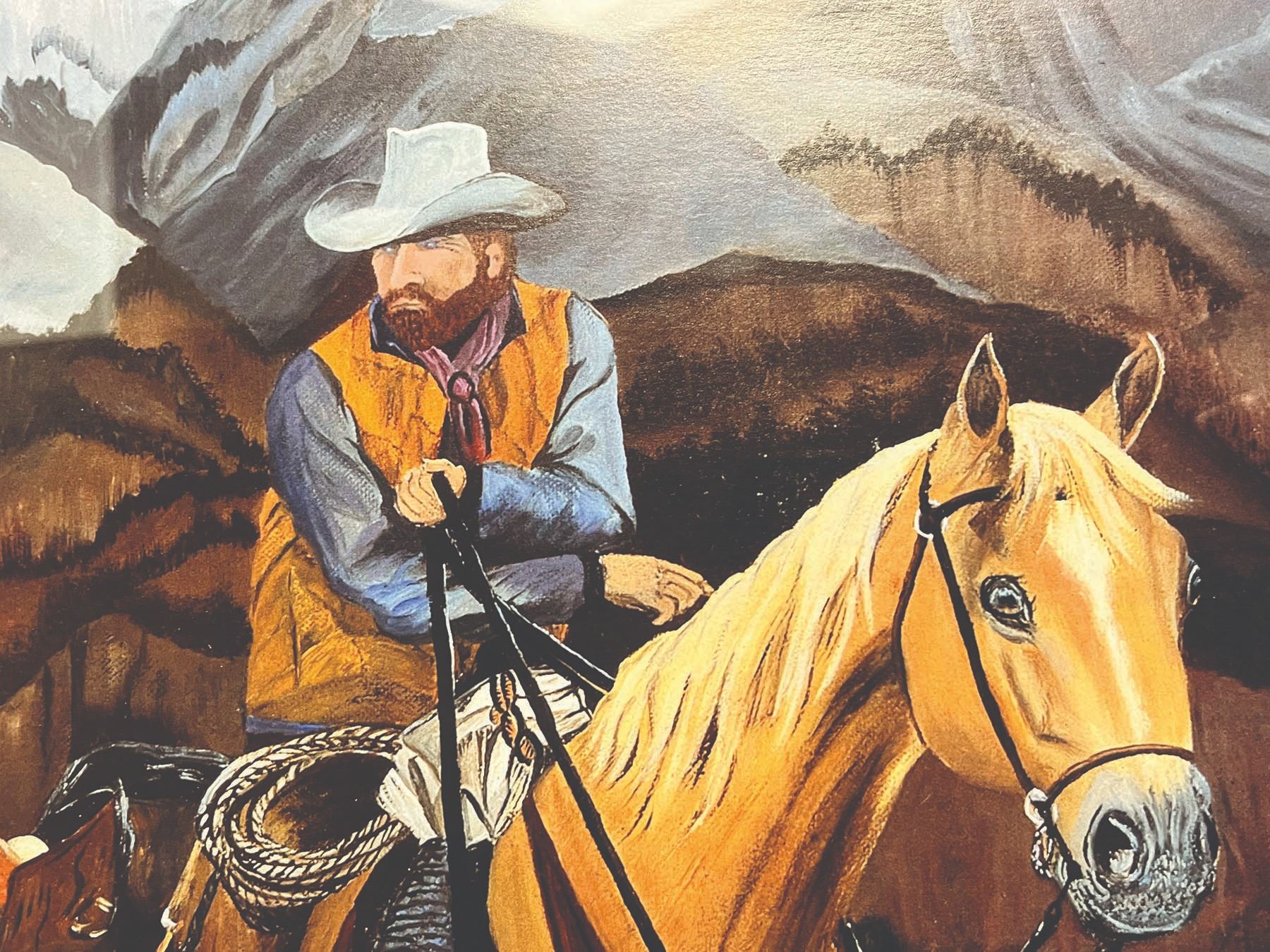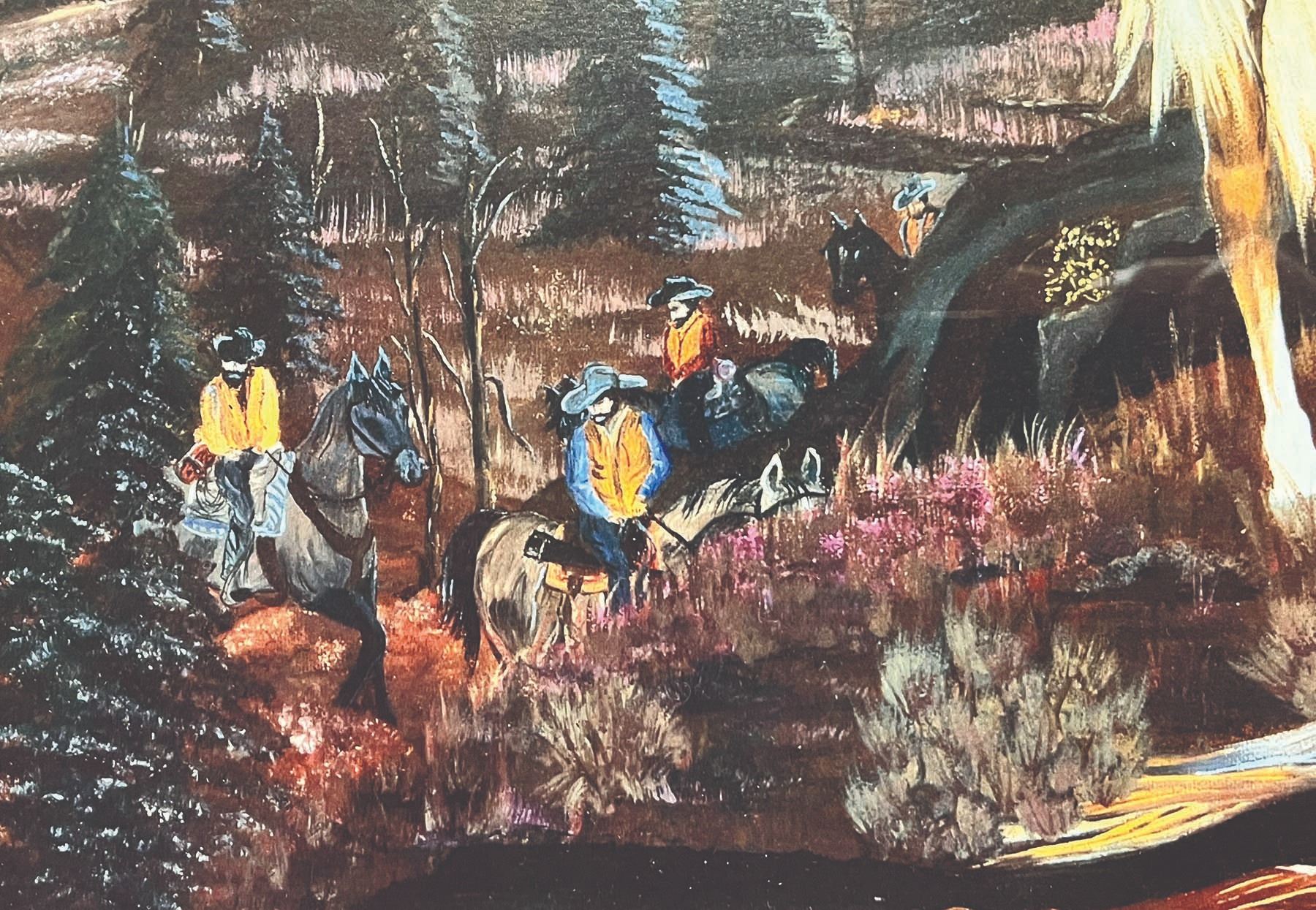 •The work features a group of hunters embarking on horseback into the remote wilderness.