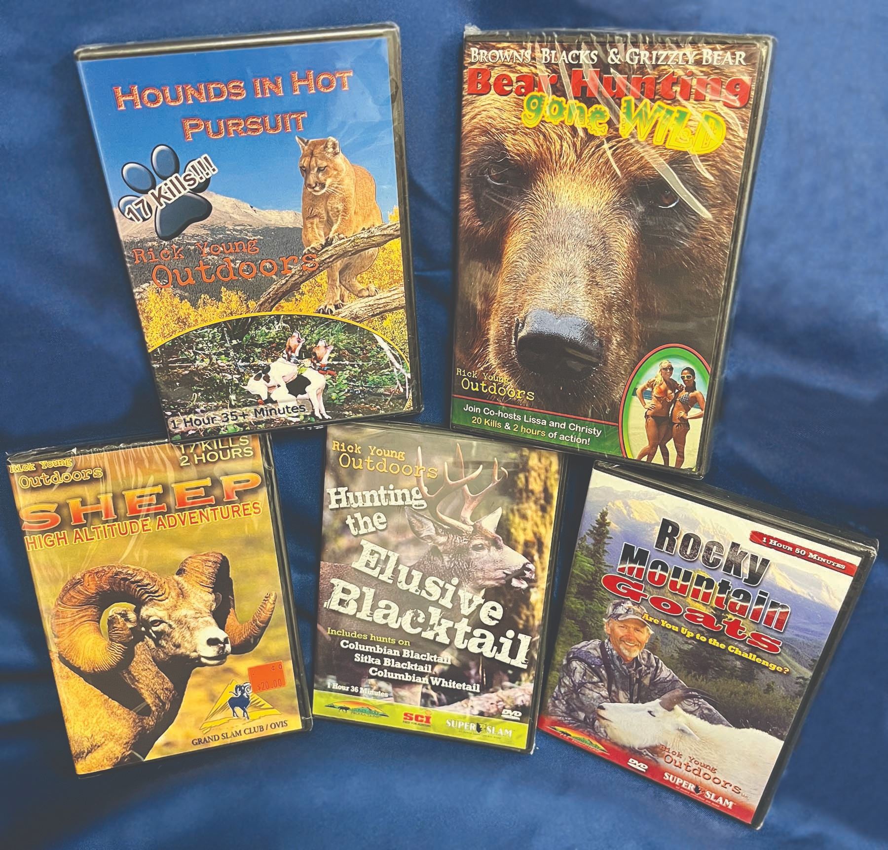 following titles:– Hounds in Hot Pursuit– Bear Hunting Gone Wild– Hunting the Elusive Blacktail– Rocky Mountain Goats– Sheep High Altitude Adventures