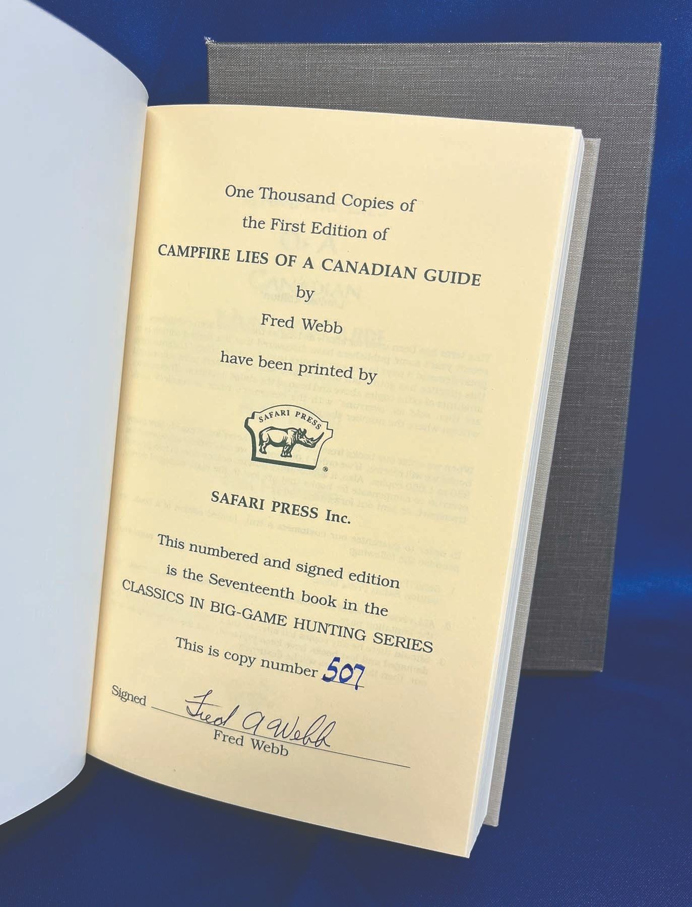 Lies of a Canadian Hunting Guide by Fred Webb (autographed and #507 of