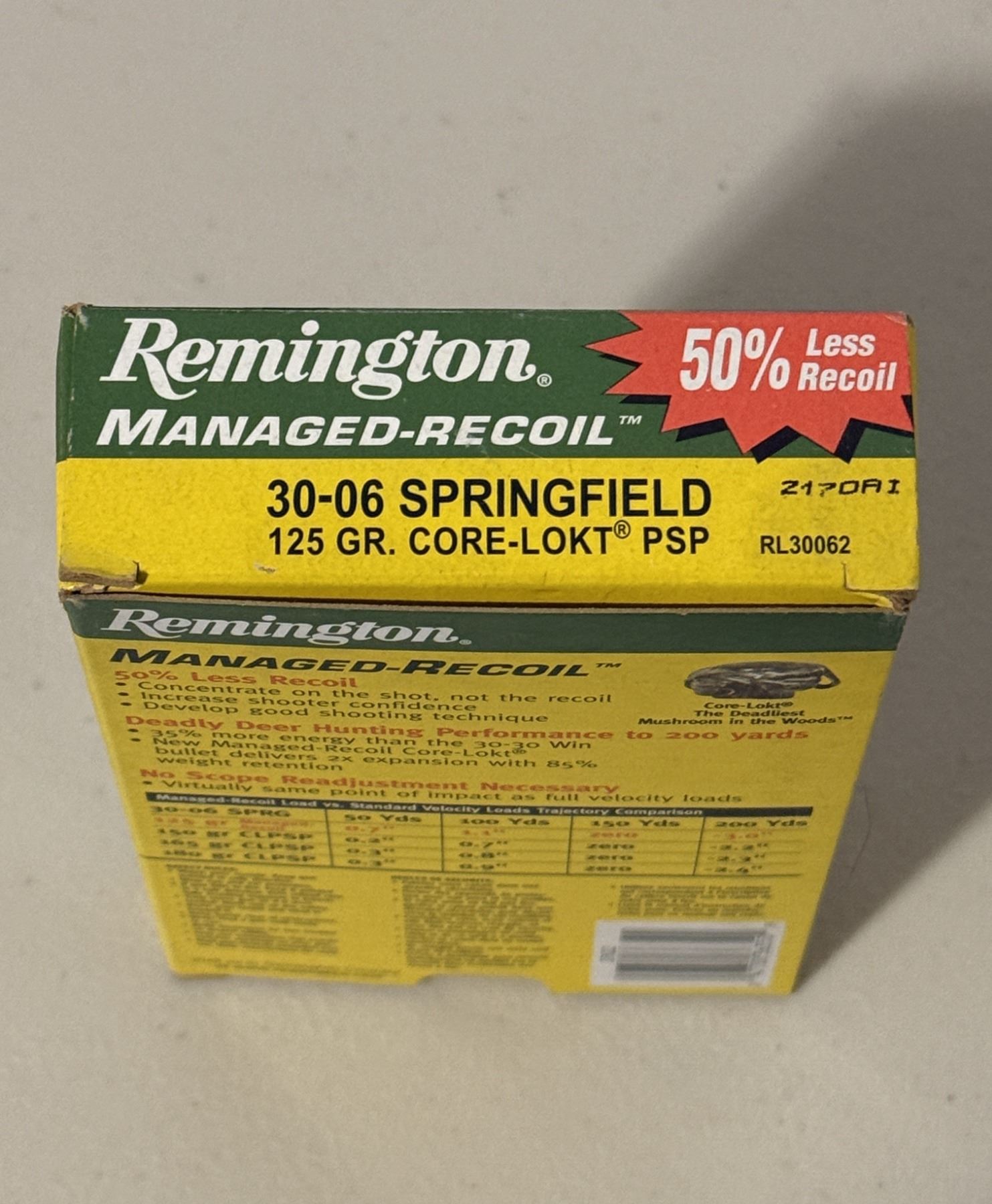 12 rounds in each box. Remington 30-06sprg 125 gr and hornady whitetail 30-03 sprg 150 gr
