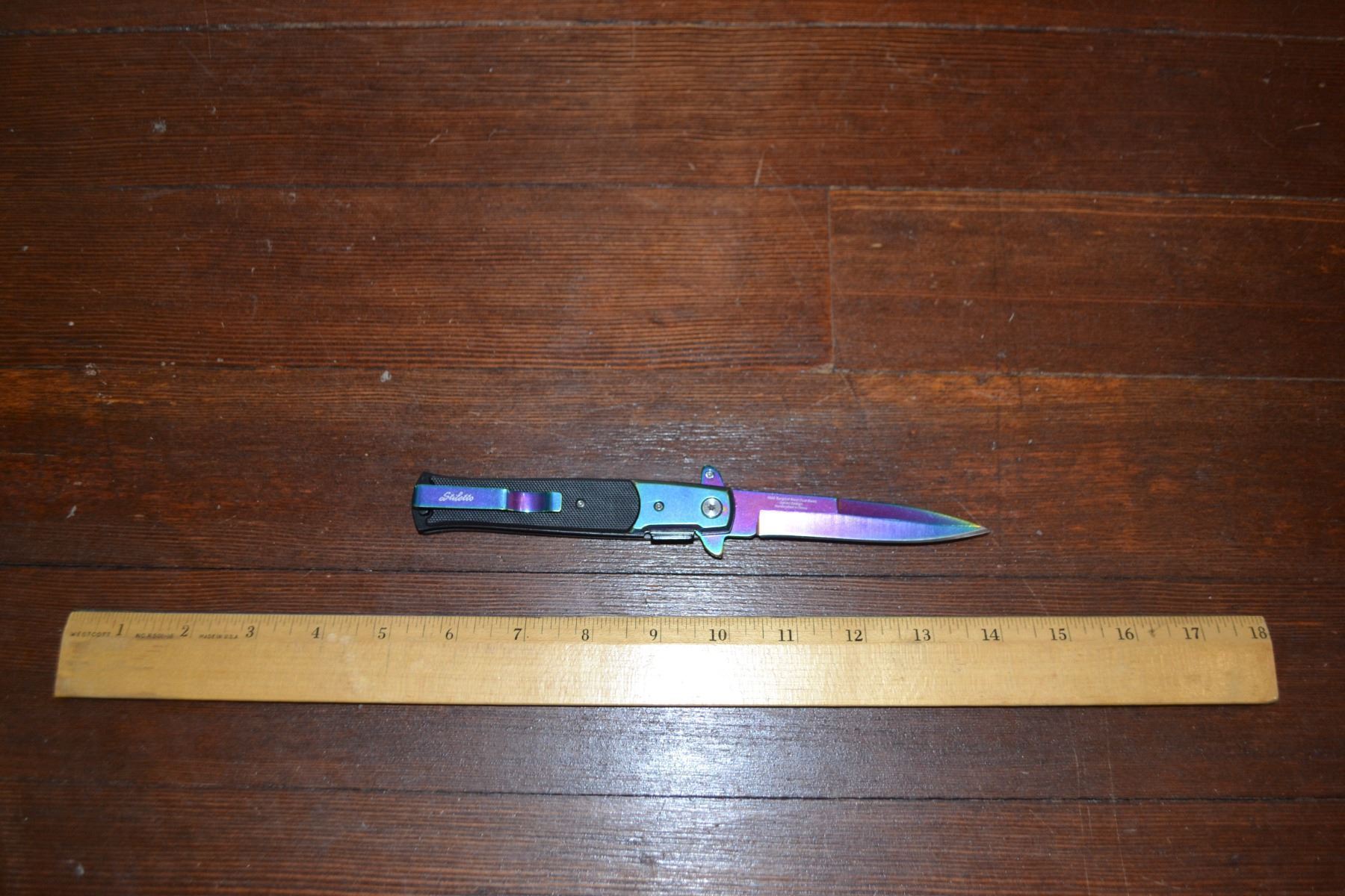 Lot 234 5" RAINBOW STILETTO STYLE LINER LOCK