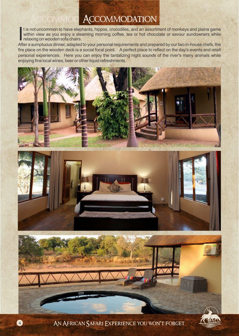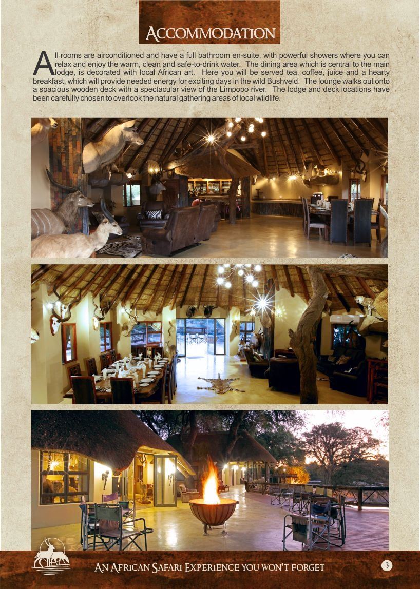 Our area borders the Tuli Block of Botswana with decks built on the banks of the Limpopo River from where you can view various game animals including elephants, hippo and crocodiles.