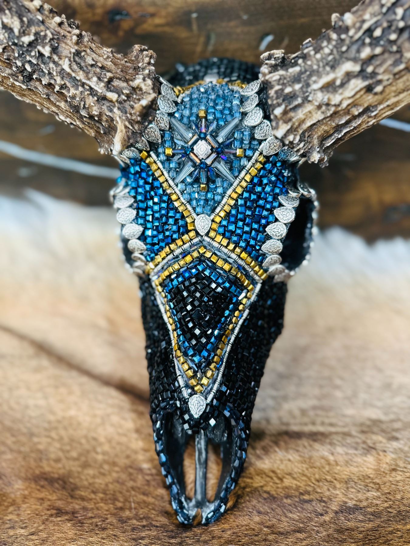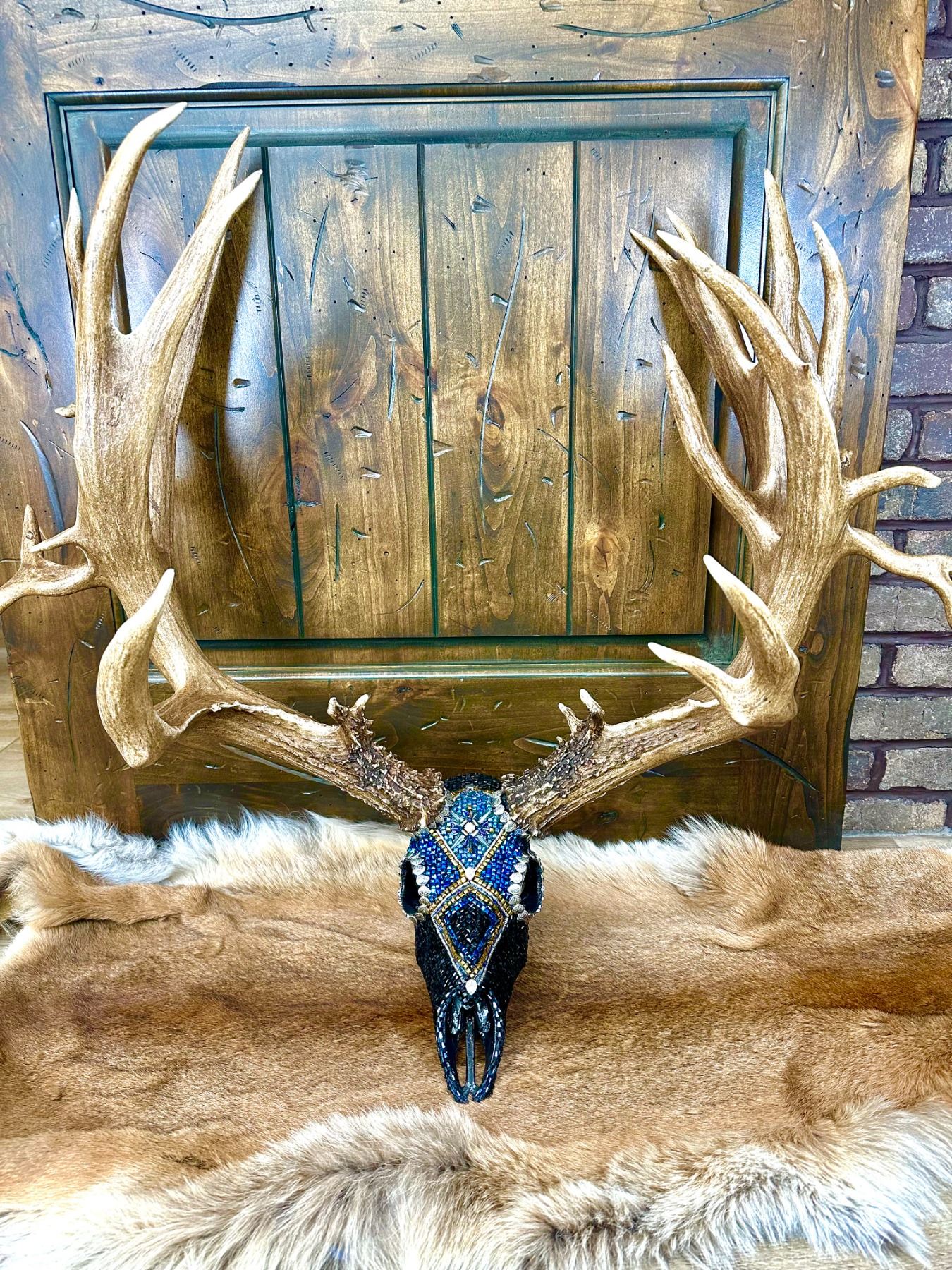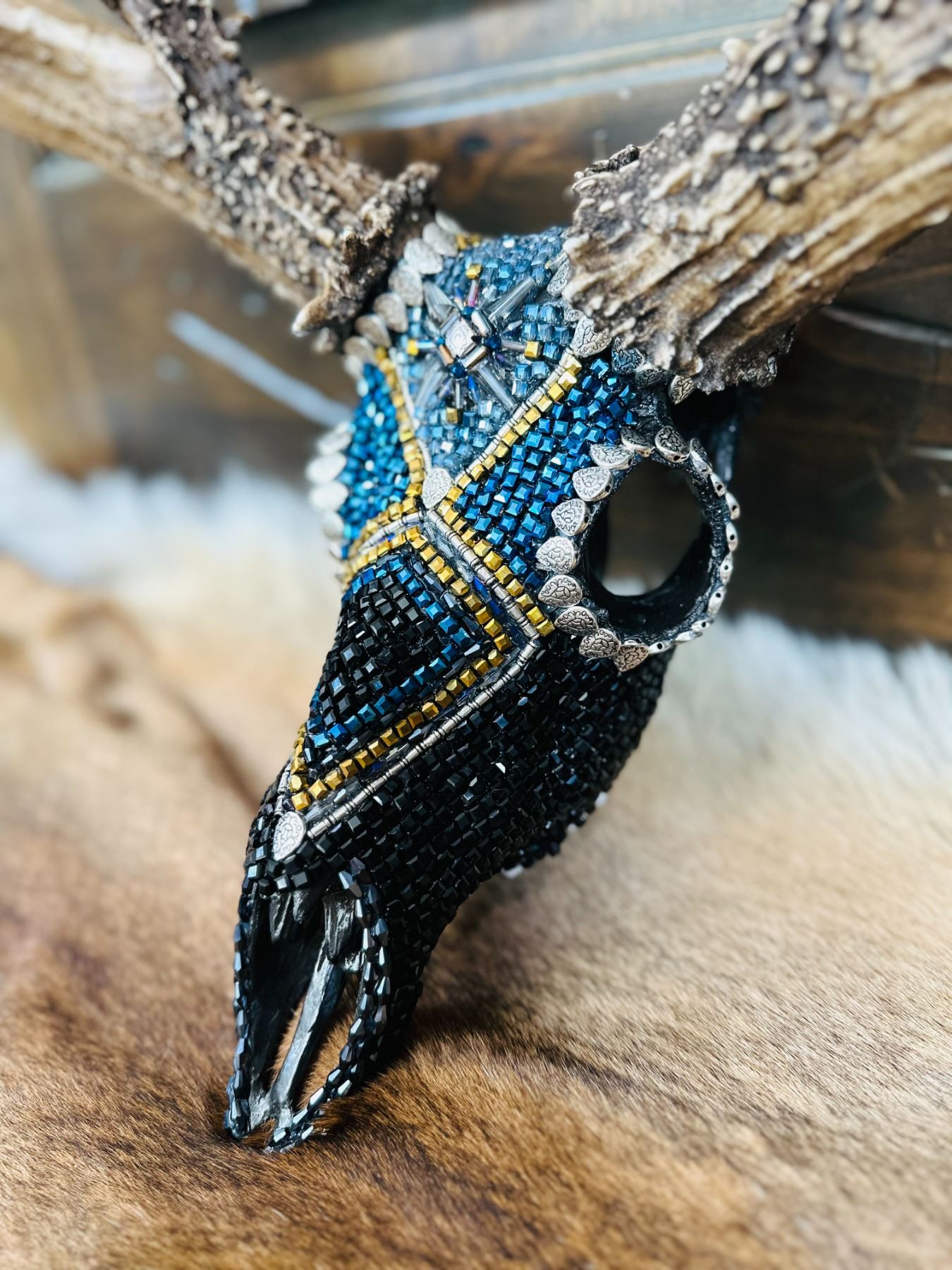 Lot 8 Hand Beaded Mule Deer Skull by Jana Waller Bair