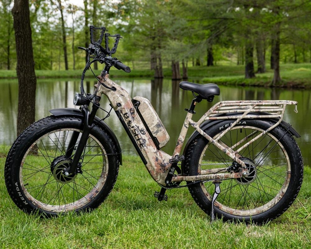 Take your hunting and outdoor adventures to the next level with the rugged and powerful Camo Bush-E Bike Hedge Hog Dual Motor Electric Hunting Bike, designed to conquer tough terrain quietly and efficiently. Built for serious outdoorsmen, this premium e-bike delivers strength, endurance, and reliability where it matters most.