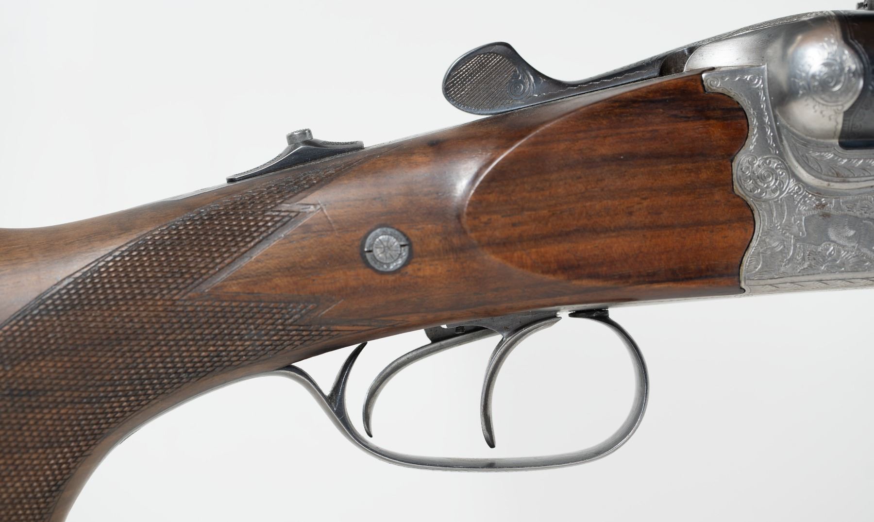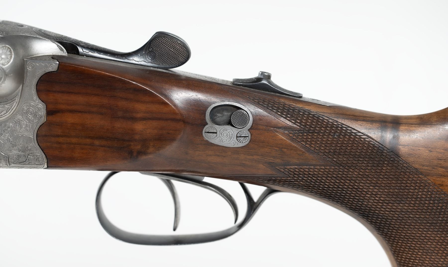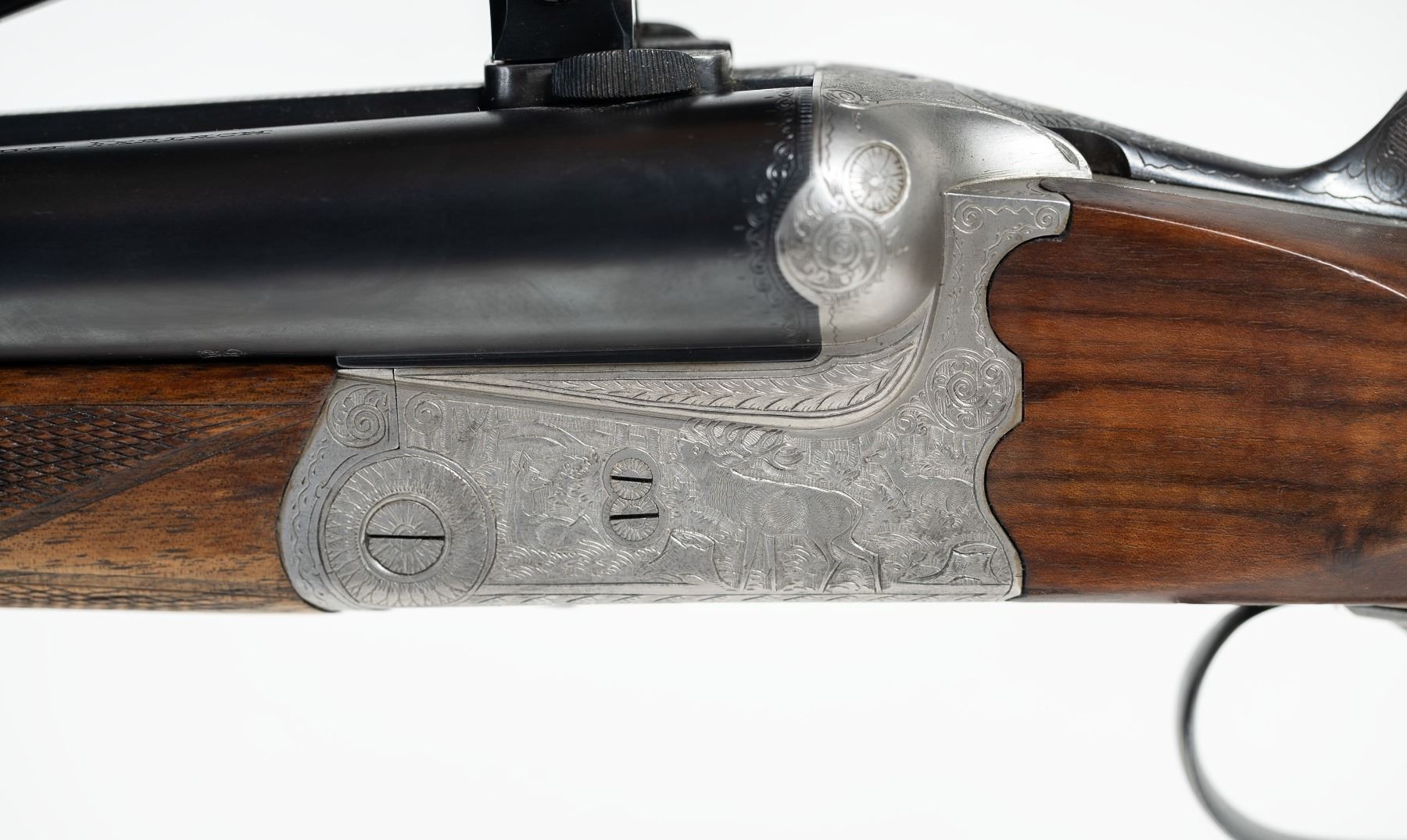 This exceptional example of German gunmaking was manufactured in 1959 by Franz Sodia and represents the pinnacle of traditional European craftsmanship. This classic drilling configuration offers the full functionality of a double-barrel shotgun combined with the power and versatility of a rifle barrel, allowing the shooter to transition seamlessly from upland birds to big game.