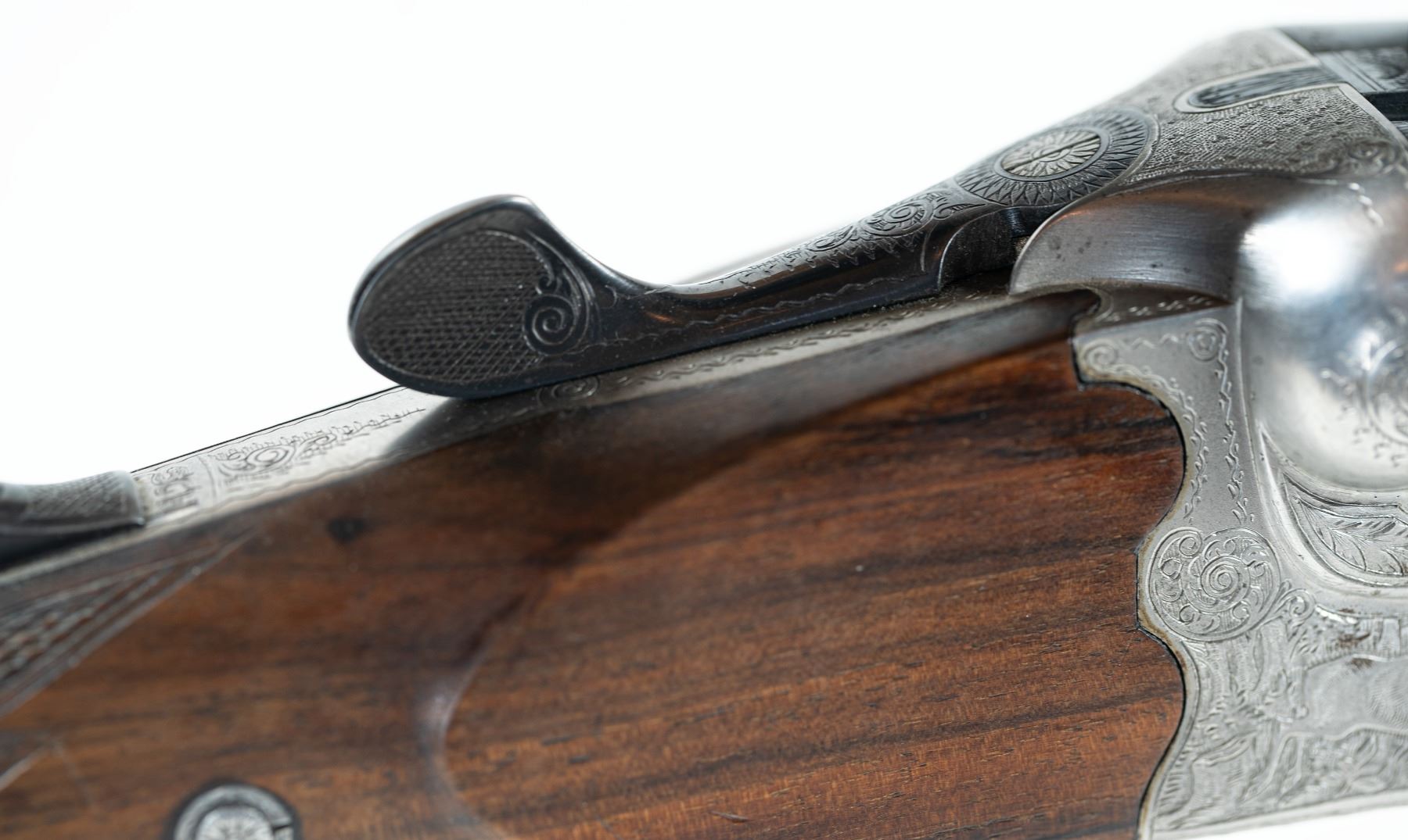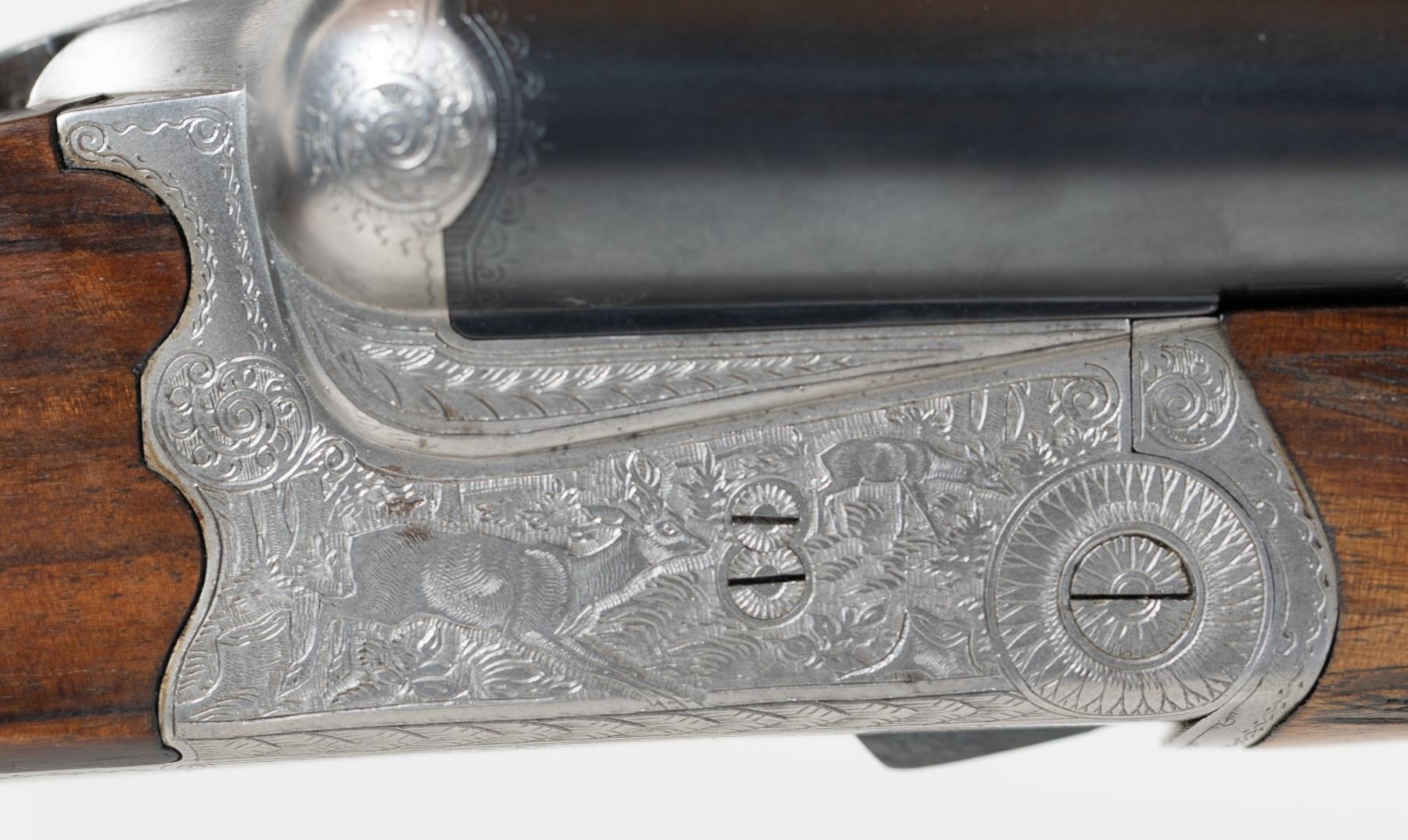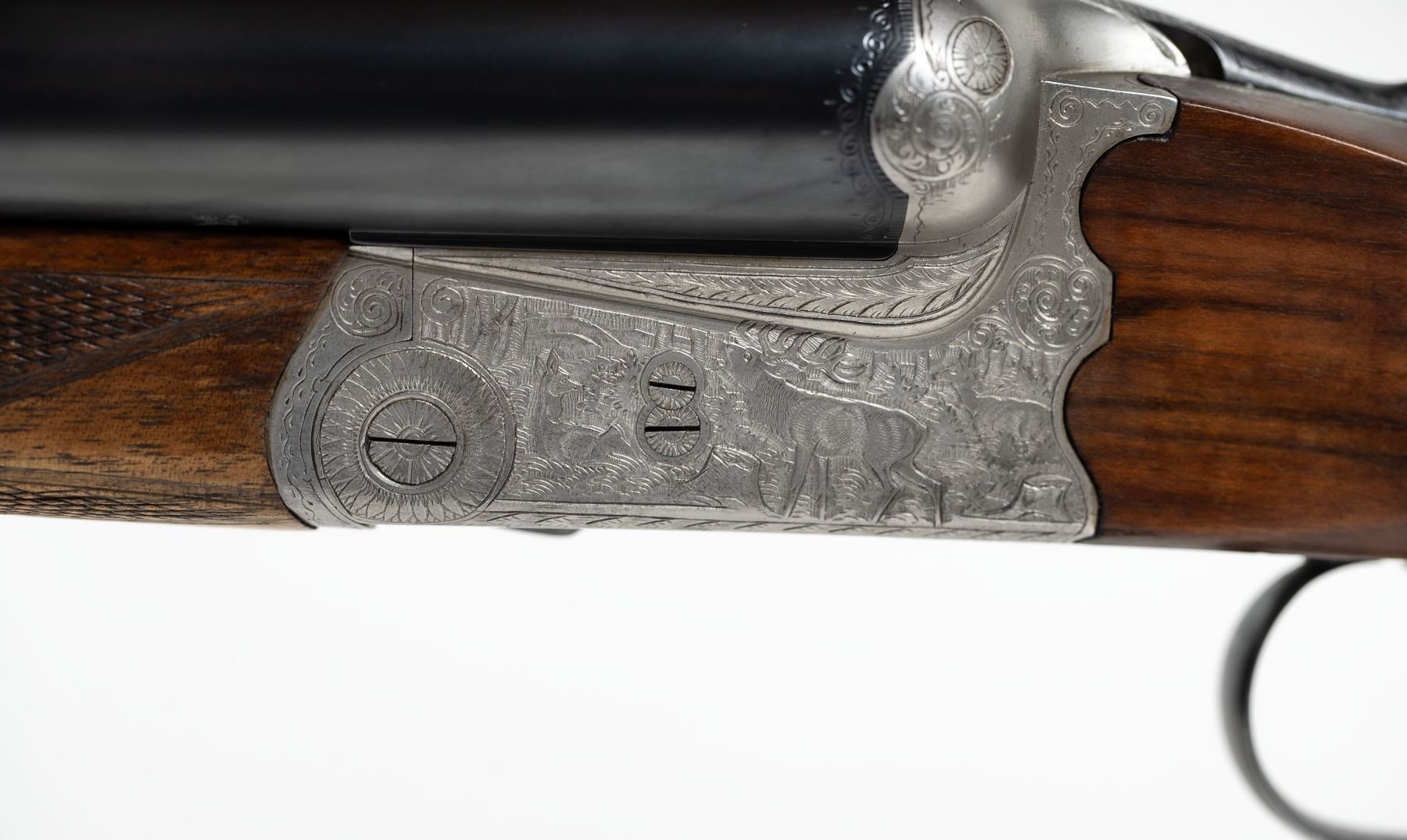 This exceptional example of German gunmaking was manufactured in 1959 by Franz Sodia and represents the pinnacle of traditional European craftsmanship. This classic drilling configuration offers the full functionality of a double-barrel shotgun combined with the power and versatility of a rifle barrel, allowing the shooter to transition seamlessly from upland birds to big game.