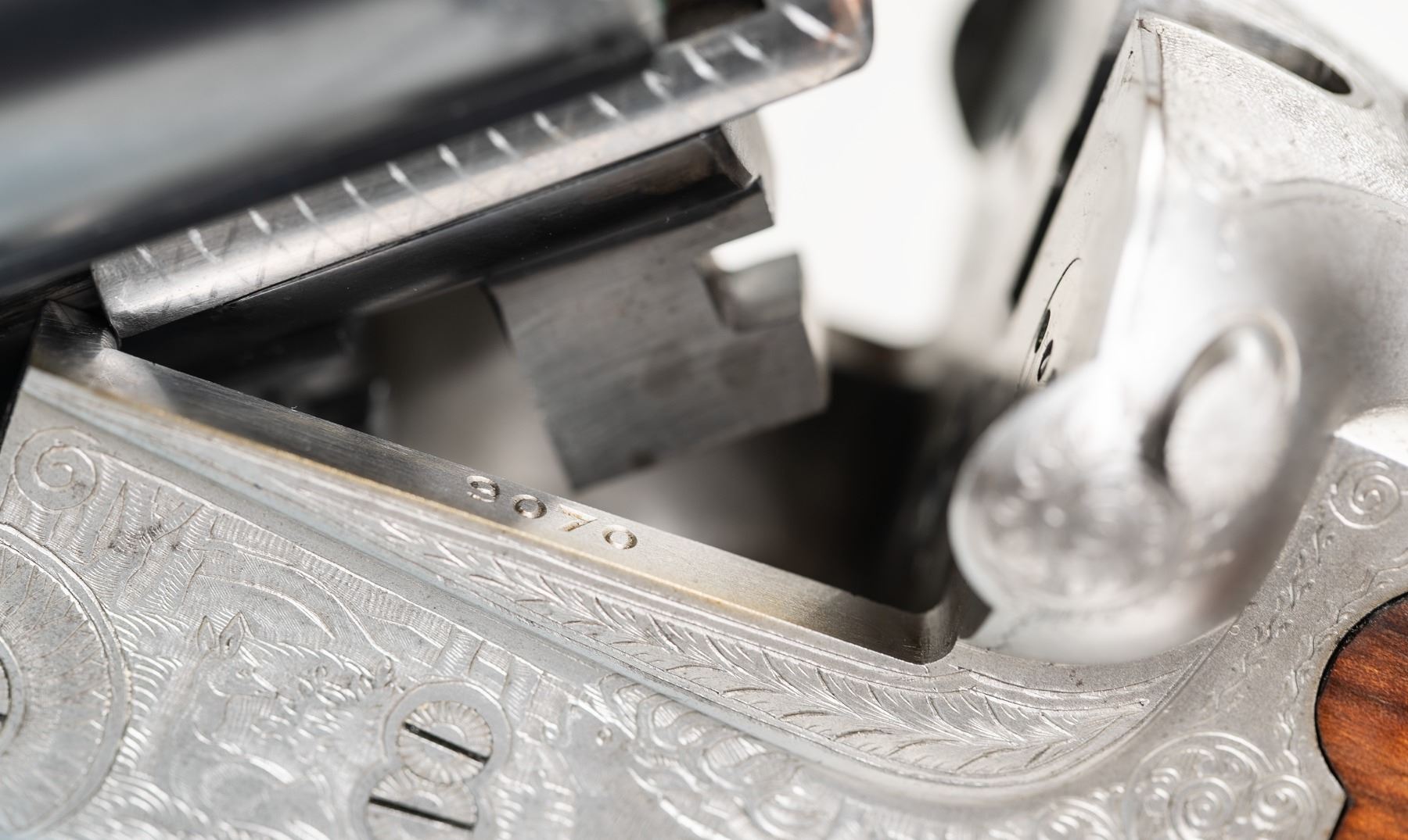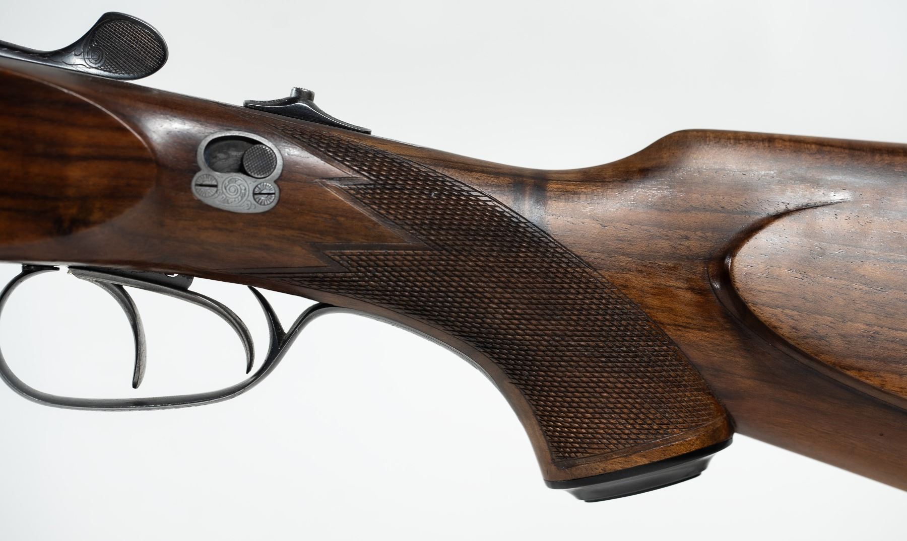 Built in highly desirable American calibers, this drilling features full-choke 12-gauge shotgun barrels—ideal for turkey and upland hunting—paired with a .30-06 rifle barrel capable of ethically taking any big game species in North America. A simple selector allows the shooter to move from shotgun to rifle with the slide of a switch.