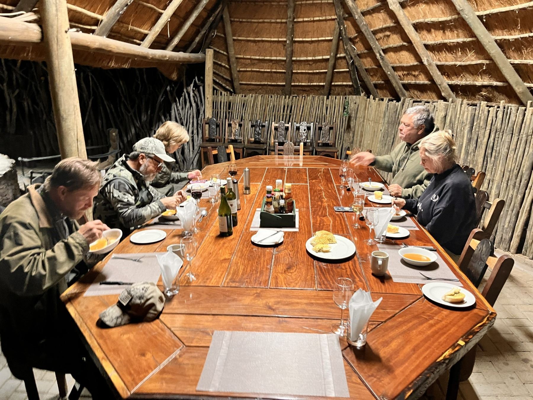 This is a rifle hunt. Additional trophies can be added as per the current price list. Safari Lodge with firepit and ensuite bathroom, excellent meals, drinks, field preparation of trophies, PH services and skinners/trackers.