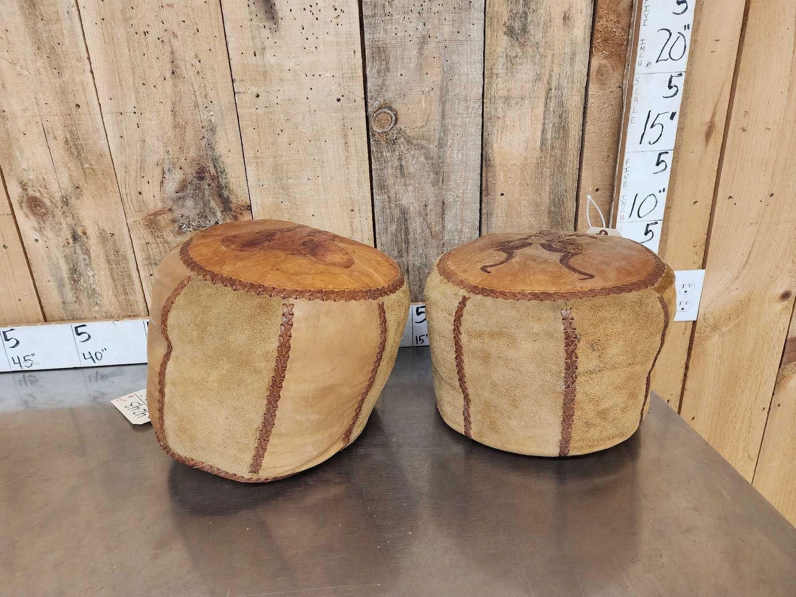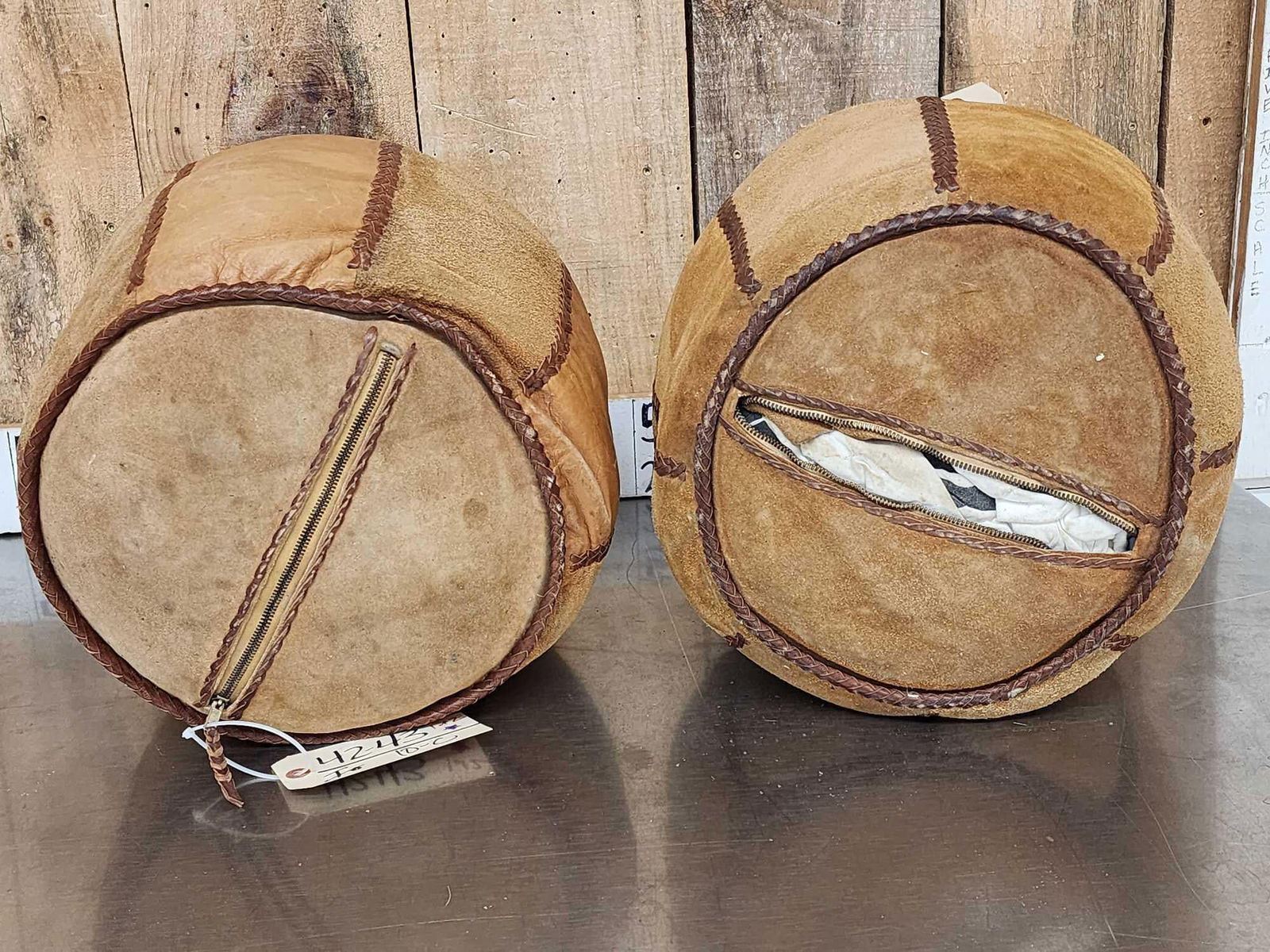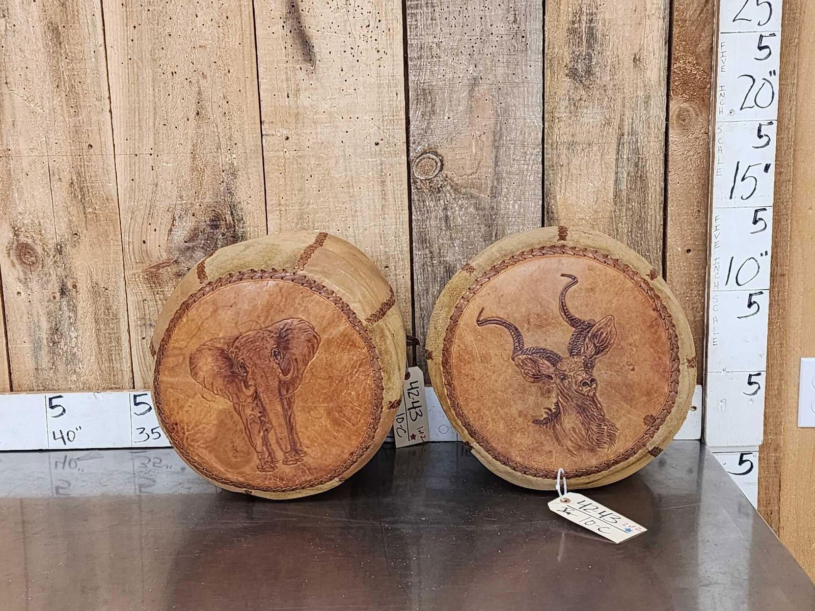 Lot 10C Pair Of African Leather Foot Stools