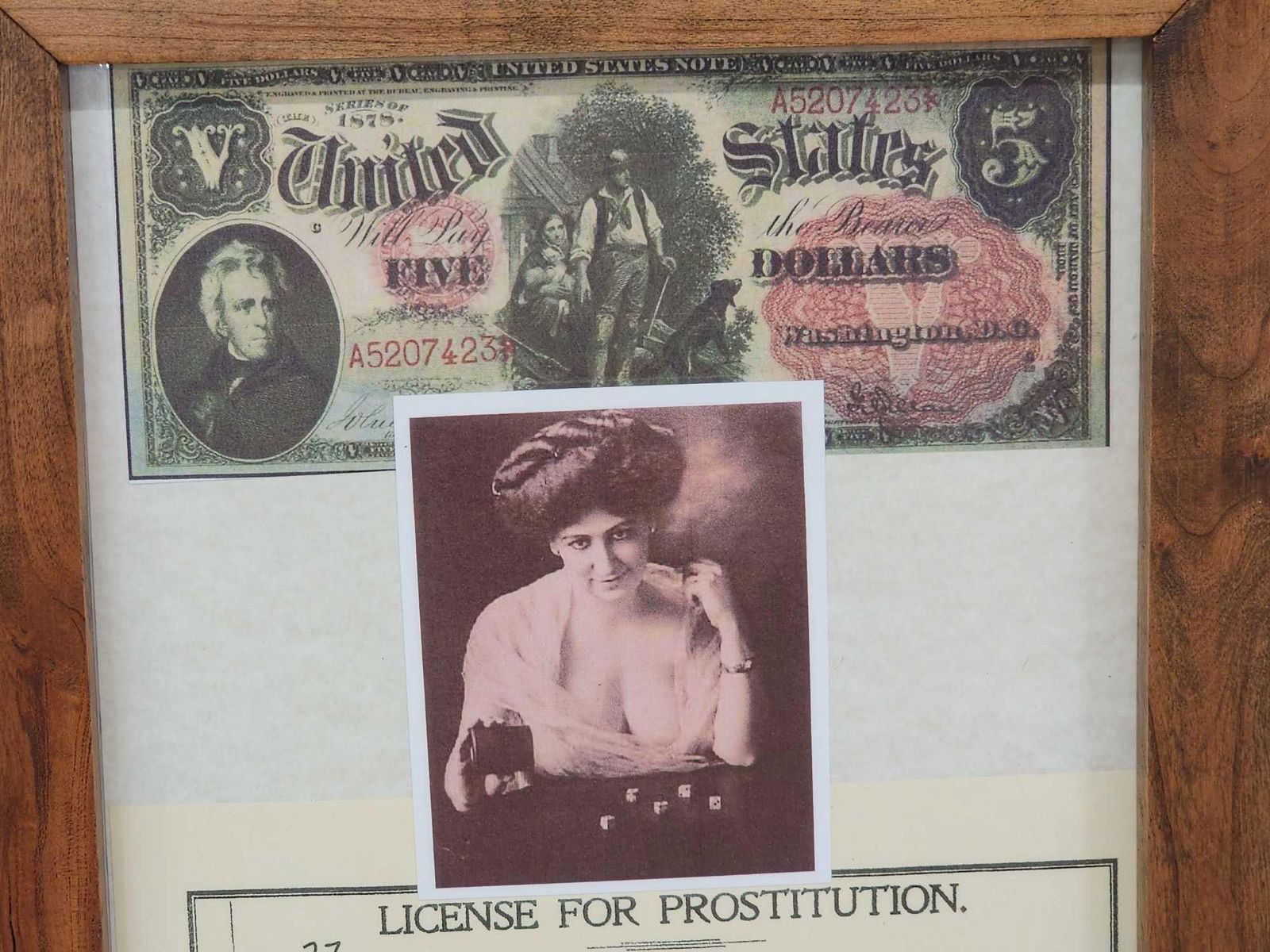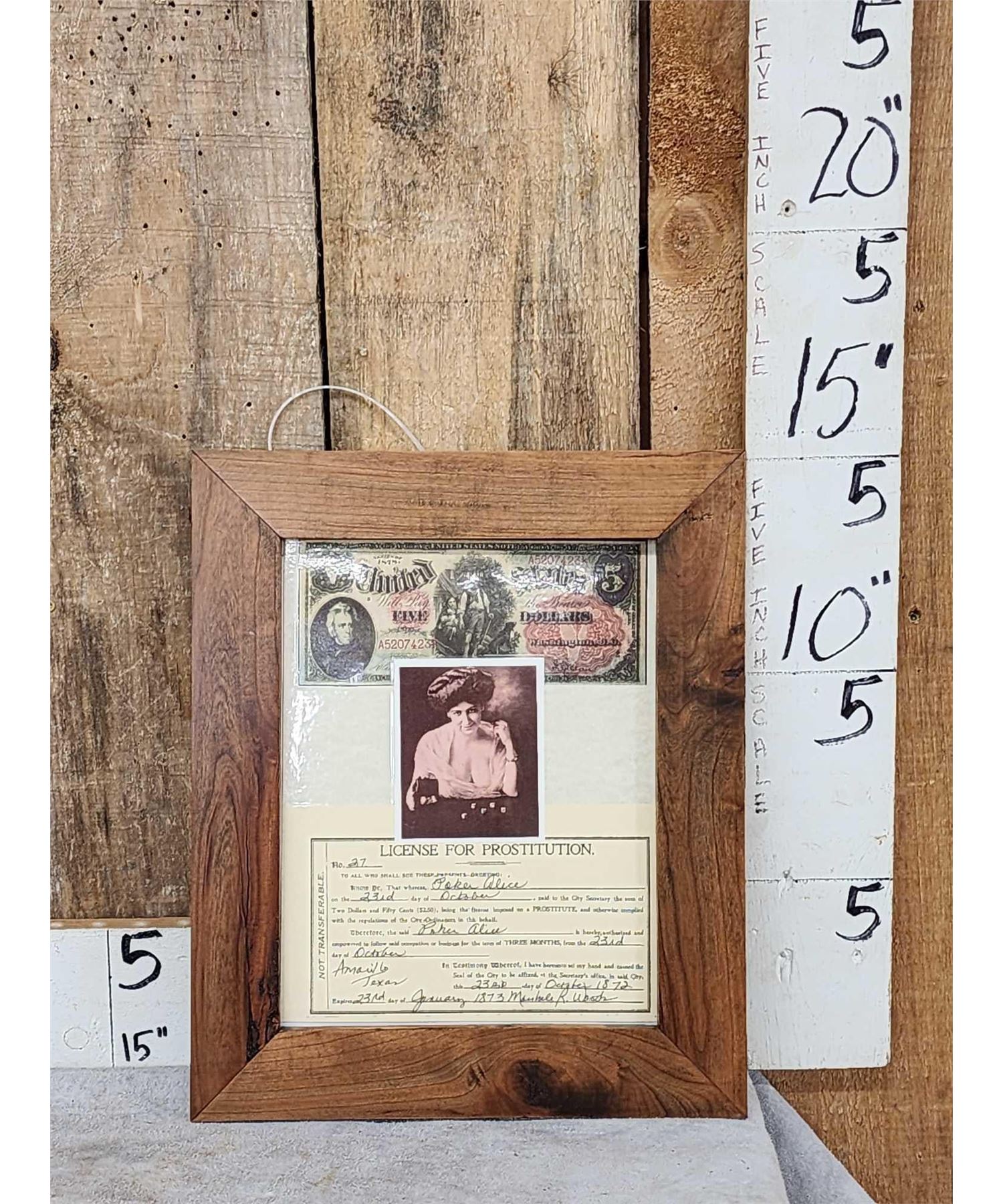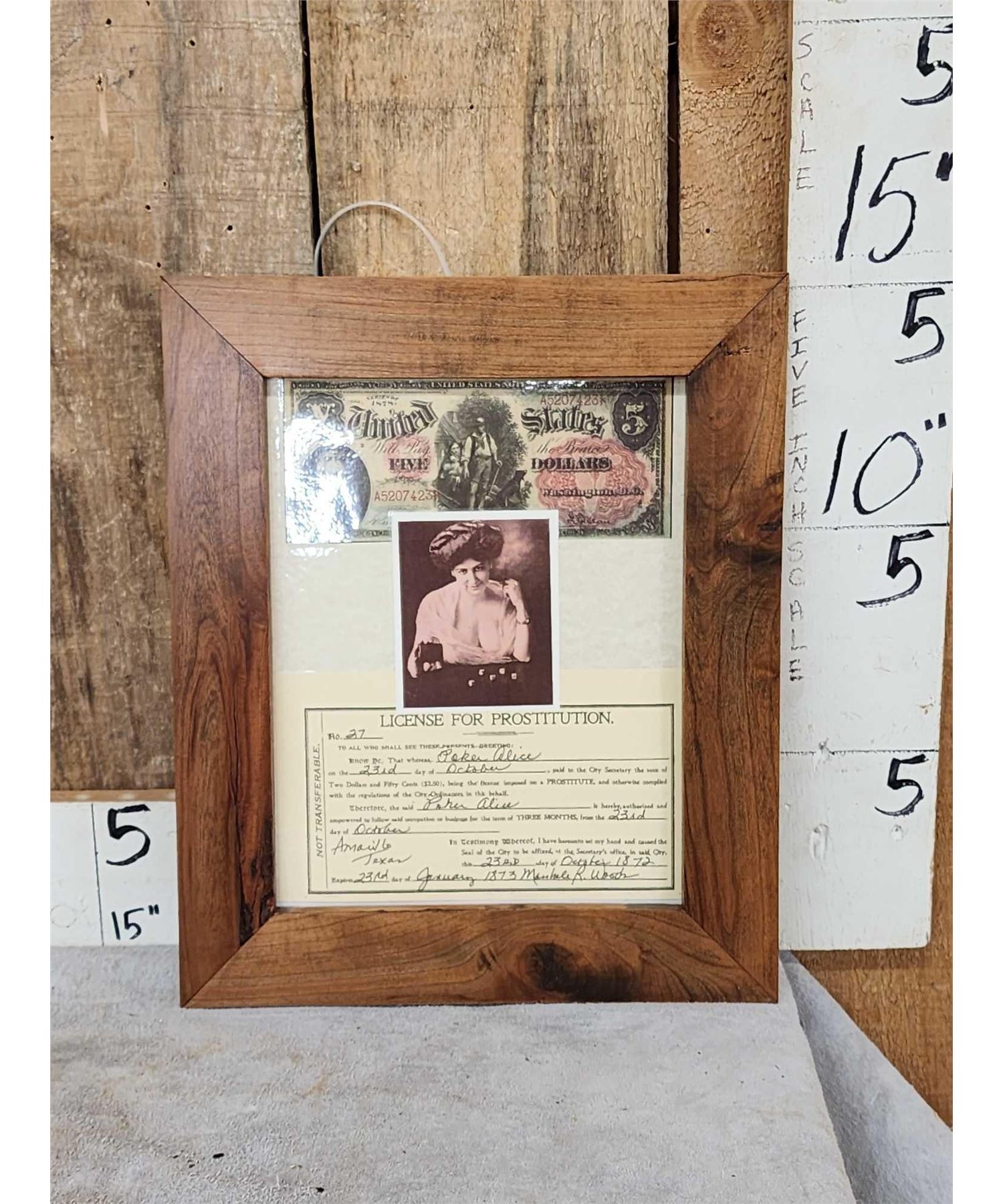 21.4 Issued to madam Poker Alice in custom made cherry wood frame