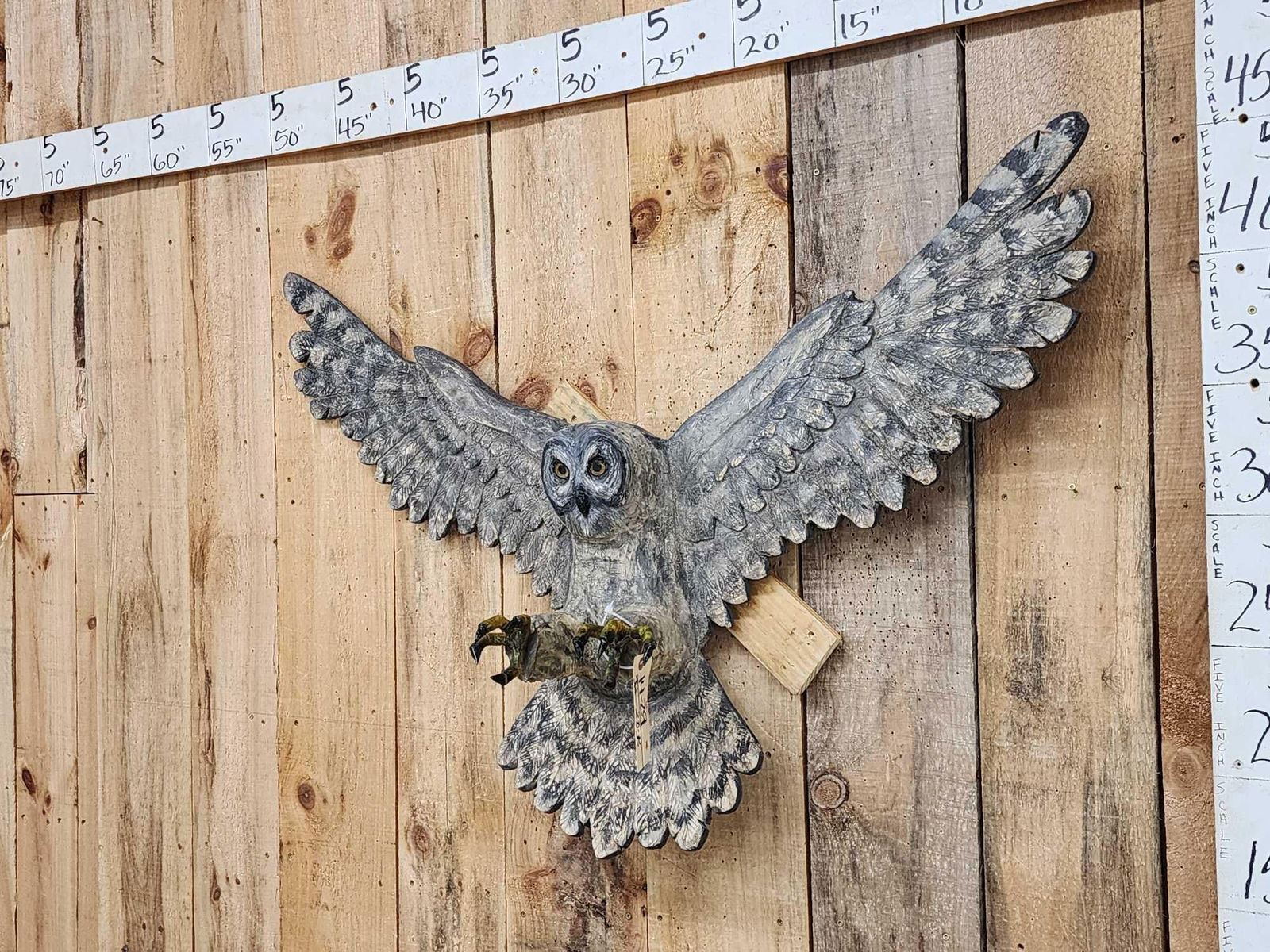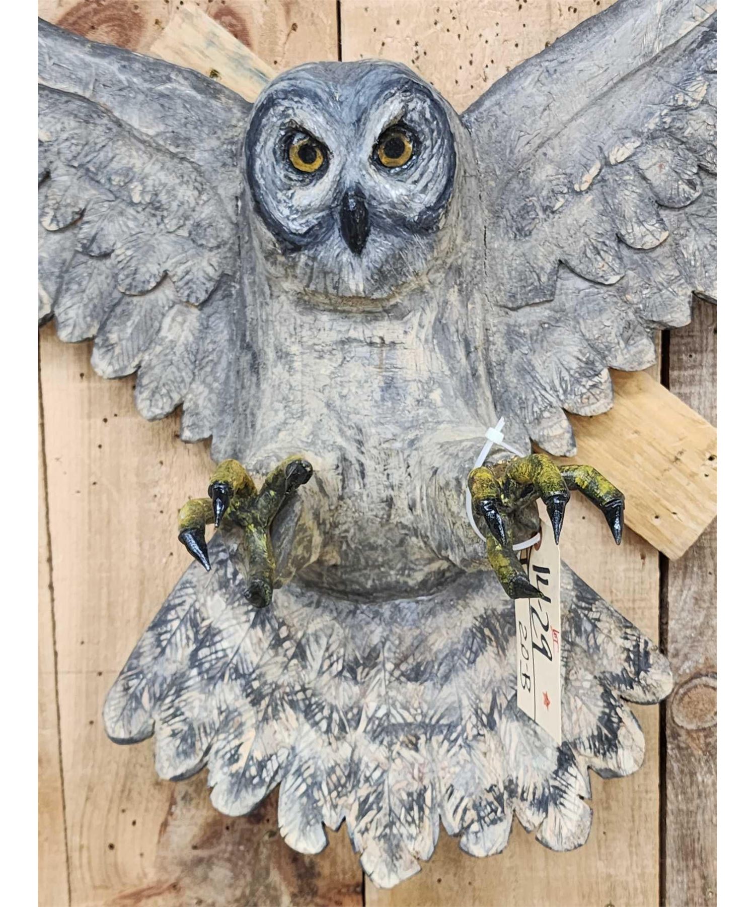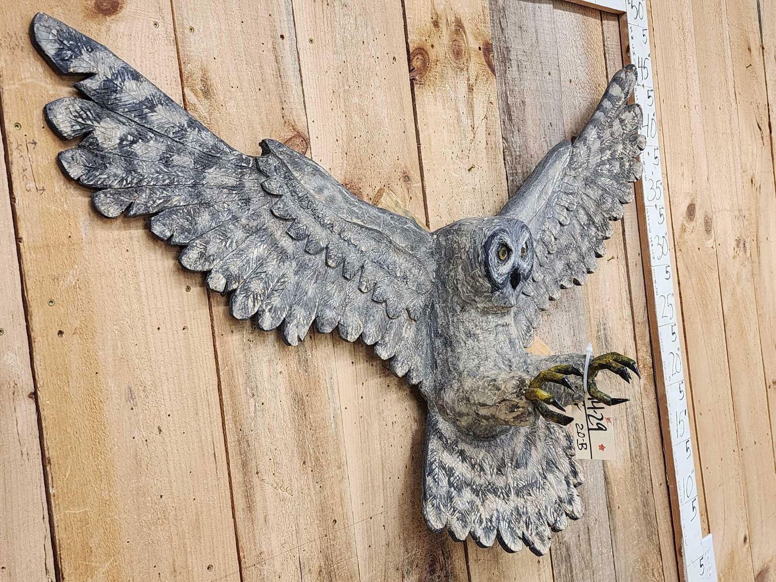 Lot 20B Hand Carved Grey Owl In Flight Wood Carving