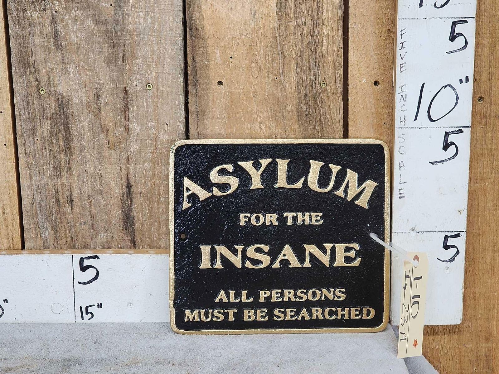 Lot 23A Asylum For The Insane Cast Iron Sign