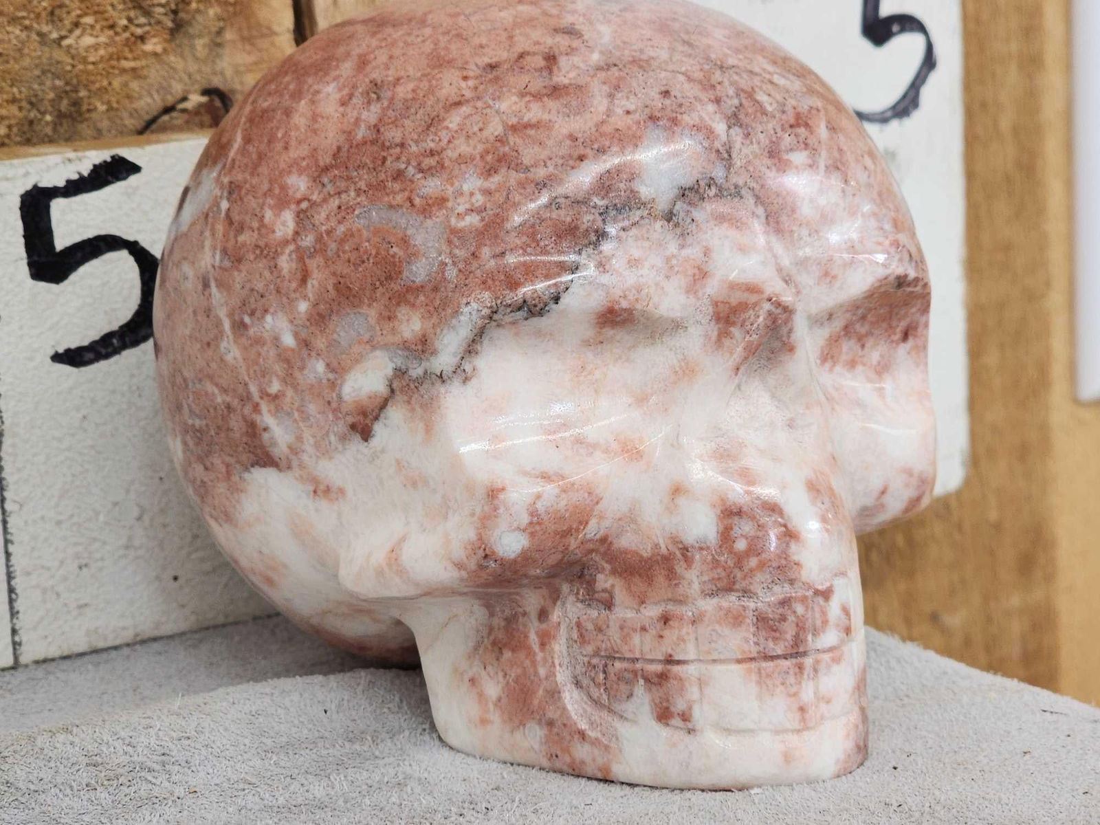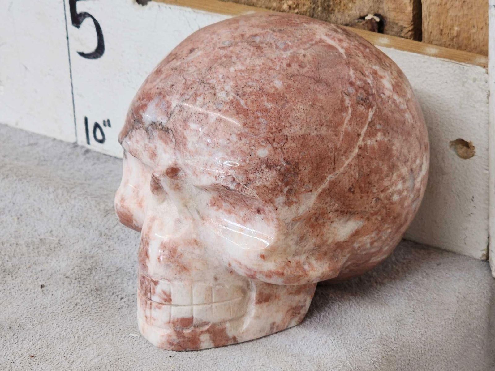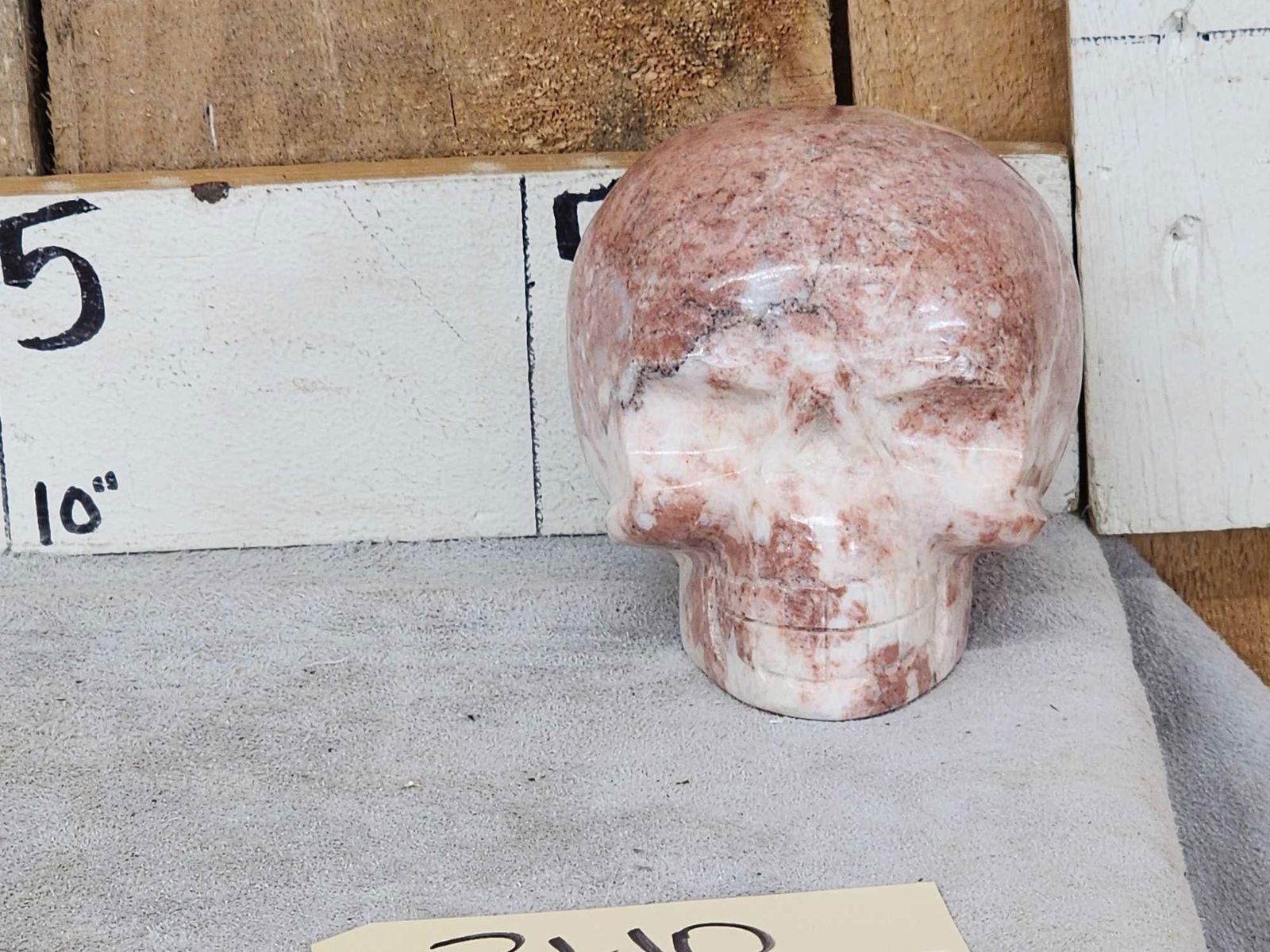Lot 26A Hand Carved Human Skull In Strawberry Jasper Stone