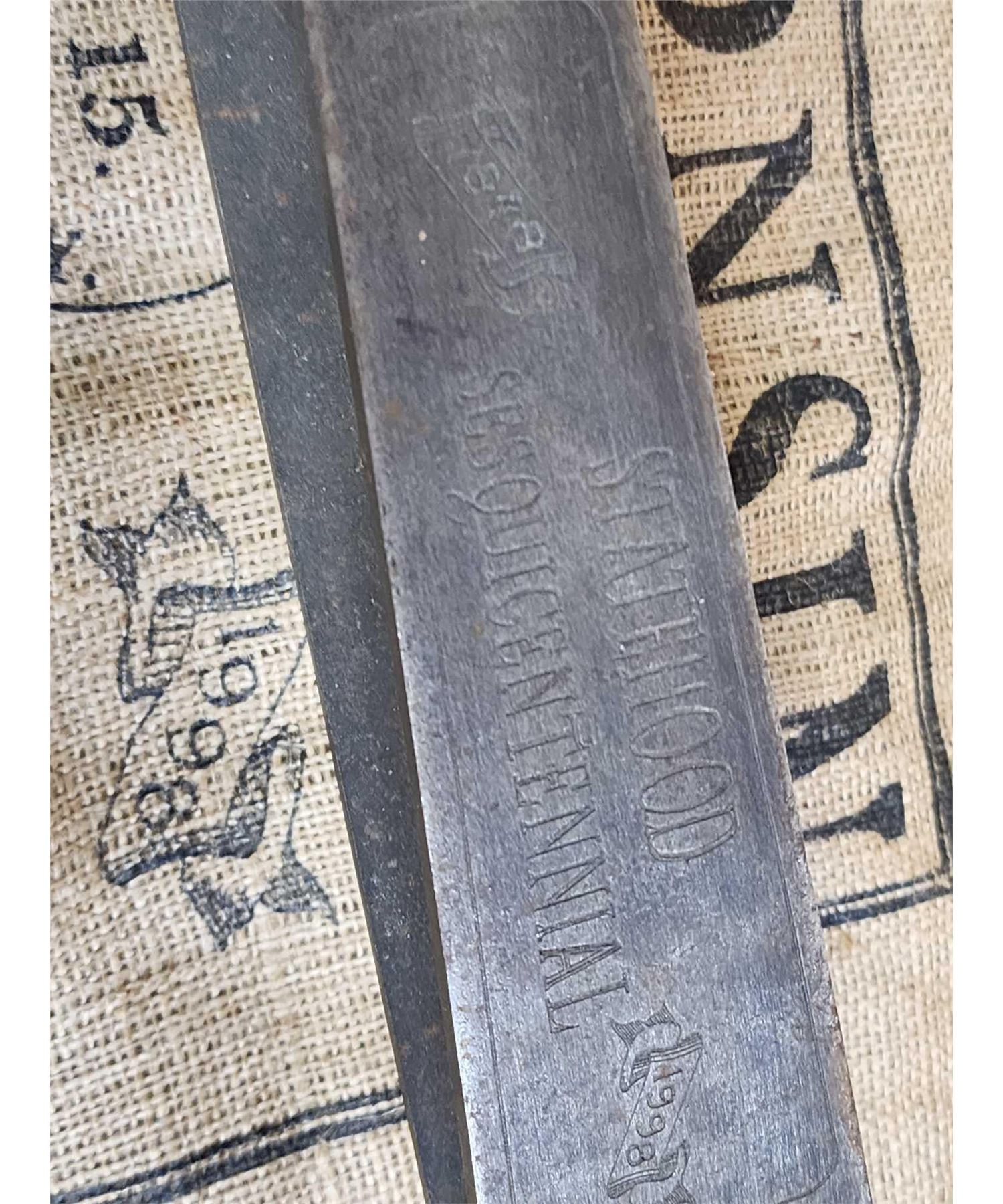 14.38 Very collectable piece engraved springs with burlap shipping bag