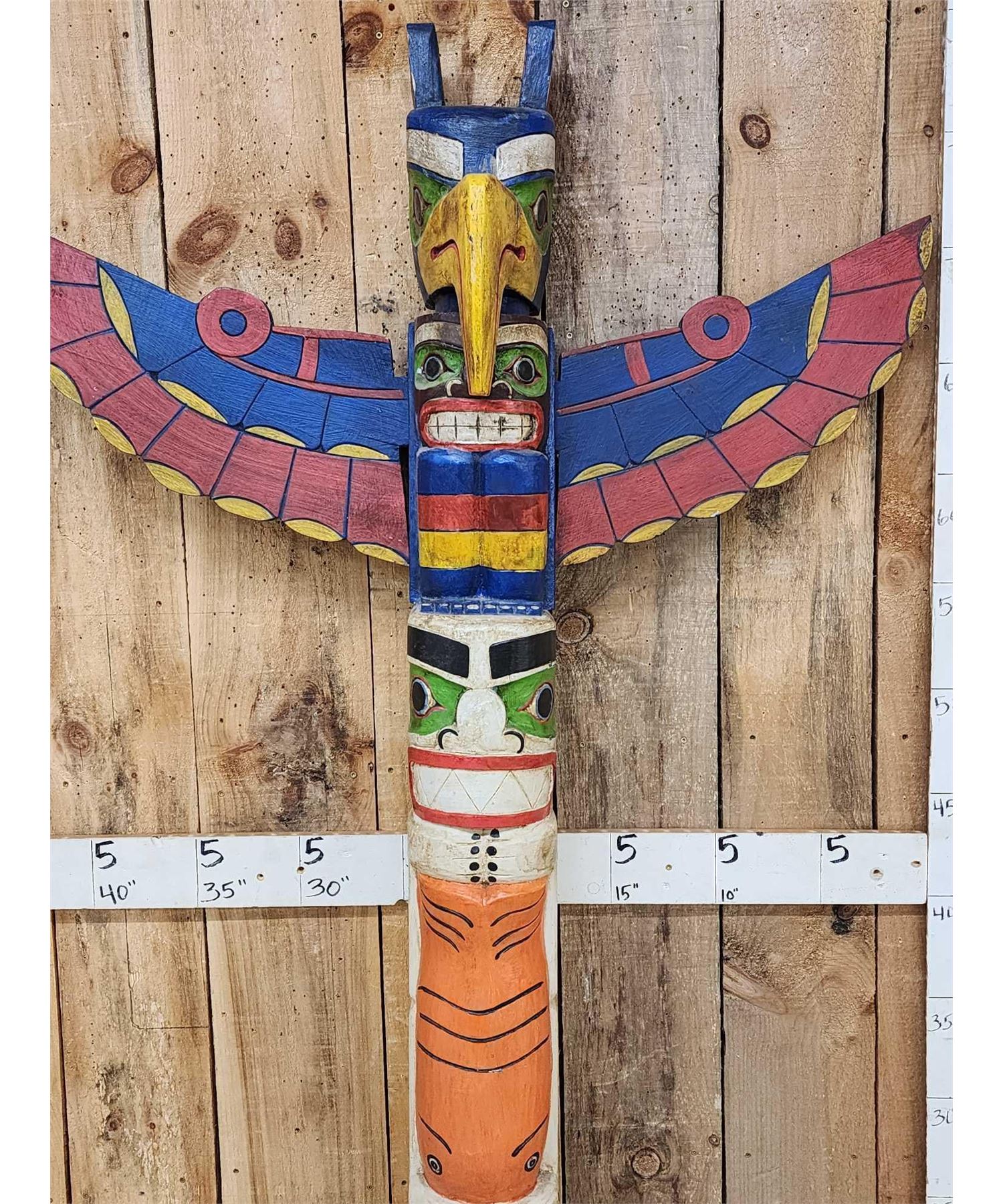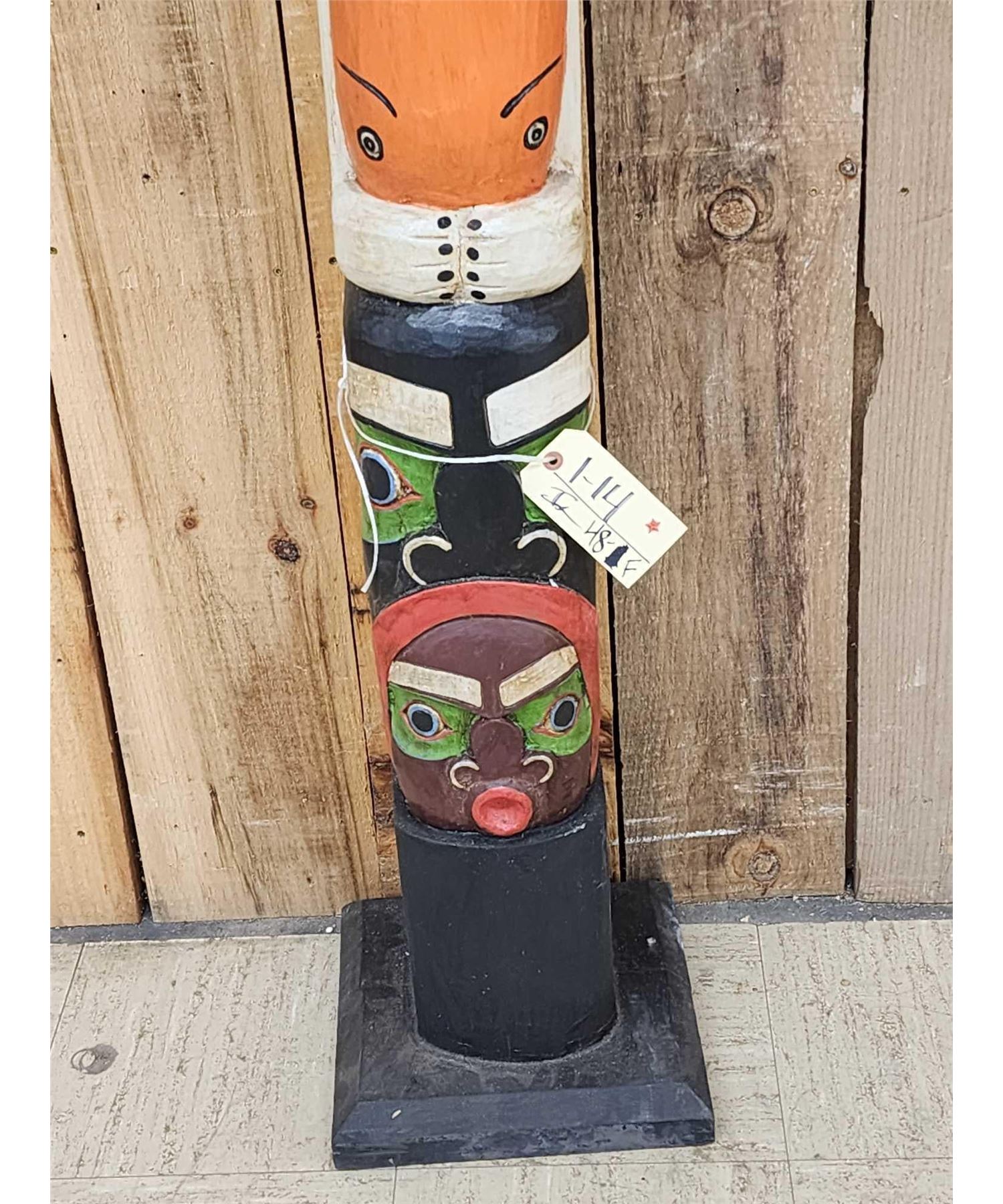 Lot 48F Hand Carved Wooden Totem Pole