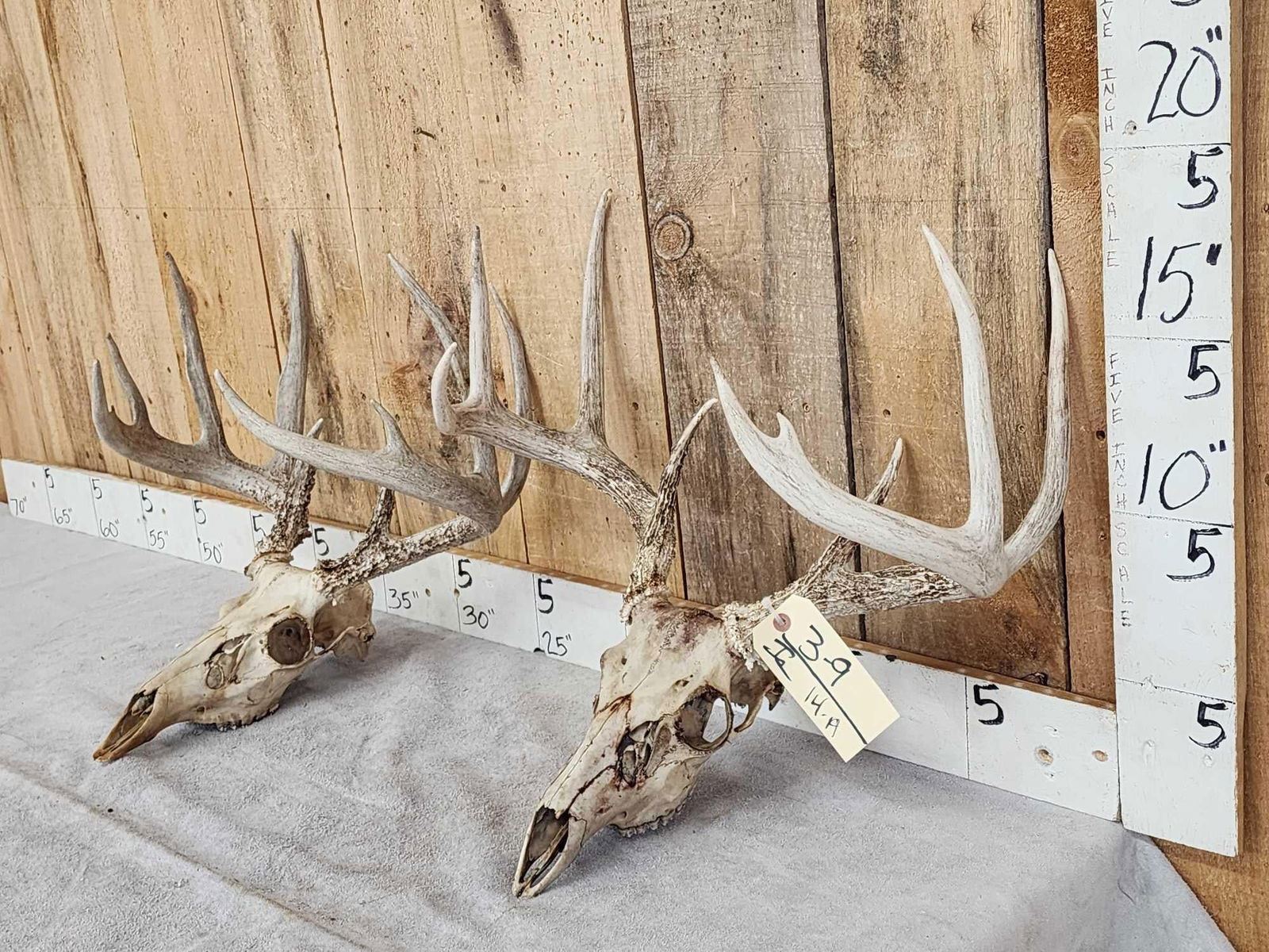 Lot 14A 2 Sets Of Whitetail Antlers On Skull