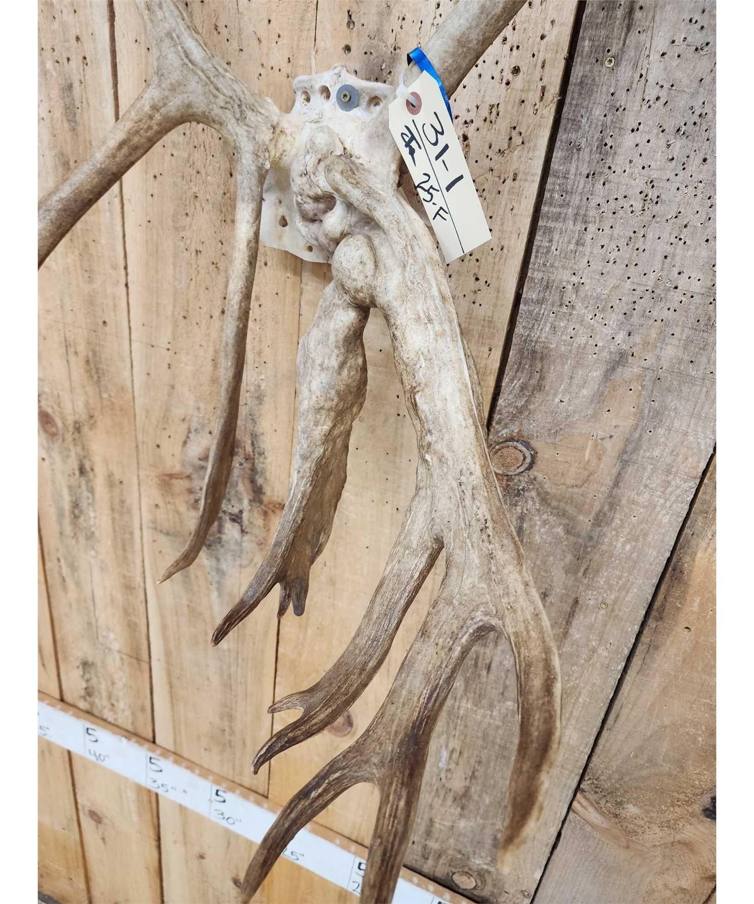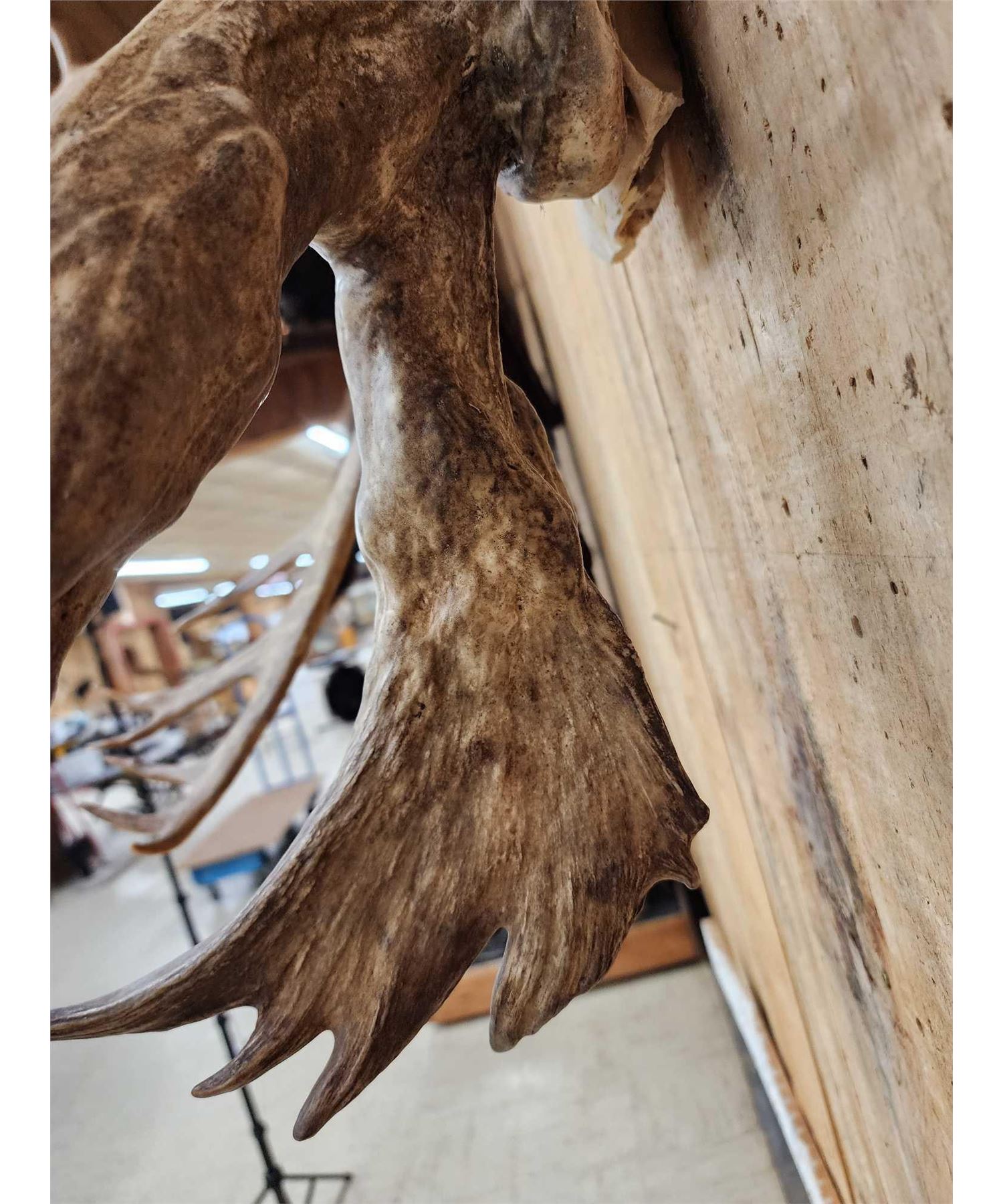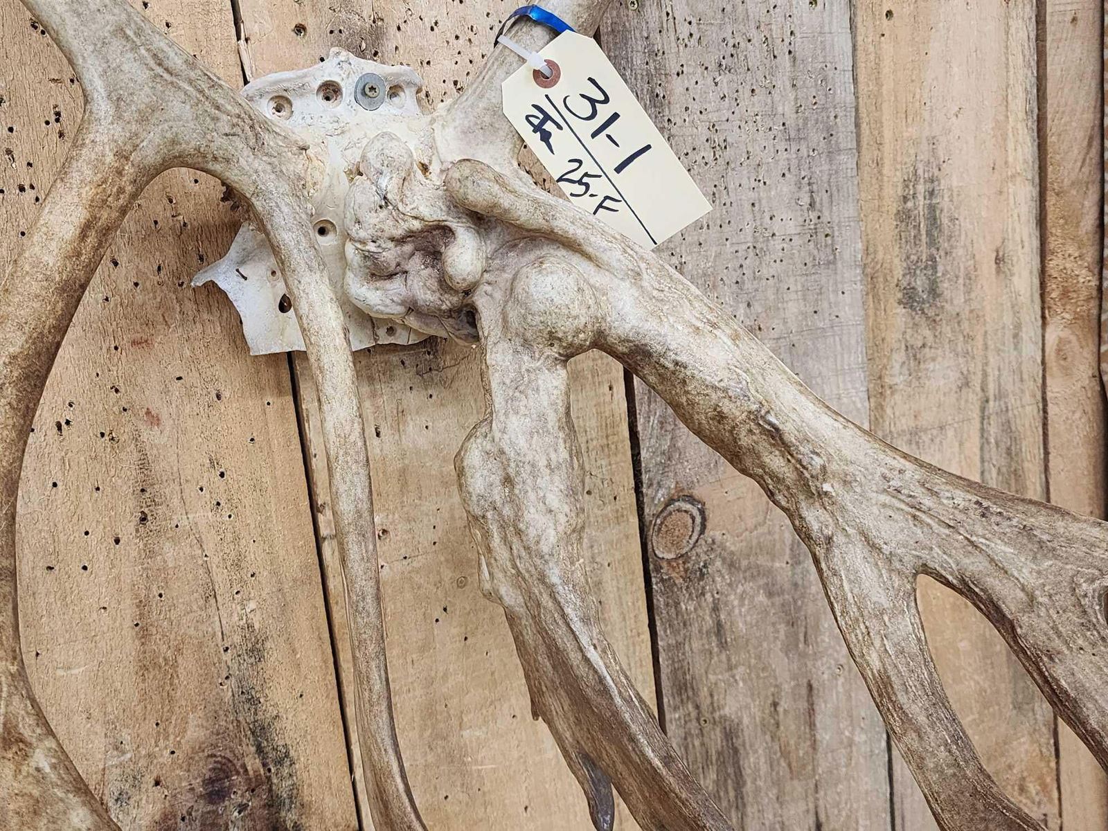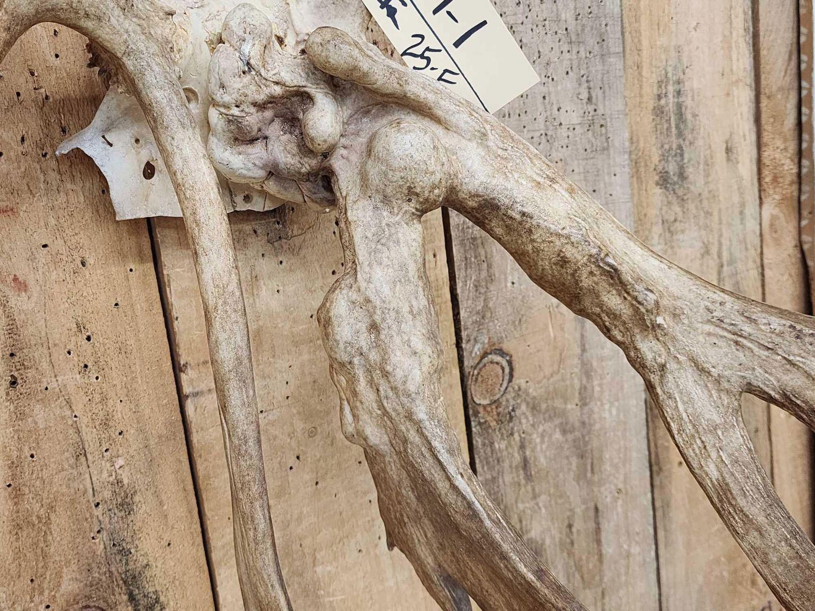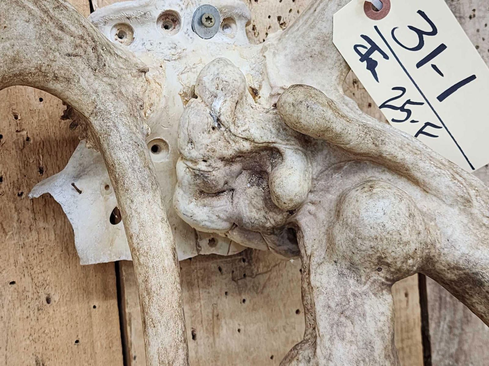 31.1 Crazy tumor antler on his right side that starts right at the skull plate continues down the front shovel .Most peculiar piece a must have for the Oddities Curiosity collector