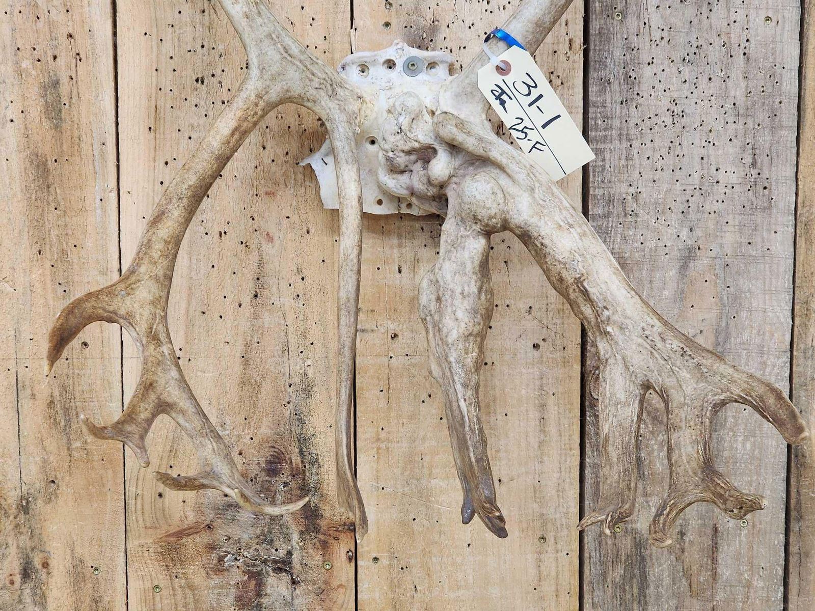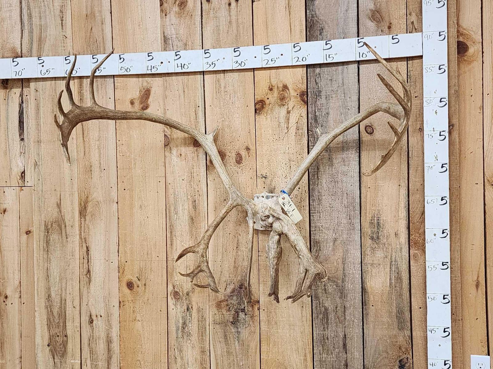 Lot 25F Freak Deformed Nontypical Caribou Antlers On Skull Plate