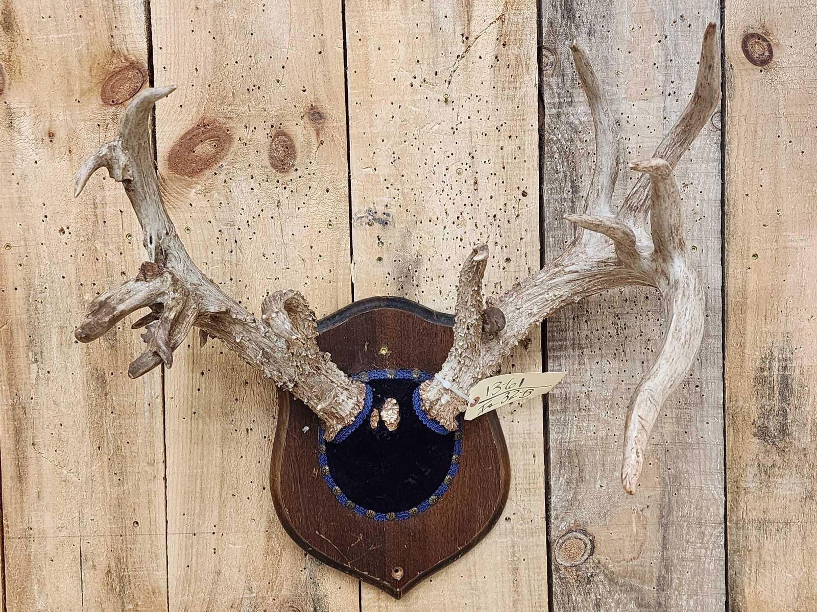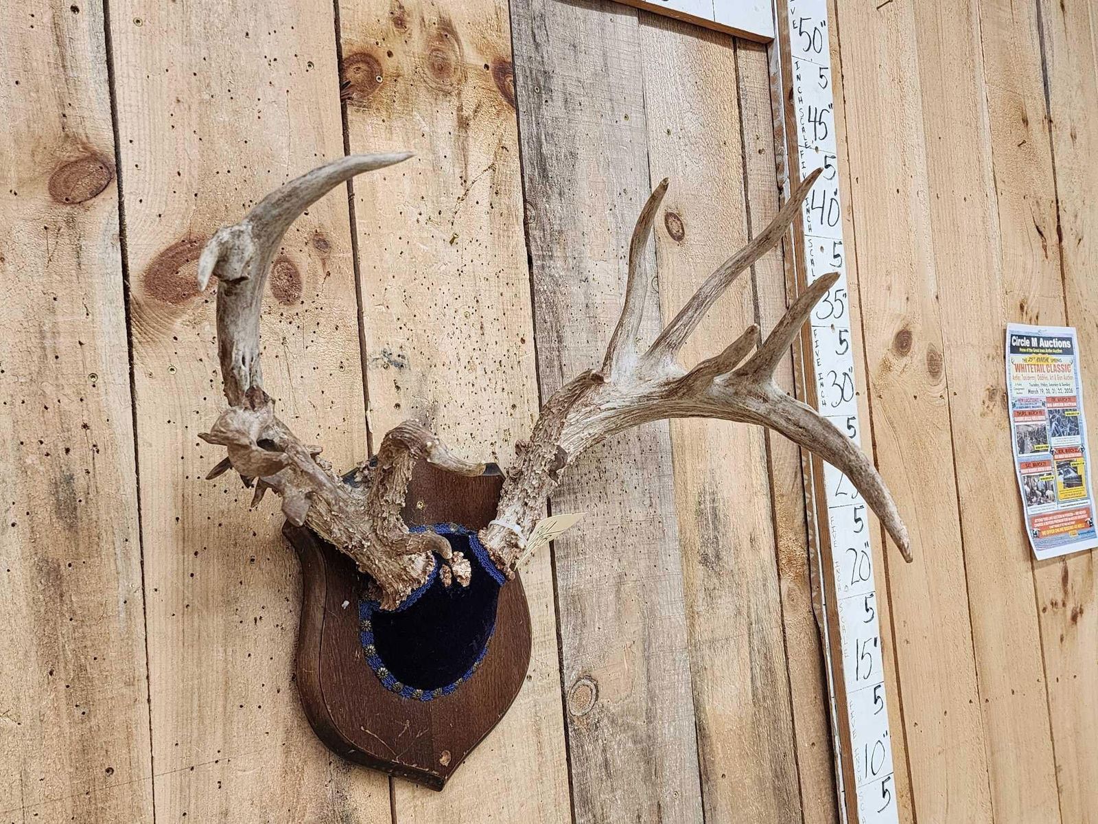 Lot 32B FREAK 4 Pedicle Whitetail Antlers On Plaque