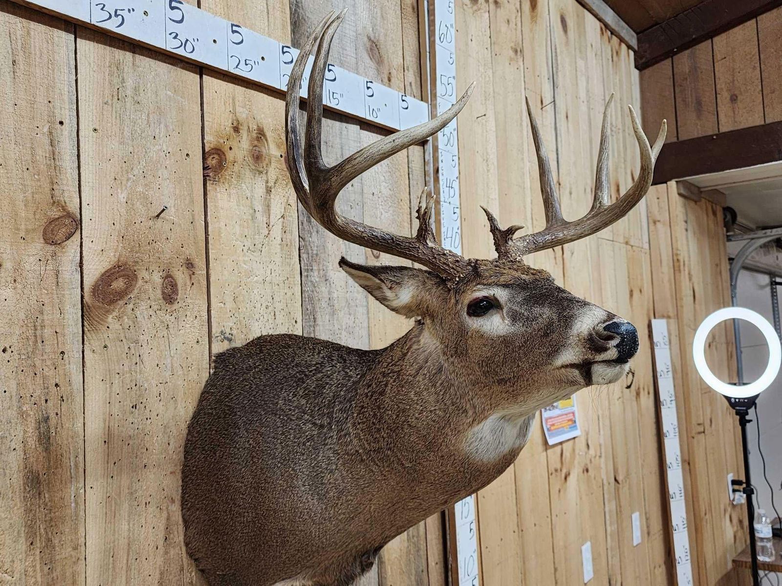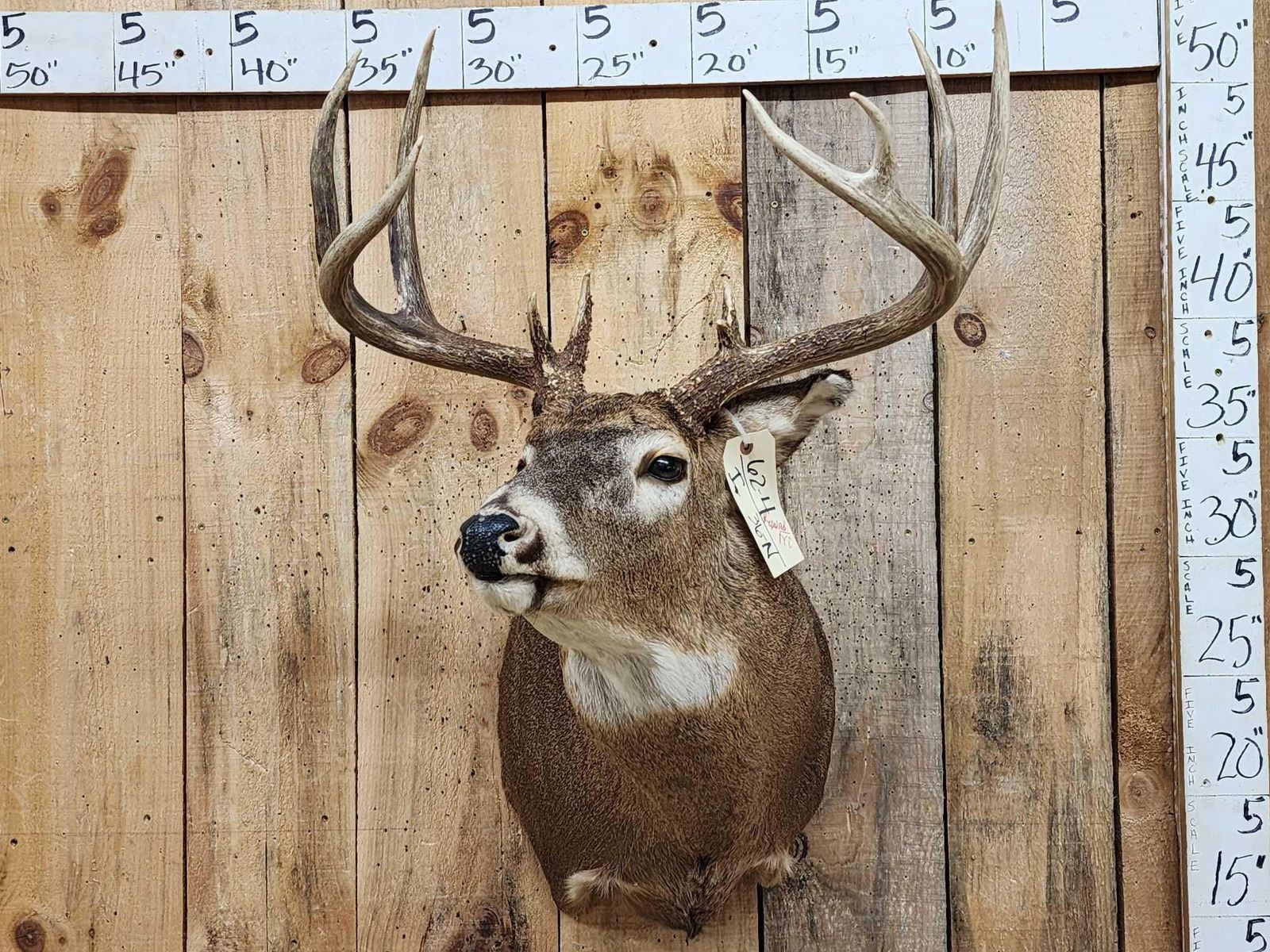 62.4 Nicely done mount big rutting neck repaired antler put your Antlers in this one $ave on the Taxidermy bill!