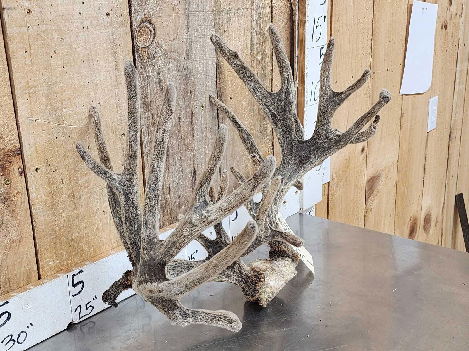 Lot 46A 26 Point Whitetail Antlers In Velvet On Skull Plate