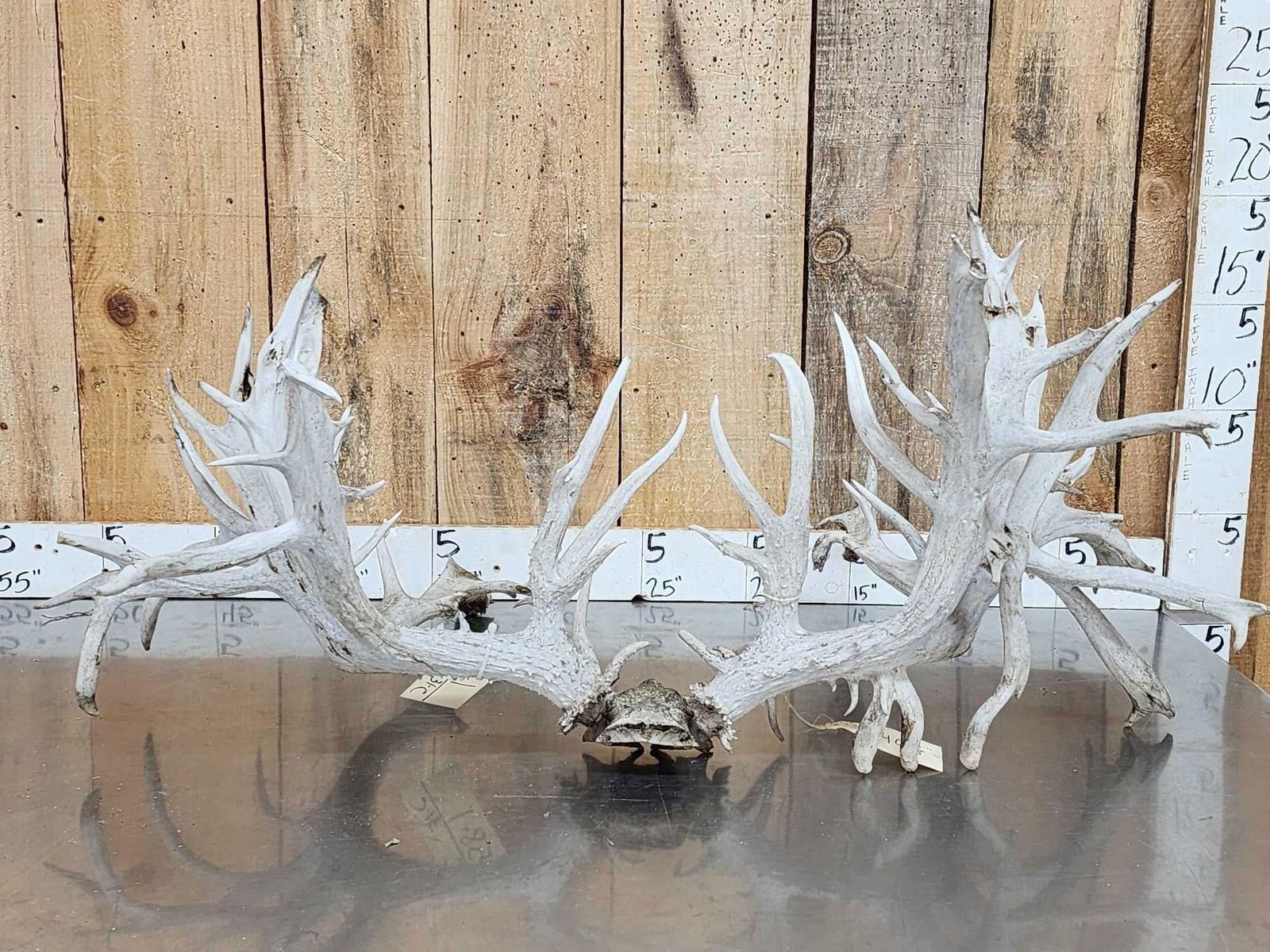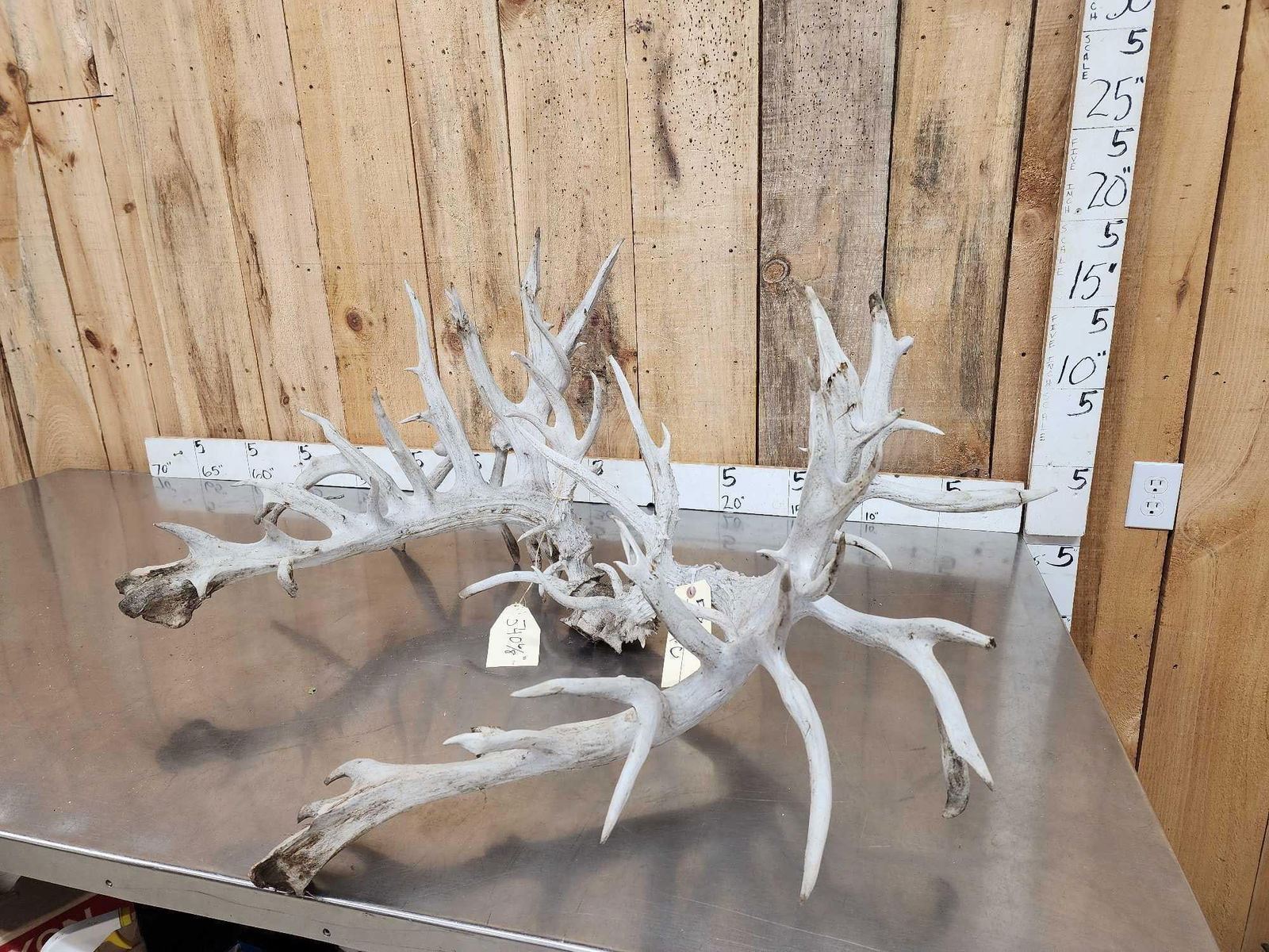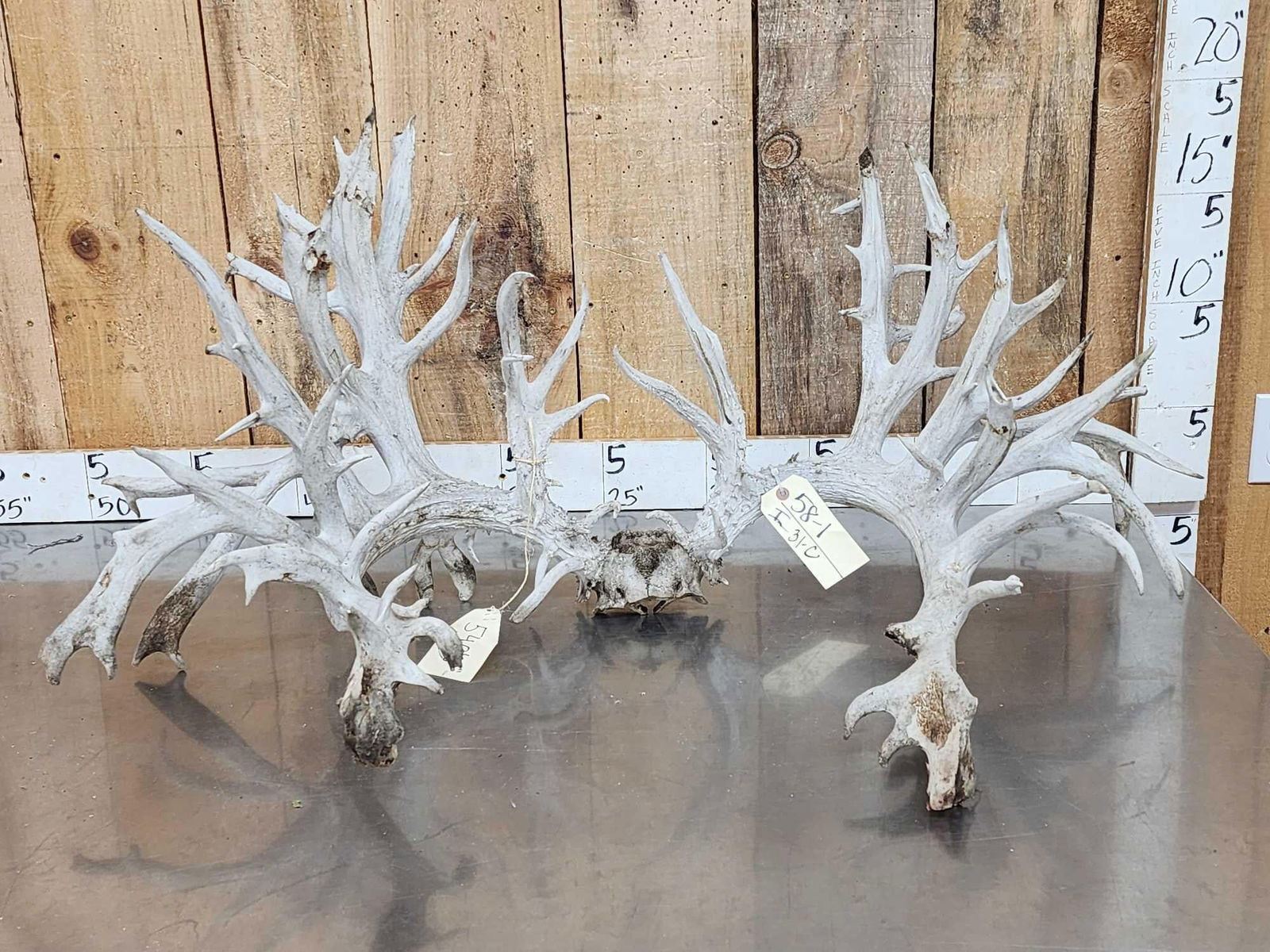 58.1 Unreal looking piece this giant game farm deer has an impressive 78 points an outside spread of over 45 " wide rivaling a good number of Moose! This is definitely a one of a kind set of Antlers would look quite impressive on a mount ! True world class specimen with a rough measurement of 540 4/8"