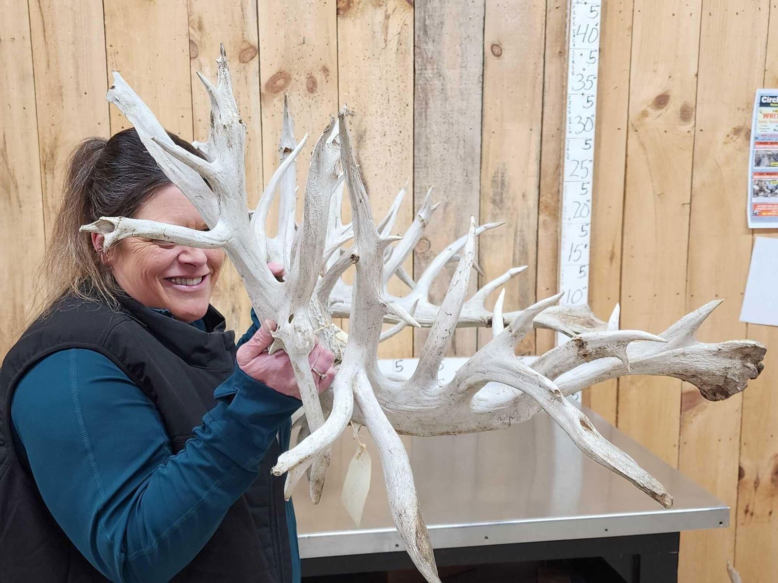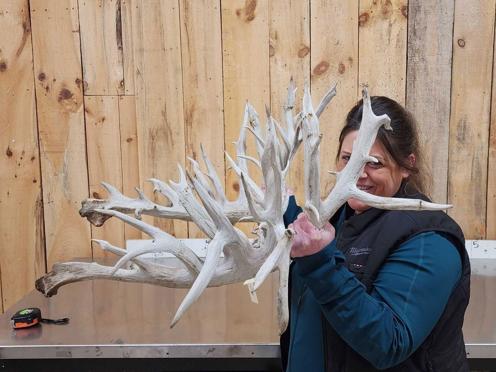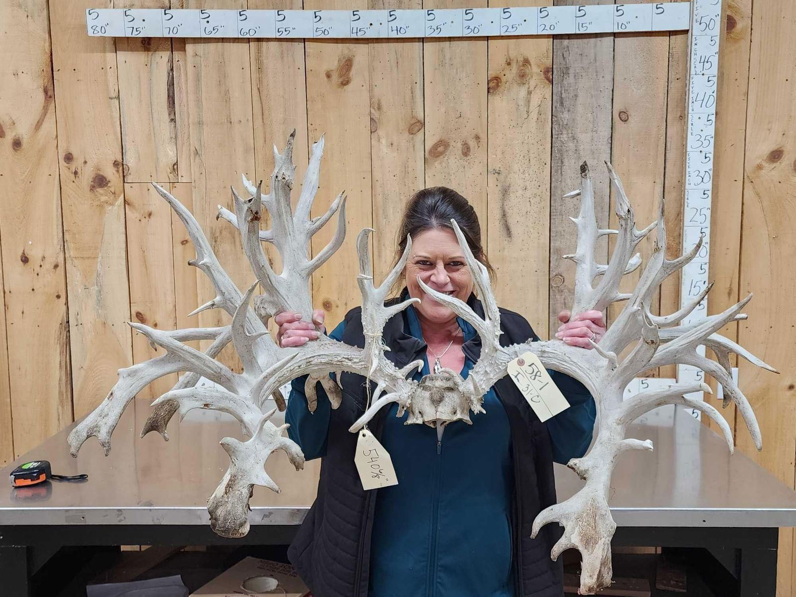 58.1 Unreal looking piece this giant game farm deer has an impressive 78 points an outside spread of over 45 " wide rivaling a good number of Moose! This is definitely a one of a kind set of Antlers would look quite impressive on a mount ! True world class specimen with a rough measurement of 540 4/8"