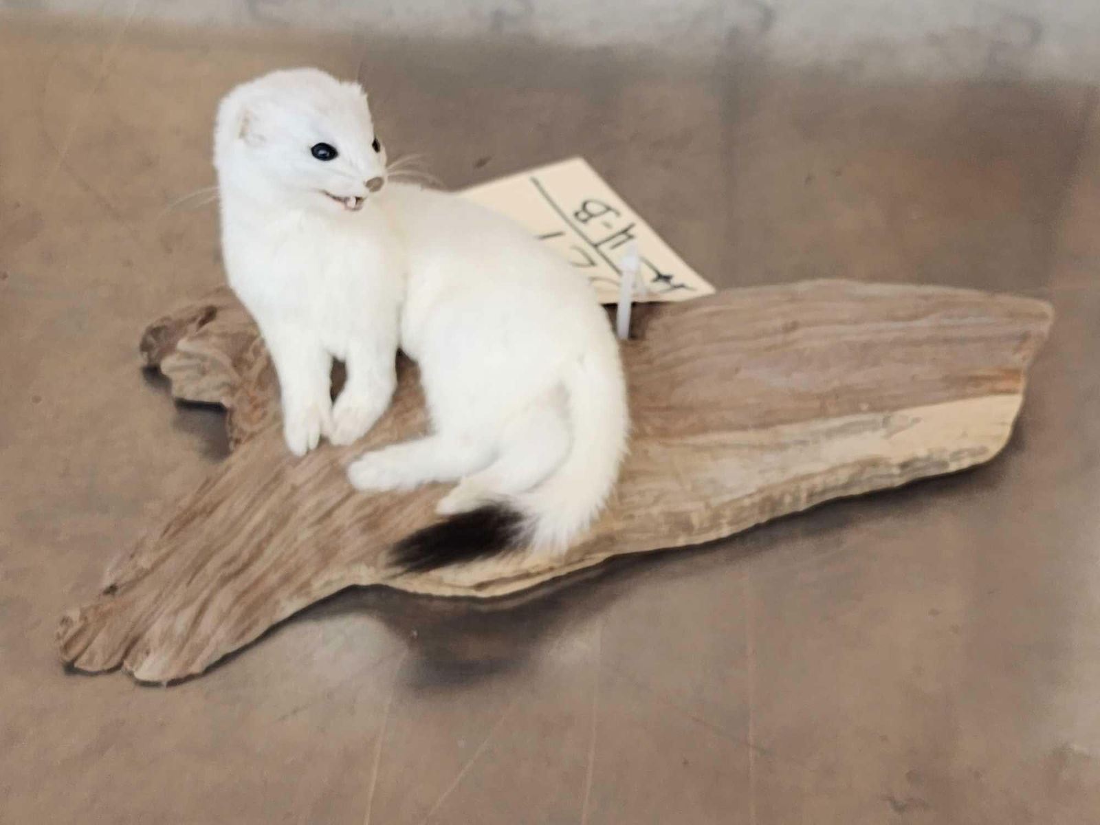Lot 4B White Weasel On Driftwood Taxidermy Mount