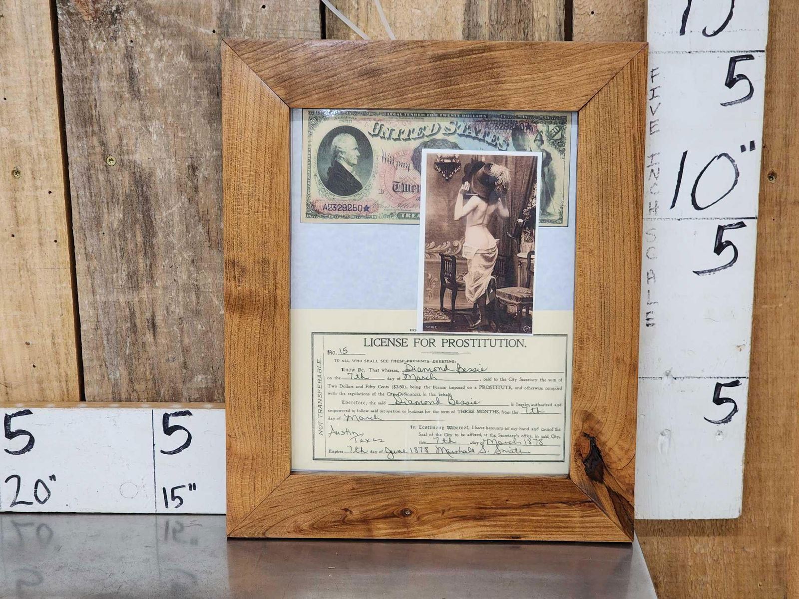 21.7 Issued to madam Diamond Bessie by Marshal S. Smith June 7 1878 great decorative piece in cherry wood frame