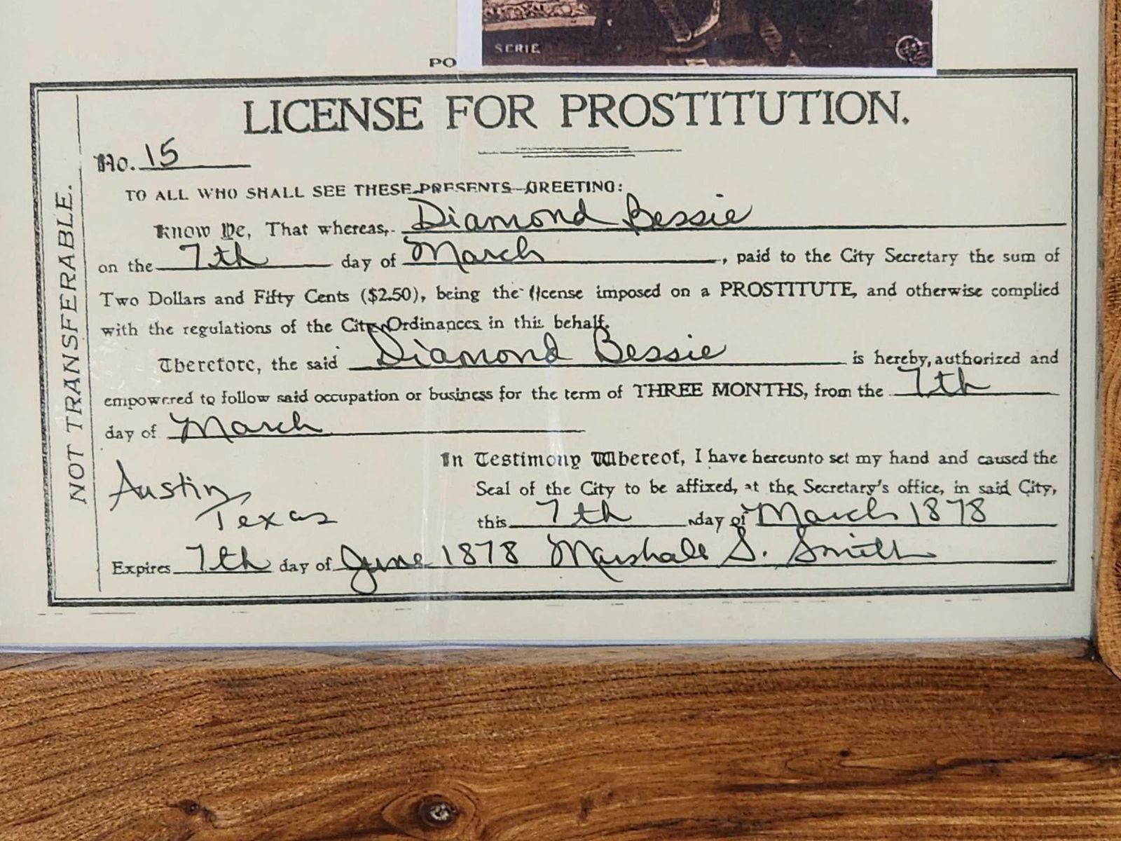 Lot 12A Copy Of 1878 Austin Texas Prostitution License