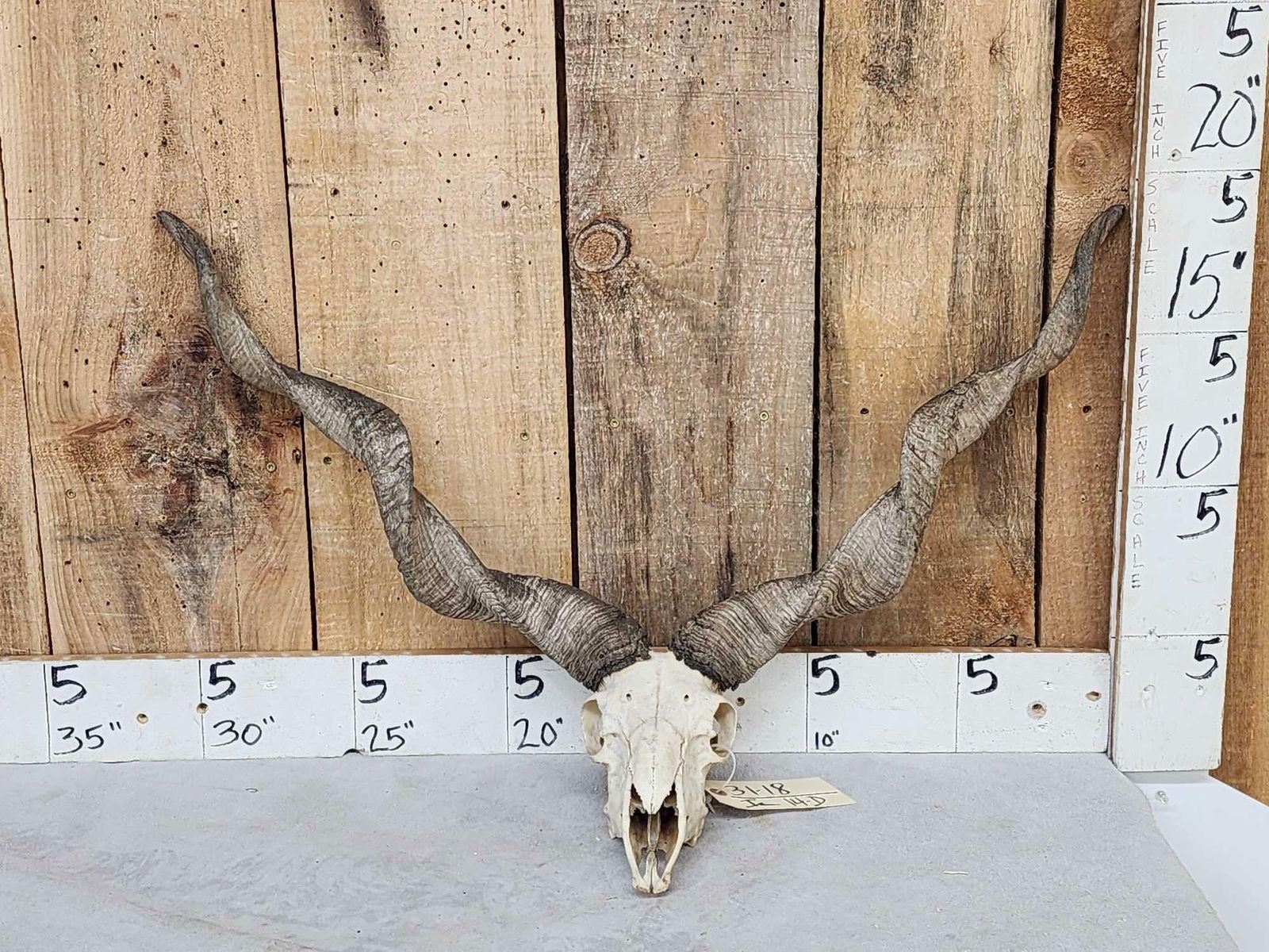 31.18 Scarce piece to find big spiral horns 30 1/2" wide awesome look works as a wall hanging or table top display