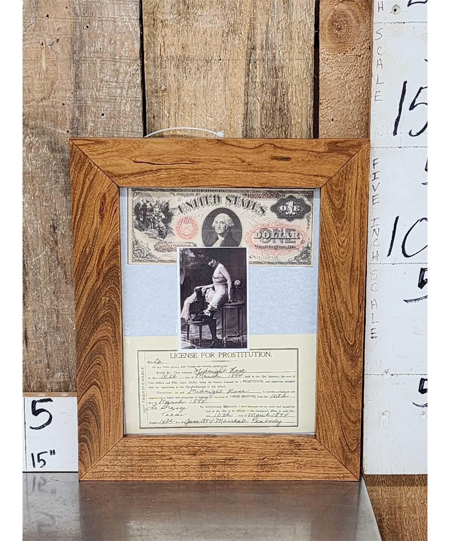 21.5 Issued to madam Midnight Rose March 10th 1894 by Marshal Peabody great decorative piece in cherry wood frame