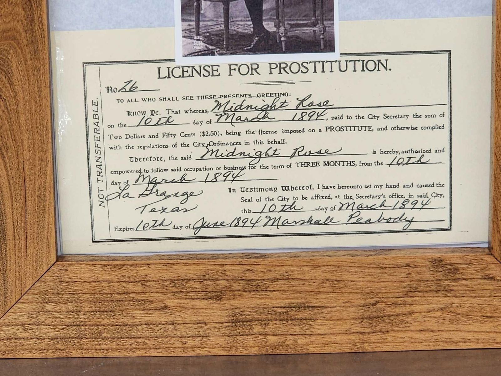 Lot 15A Copy Of 1894 La Grange Texas Prostitution License