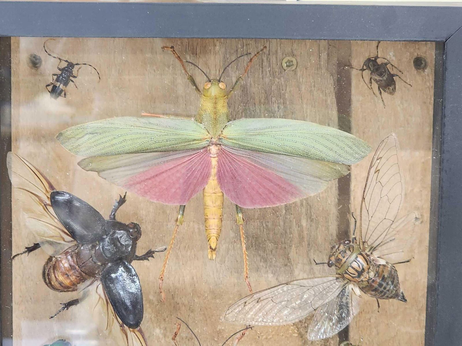 Lot 18A Frame Of 11 Exotic Insects Taxidermy Entomology
