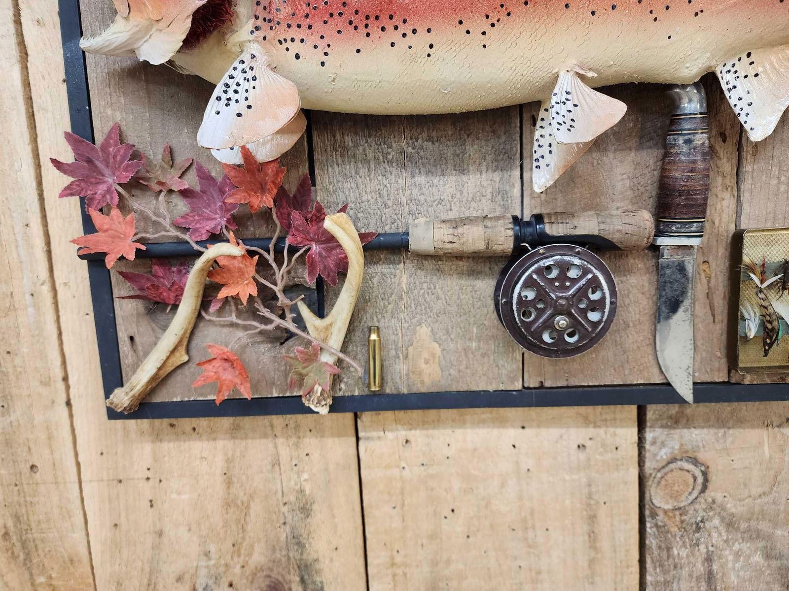 39.18 Cool vintage refurbished mount on rustic display decorated with vintage sporting goods