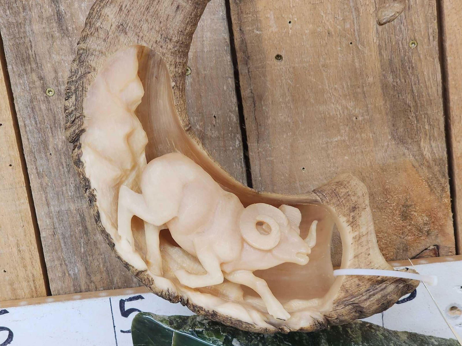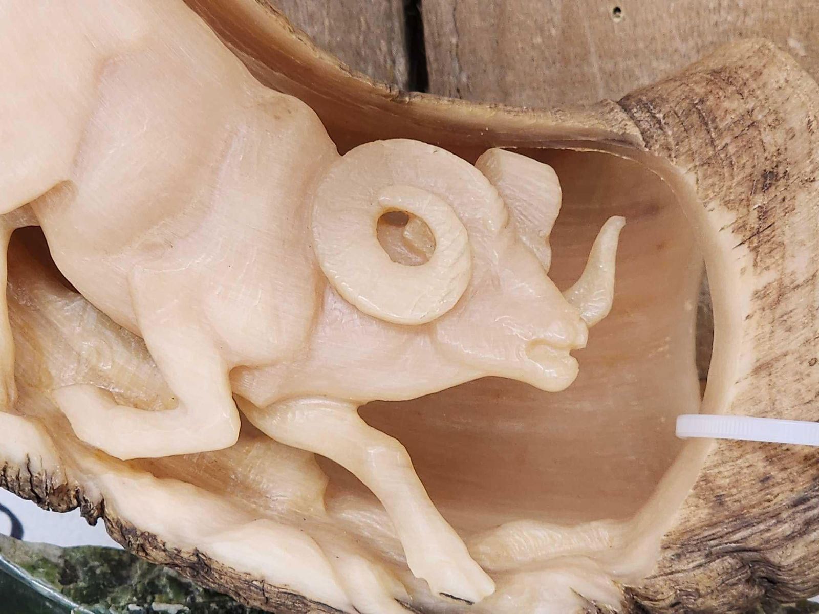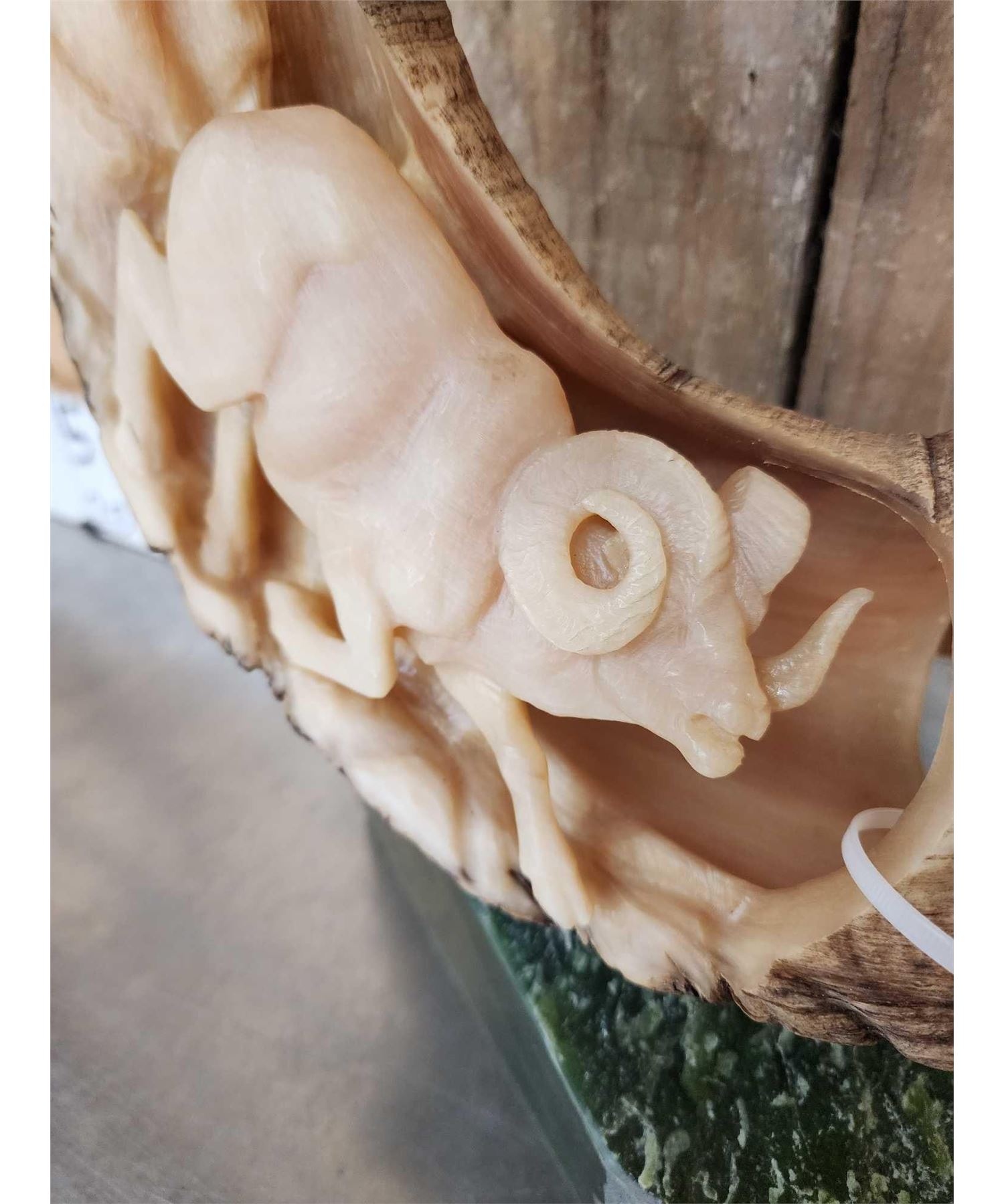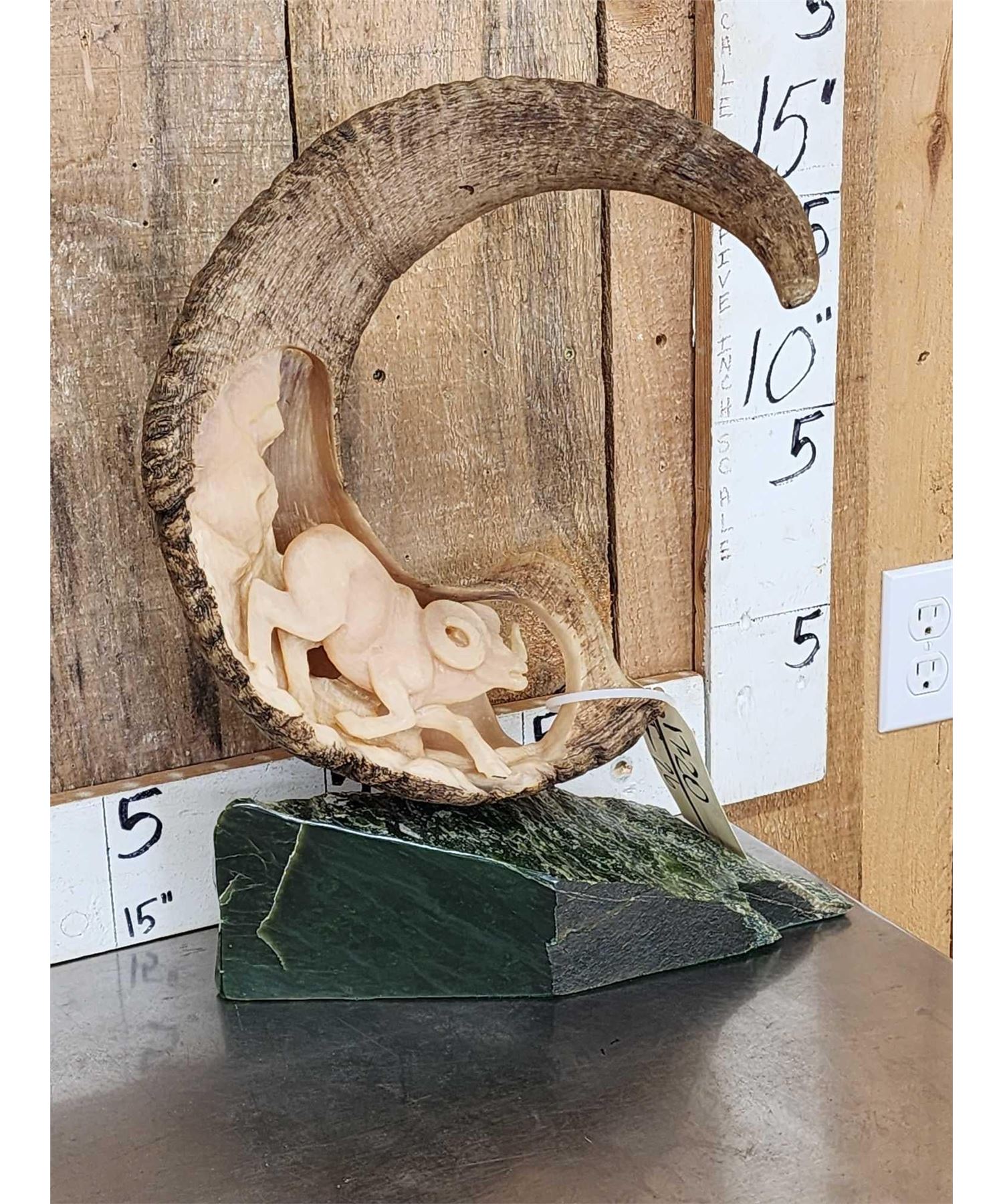 Lot 26 Hand Carved Stone Sheep Horn Taxidermy Artwork