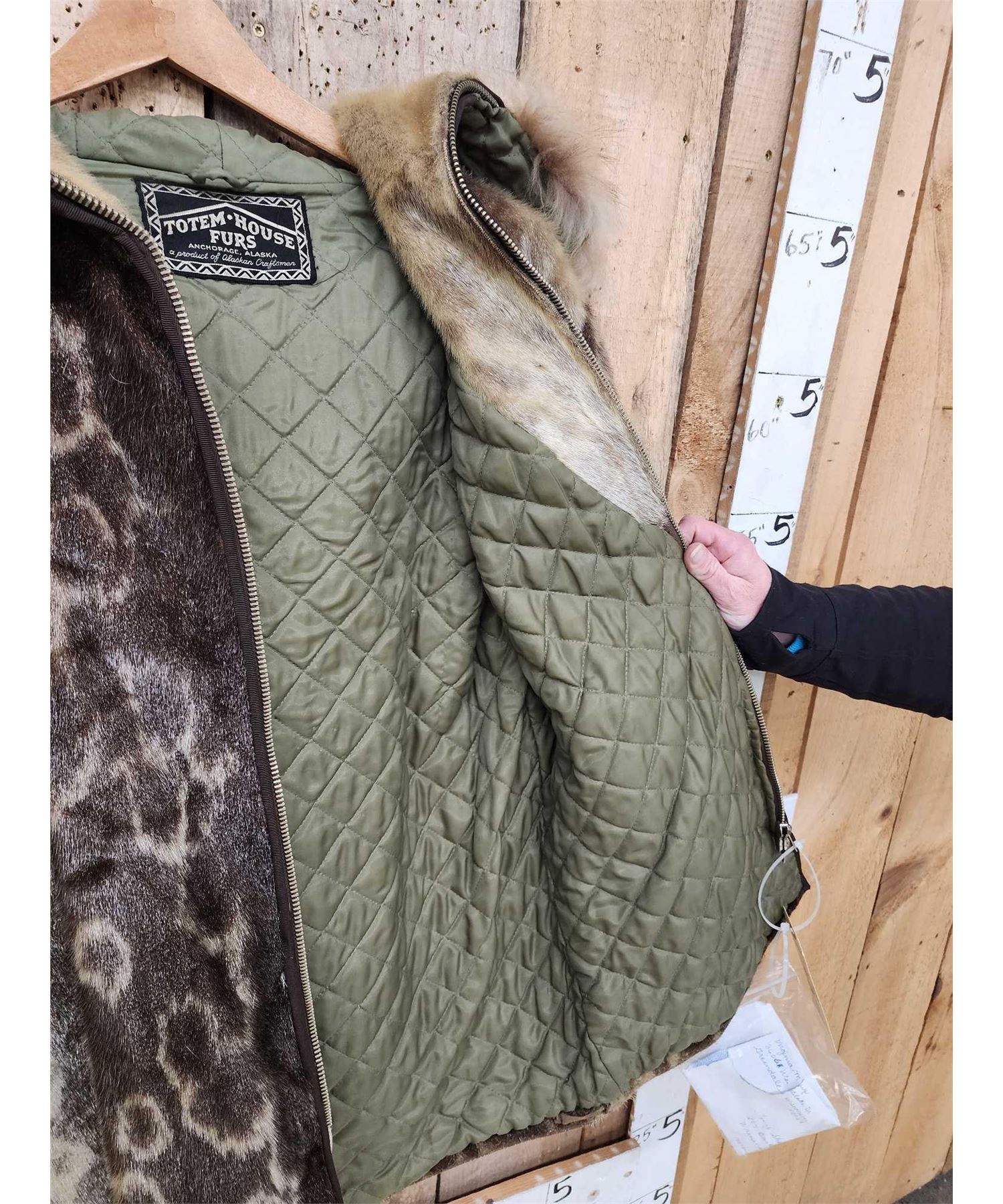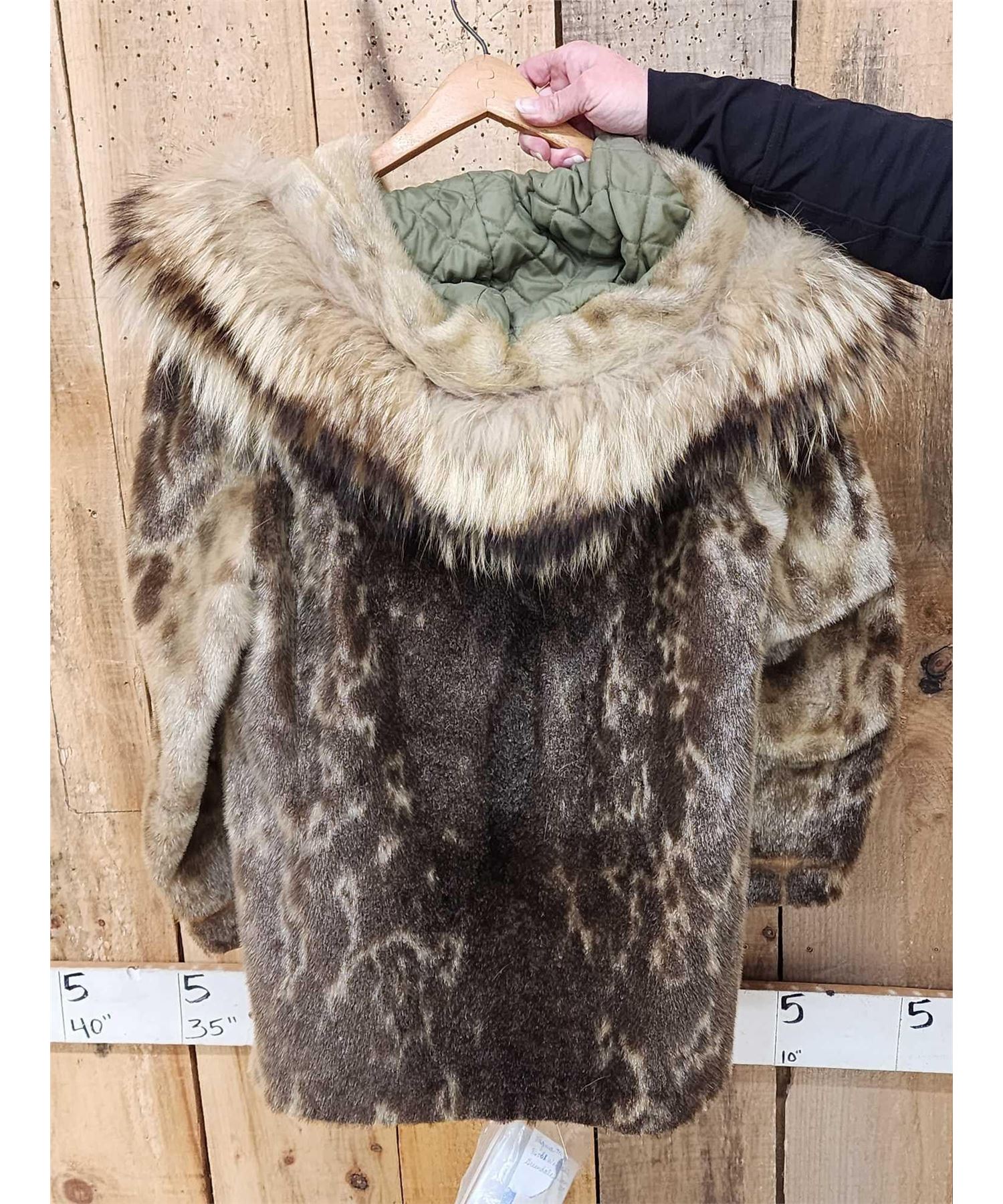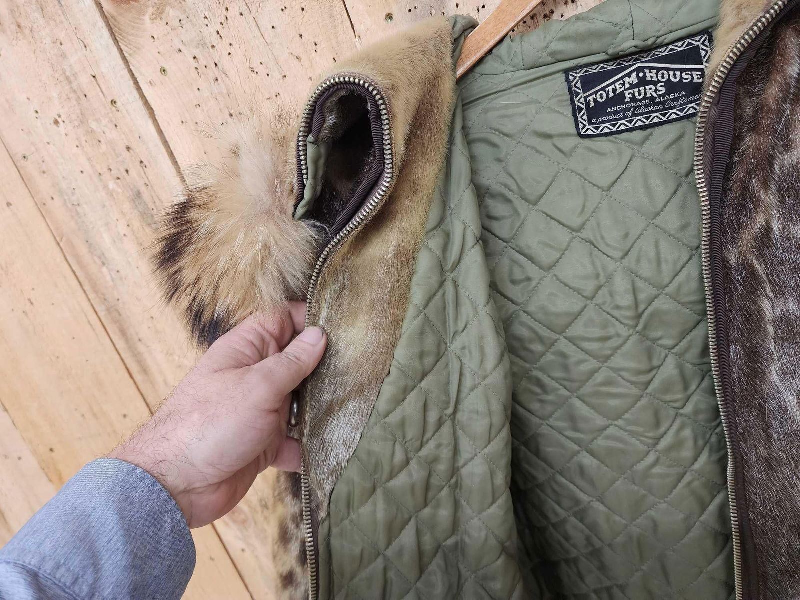 13.69 Purchased in Alaska in 1967 this Coat is in excellent condition for being 59 years old!Purchased in Ketchikan Alaska this was a product of Totem House Furs AnchorageFeatures seal skin outside with lighter skin on the inside a hood trimmed in wolf furAbout size small with pockets zipper lining all in great condition