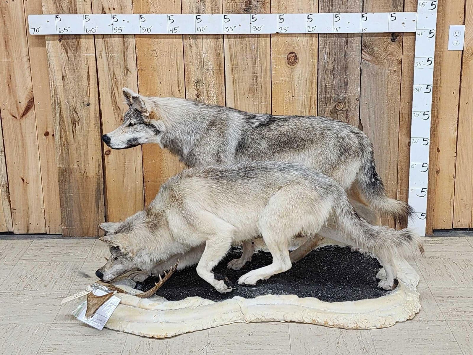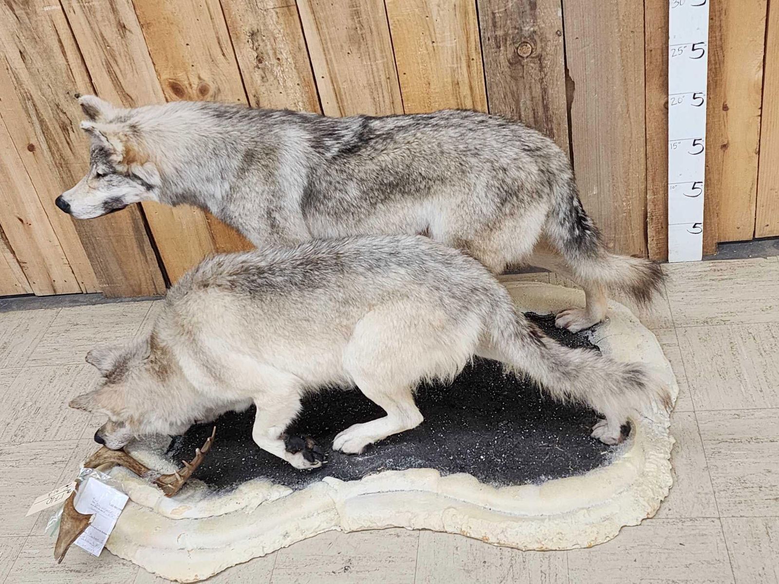 Lot 31A 2 Alaskan Wolves On The Hunt Full Body Taxidermy Mount
