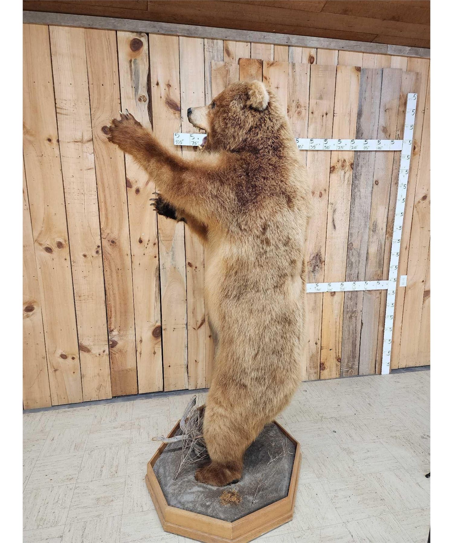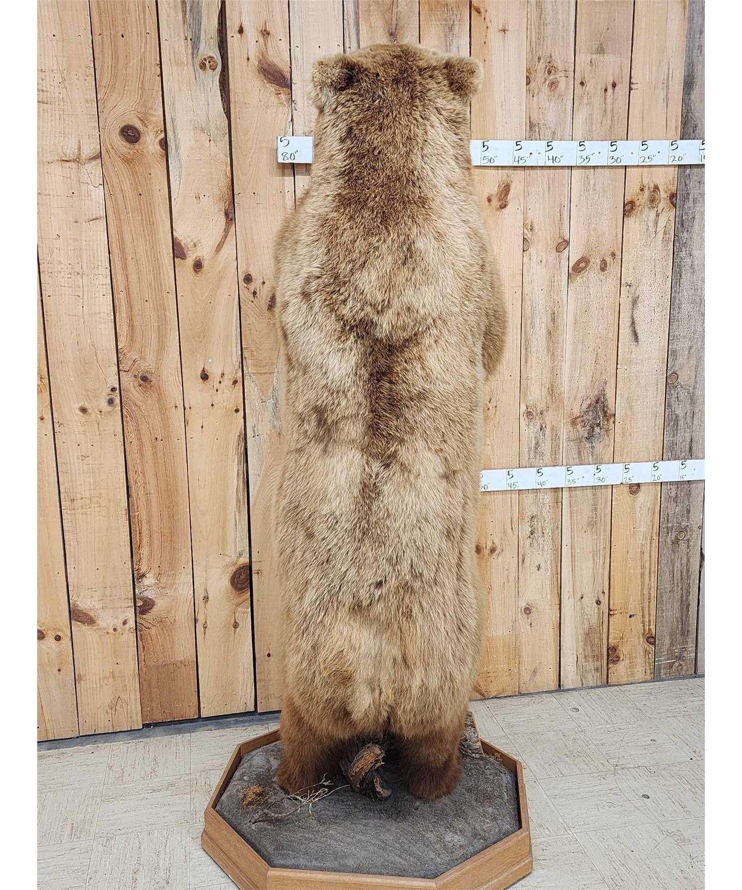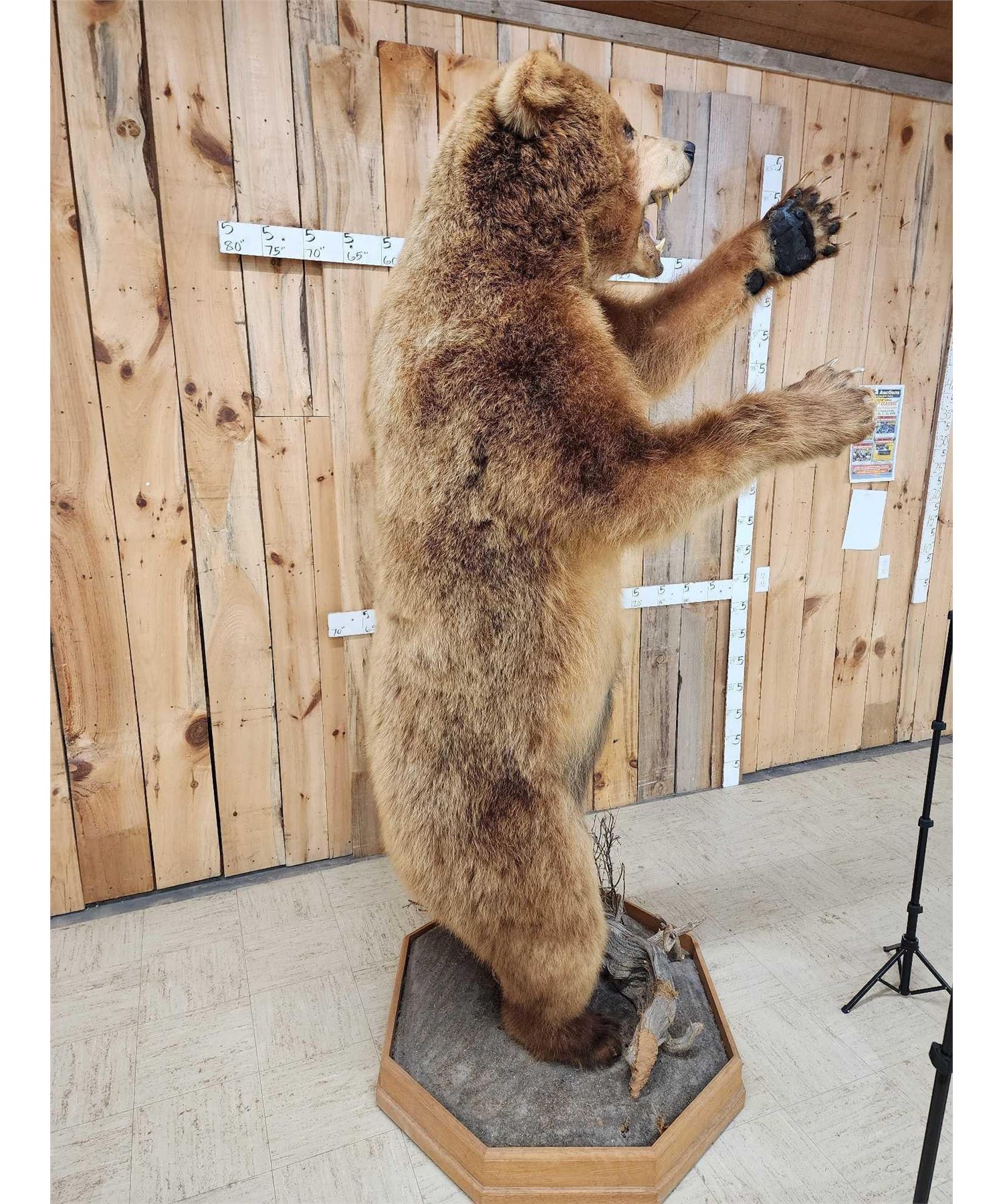 13.14 Impressive Bear big claws thick prime fur with awesome color variations the bear measures about 92" from the tip of his nose to the base of his tail is about 88" tall without the base overall dimensions about 96" tall x 41" wide x 48" deep on roll around habitat baseNOTE : We will be selling the skull from this bear in the very next lot