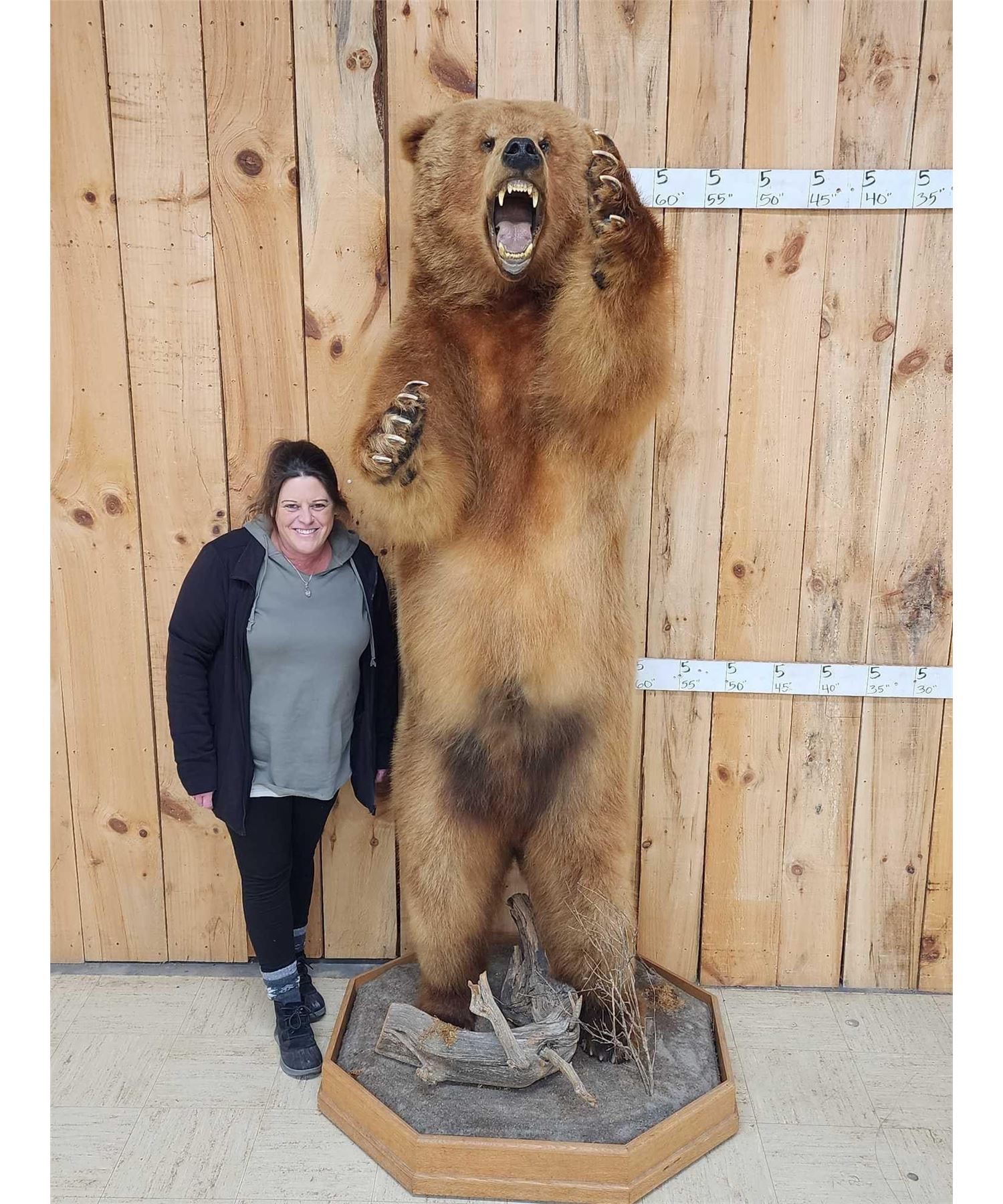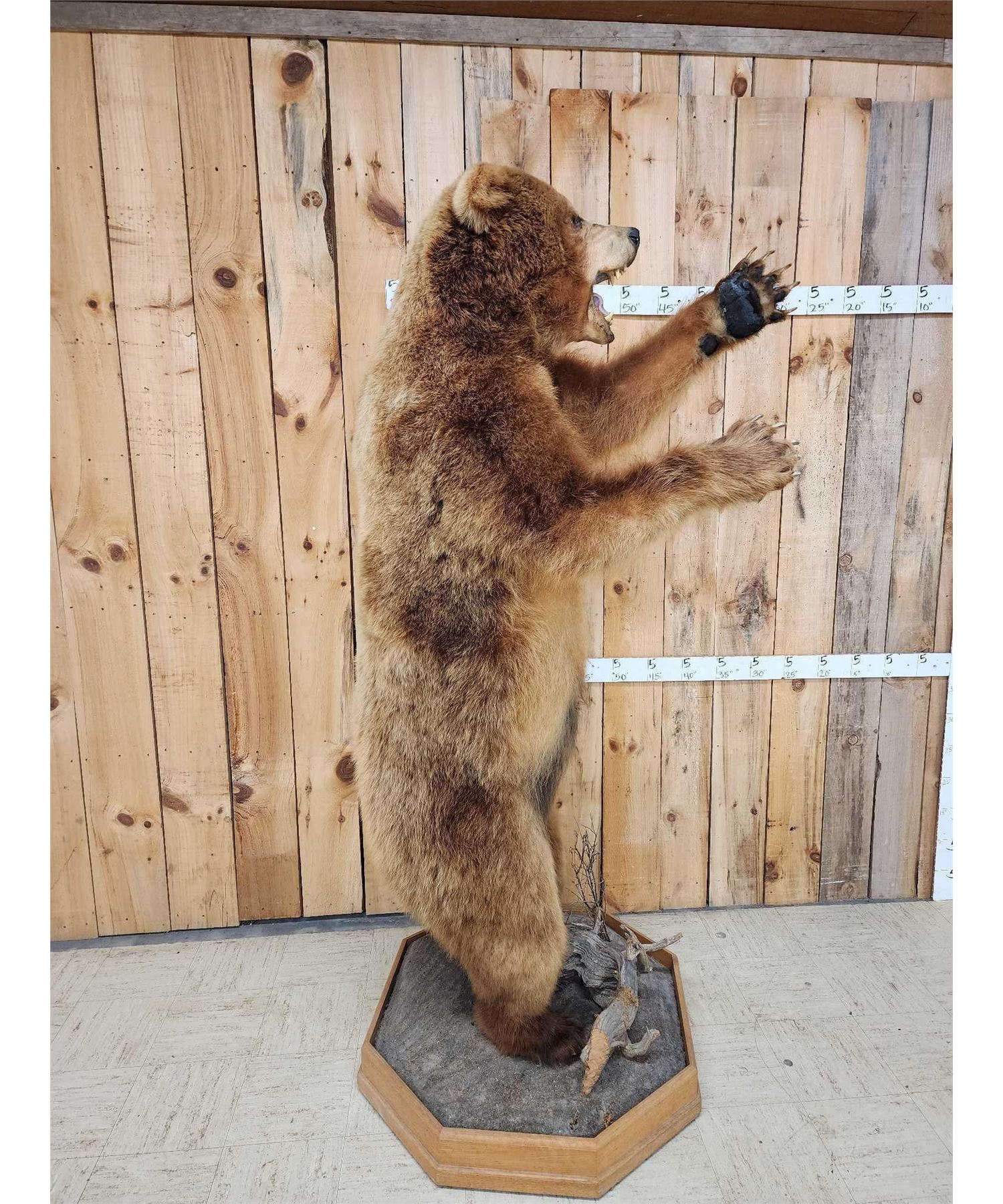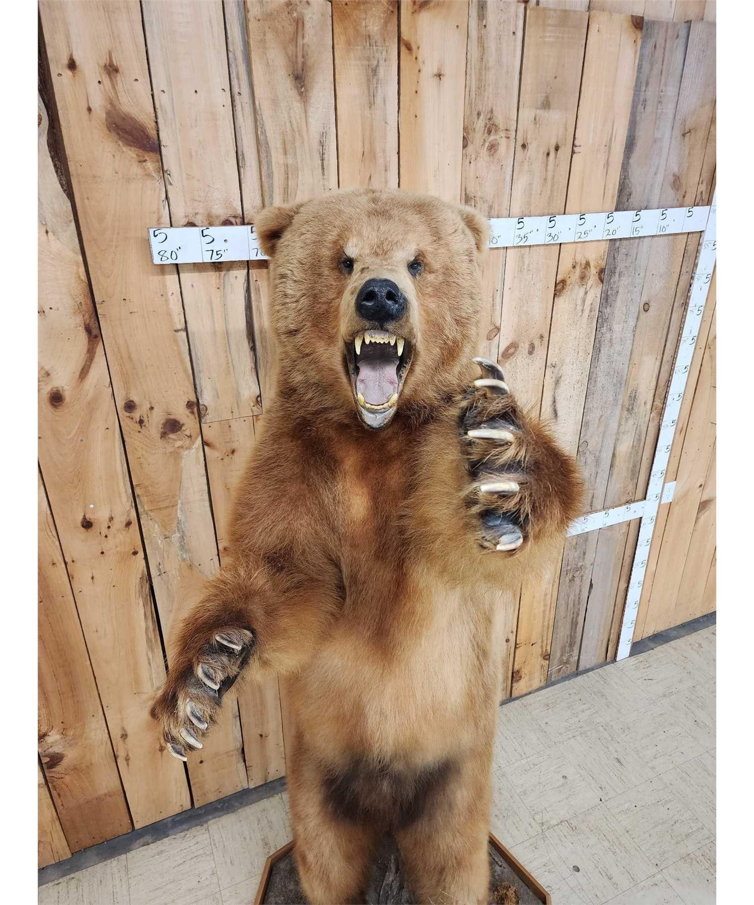 13.14 Impressive Bear big claws thick prime fur with awesome color variations the bear measures about 92" from the tip of his nose to the base of his tail is about 88" tall without the base overall dimensions about 96" tall x 41" wide x 48" deep on roll around habitat baseNOTE : We will be selling the skull from this bear in the very next lot