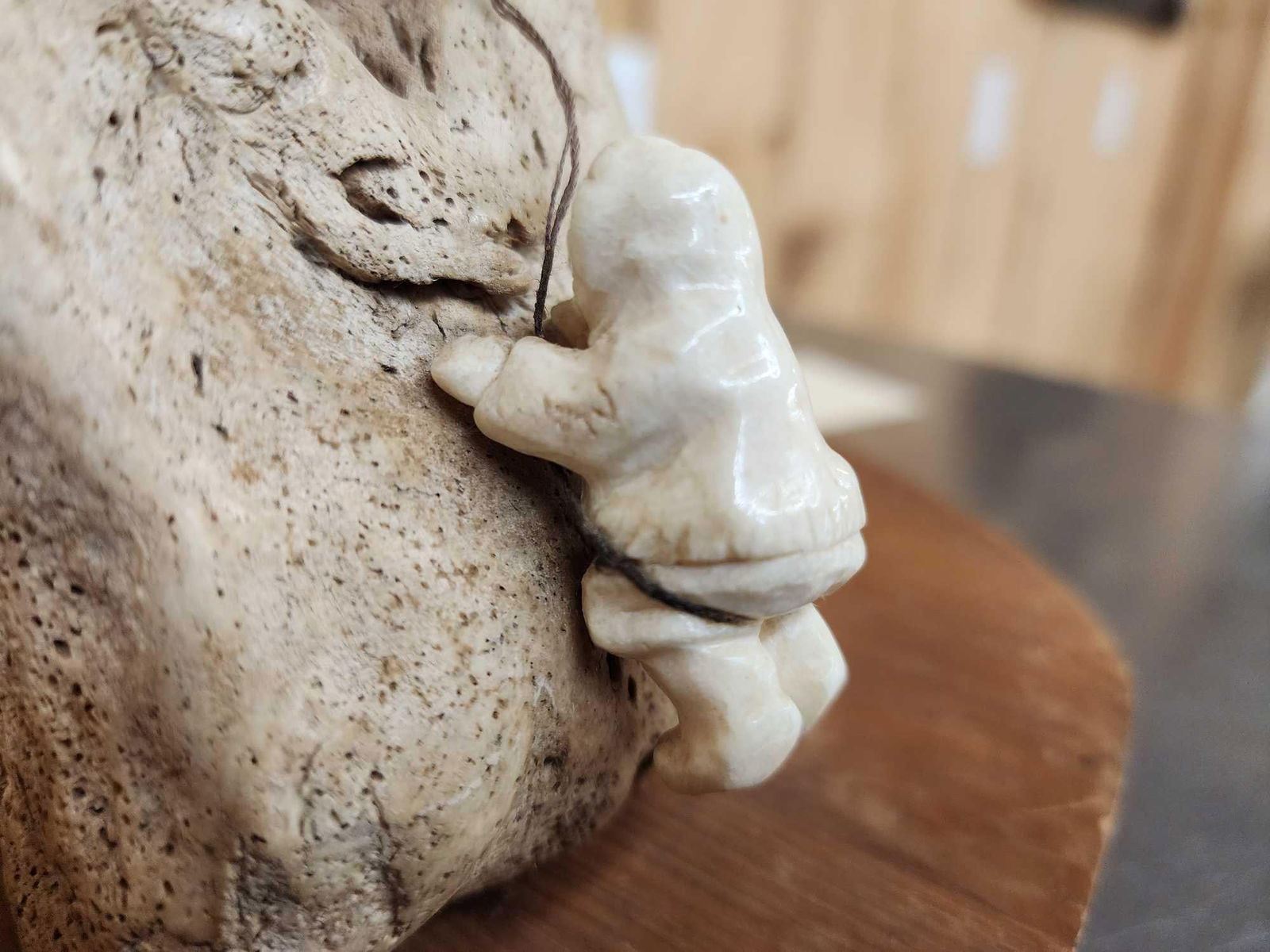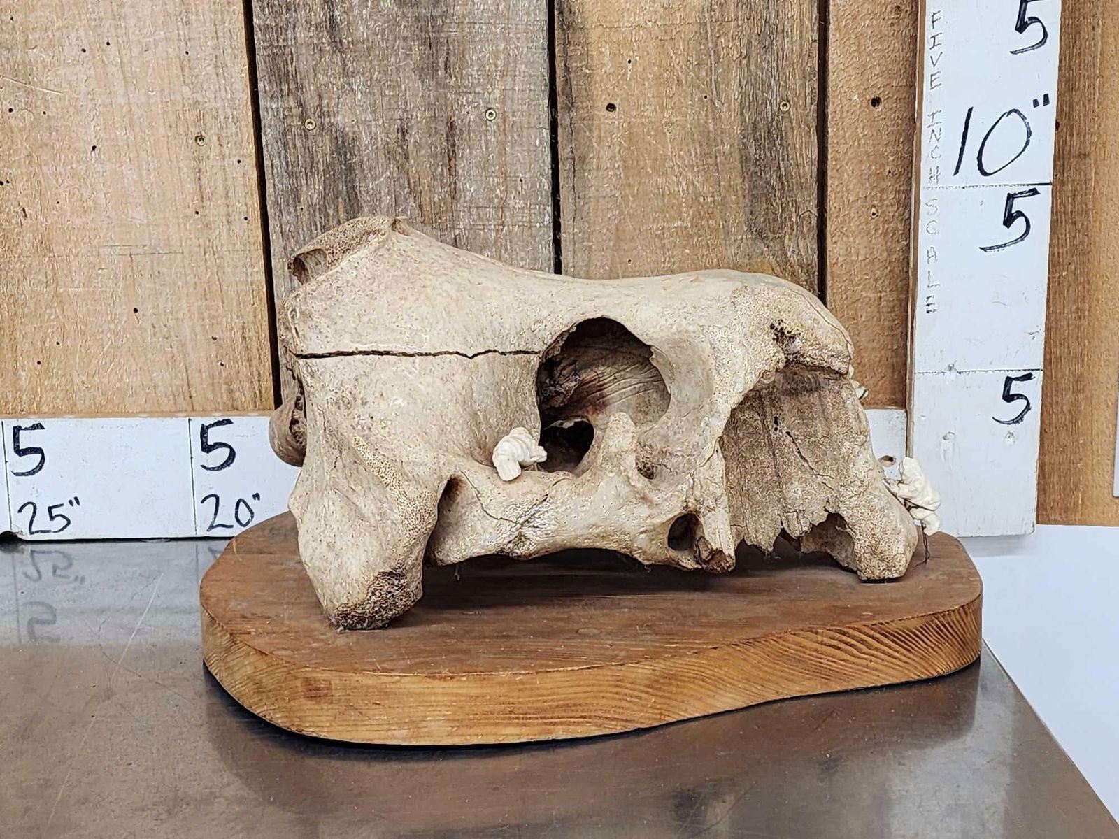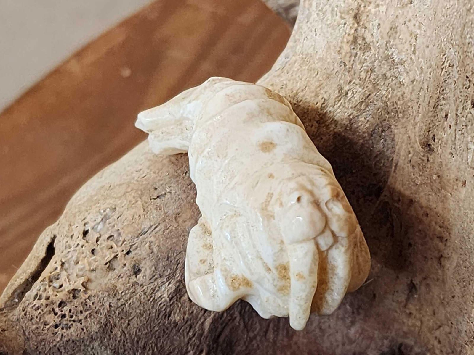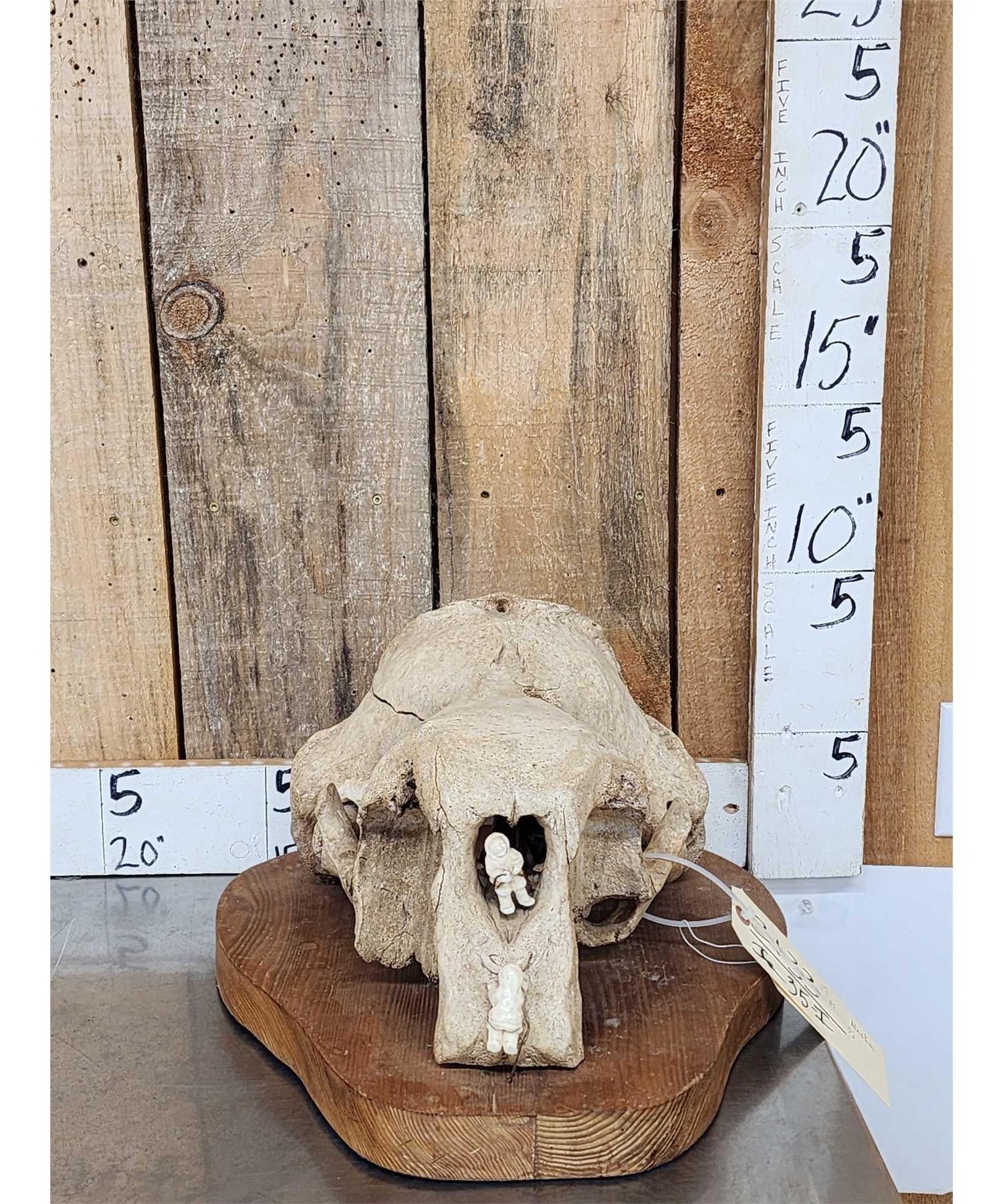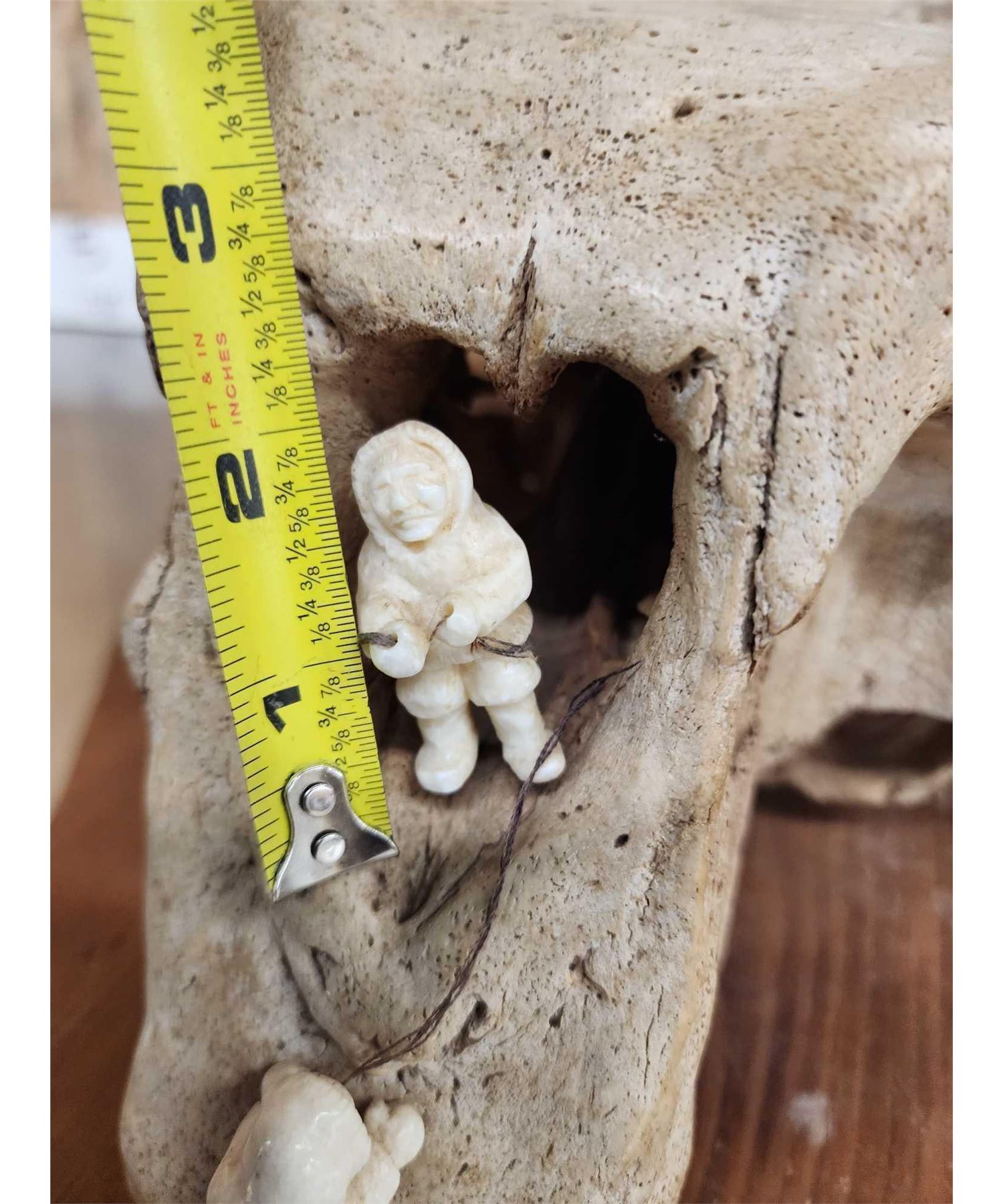 31.33 Featuring fossilized Walrus Skull with 2 Eskimo hunters Walrus Carved from Walrus ivory Depicting the hunt !Purchased in Alaska Circa 1990 awesome detail great look total weight 17 Lbs