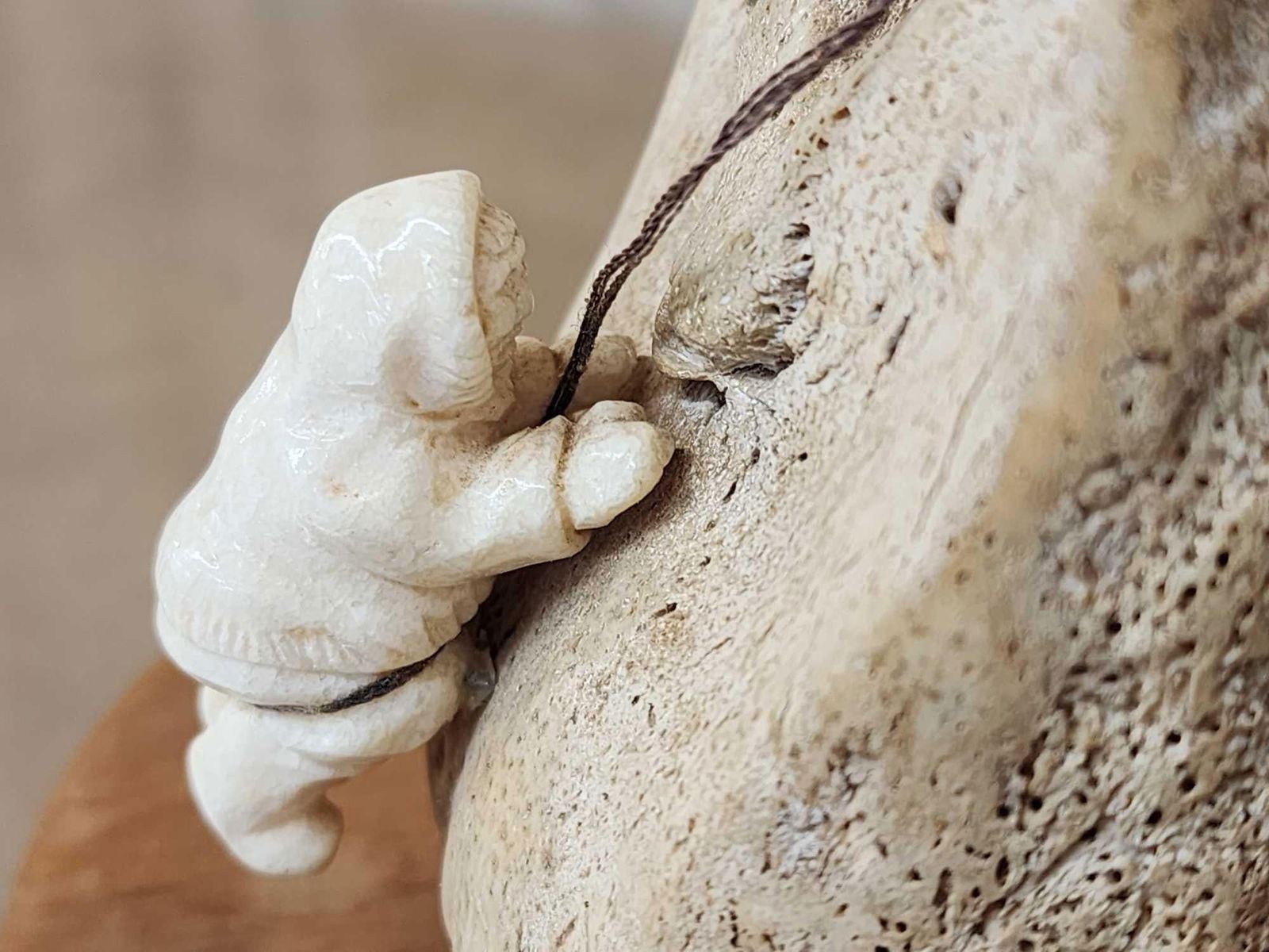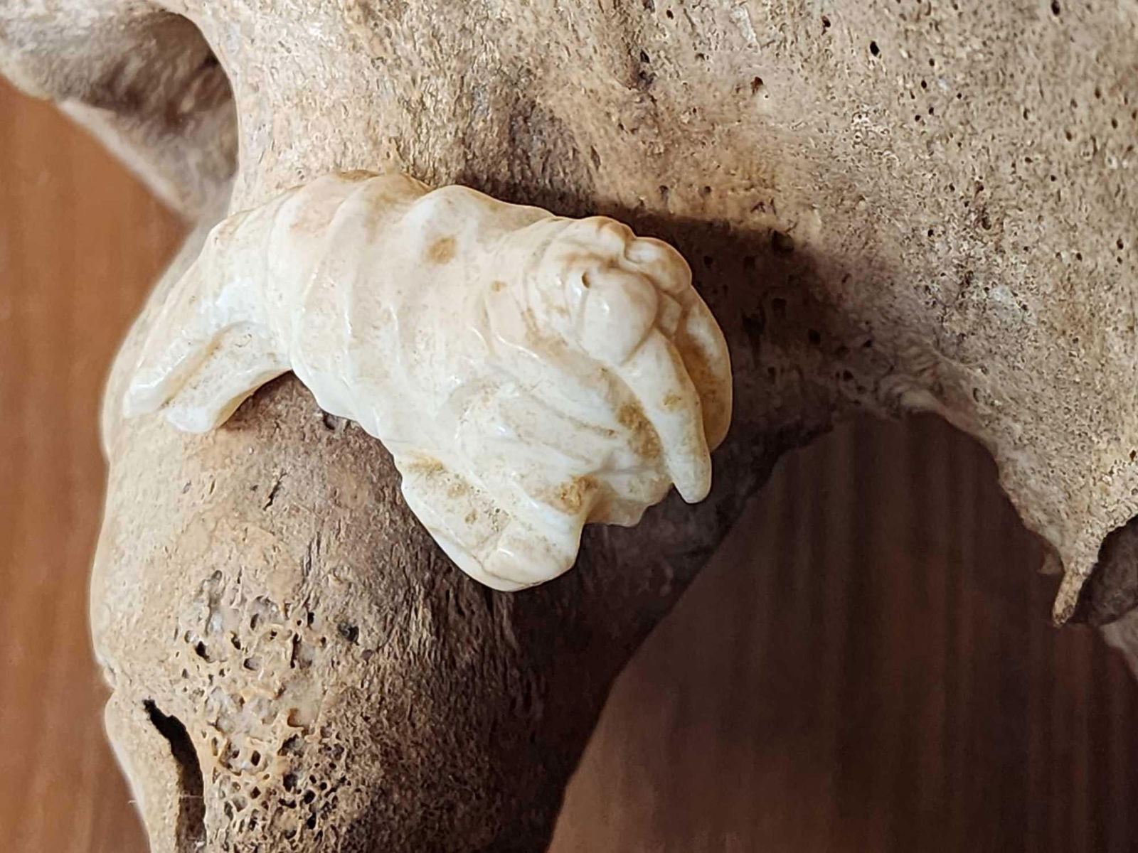Lot 35I Spectacular Native Alaskan Inuit Art Work Bull Walrus Skull & Ivory Carving